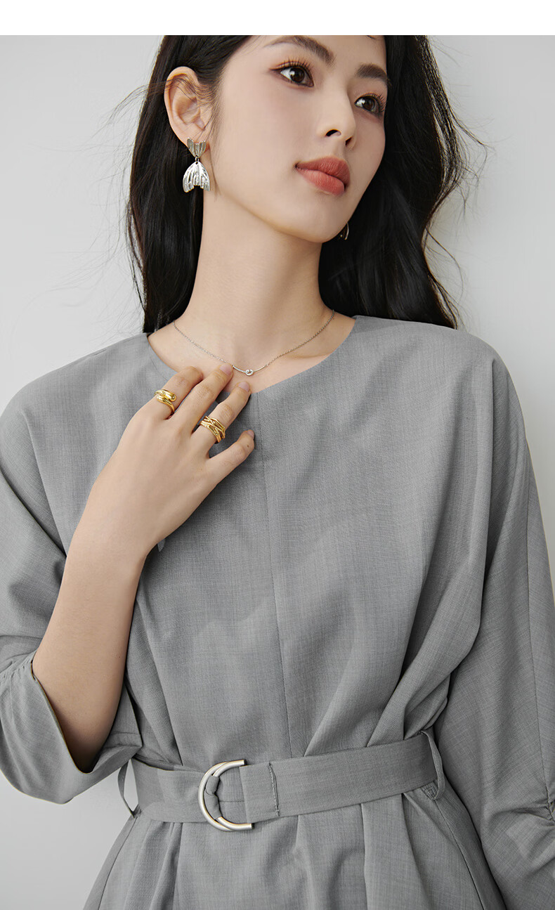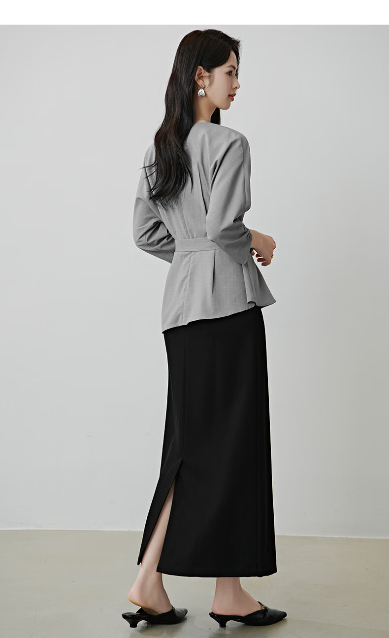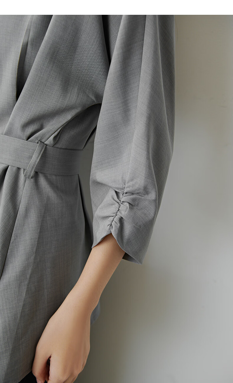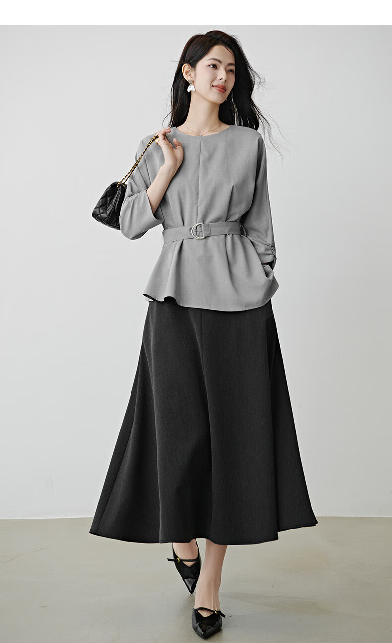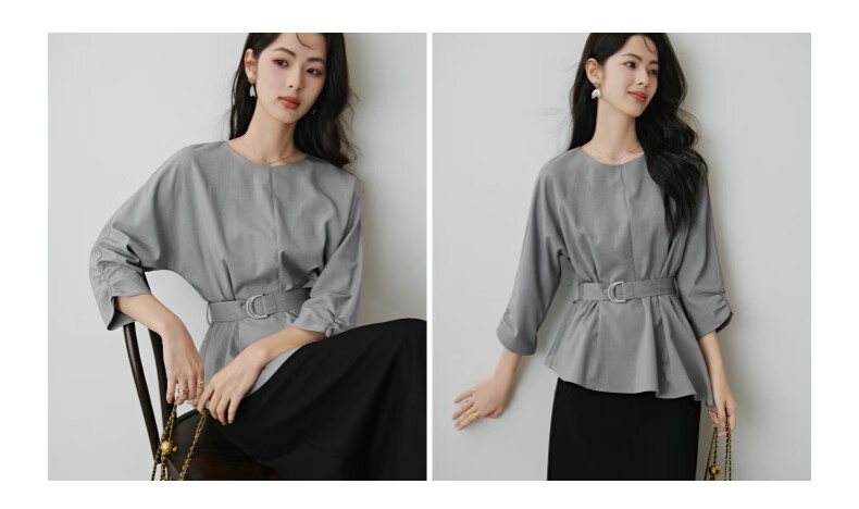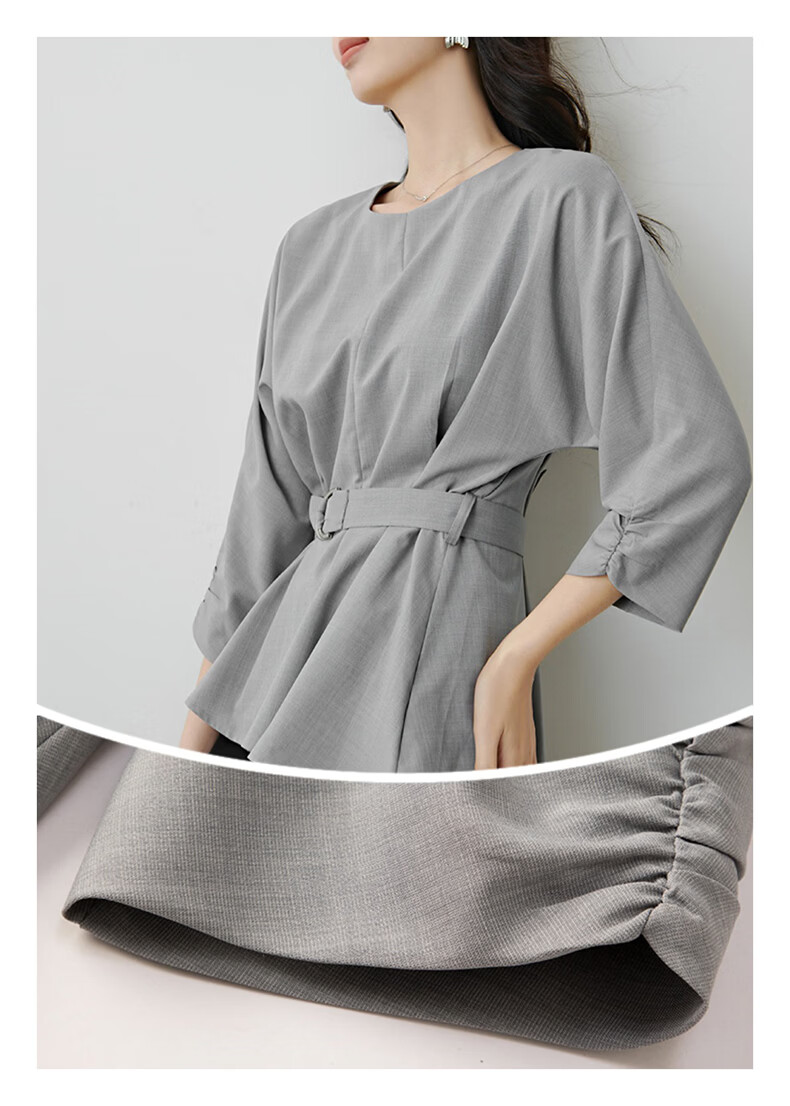晚白【新品】2026年春款格雷系气质通勤设计感上衣系带收腰小廓形衬衫 浅灰色 M