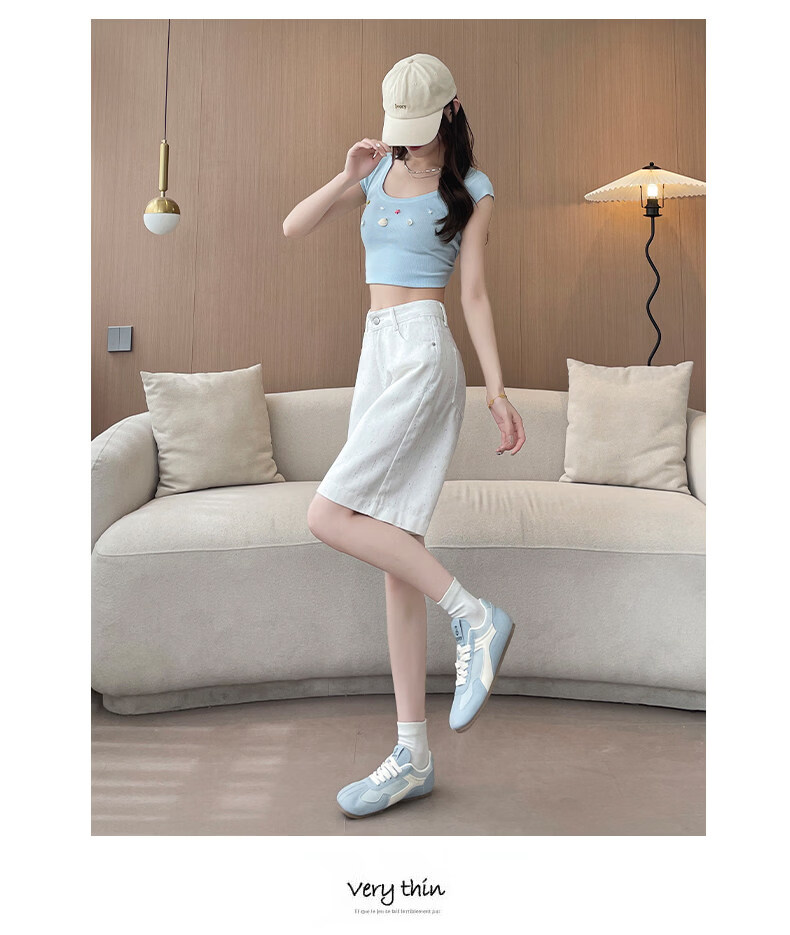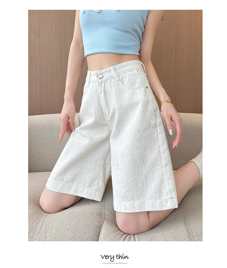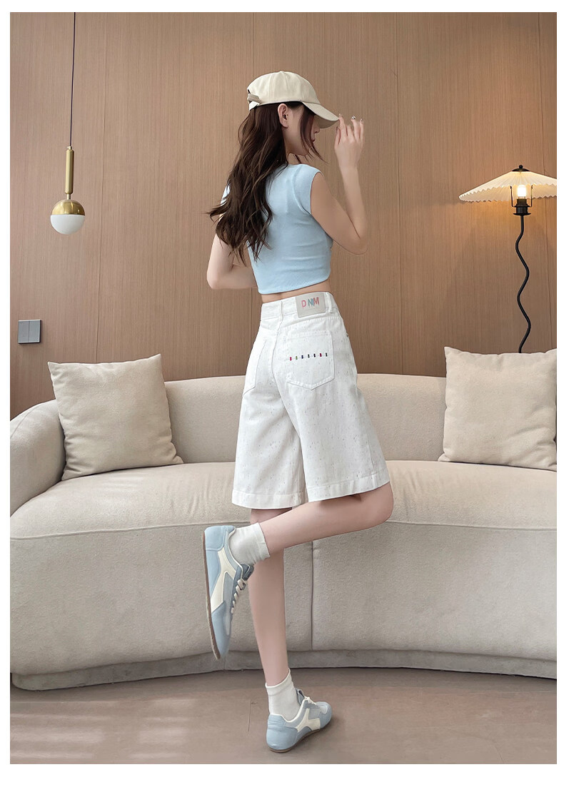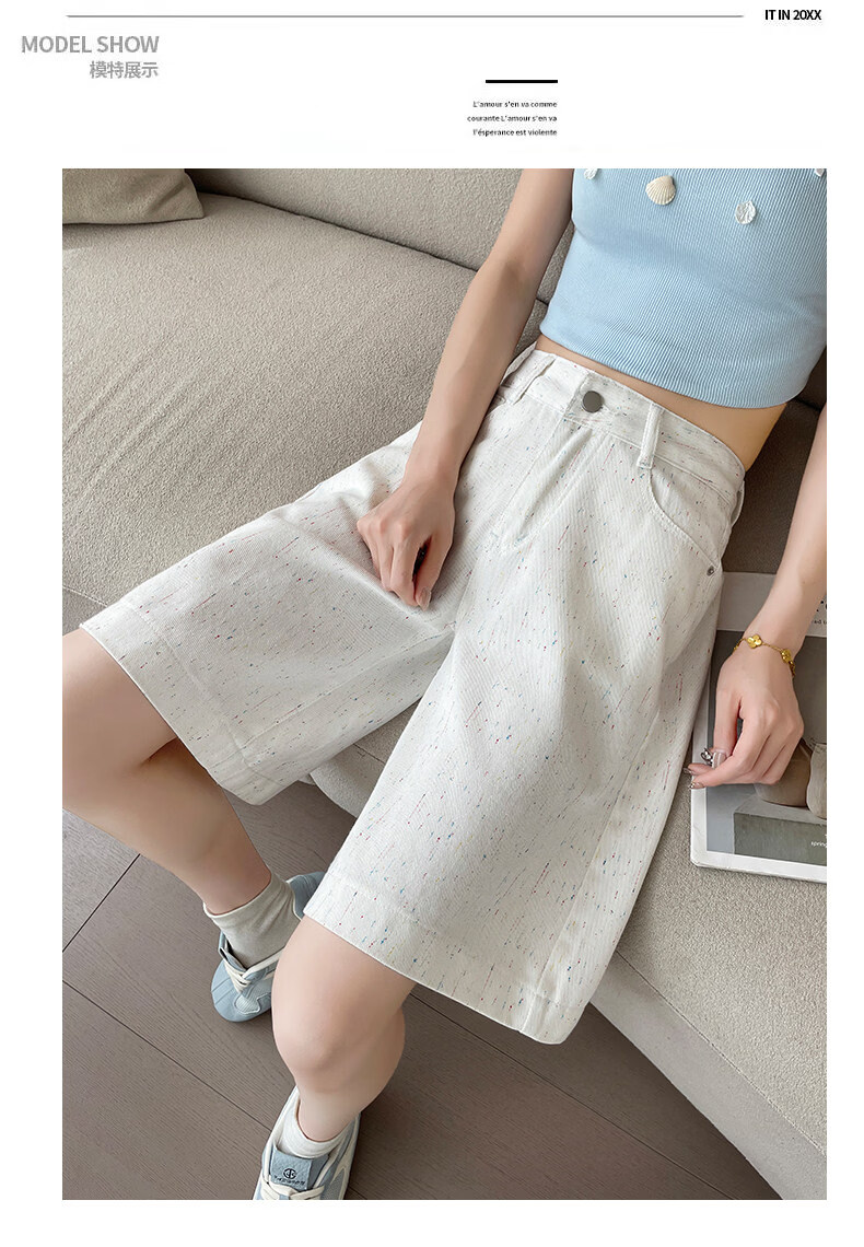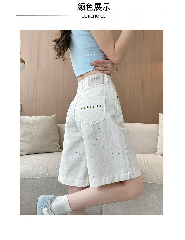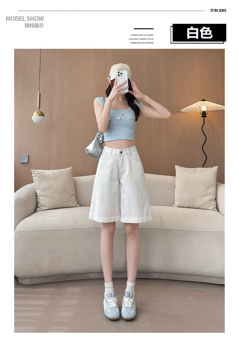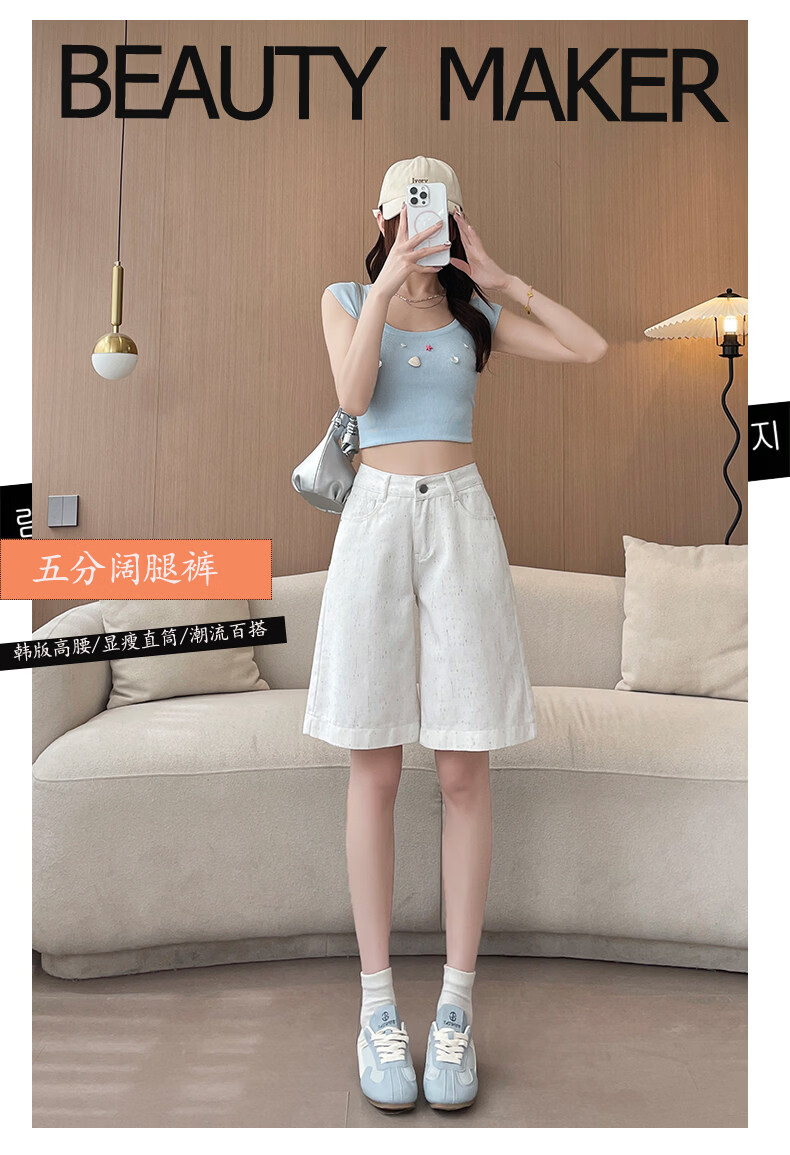 MODX白色牛仔短裤女2026年夏季薄款高腰显瘦字直筒裤五分裤中裤 白色 XS