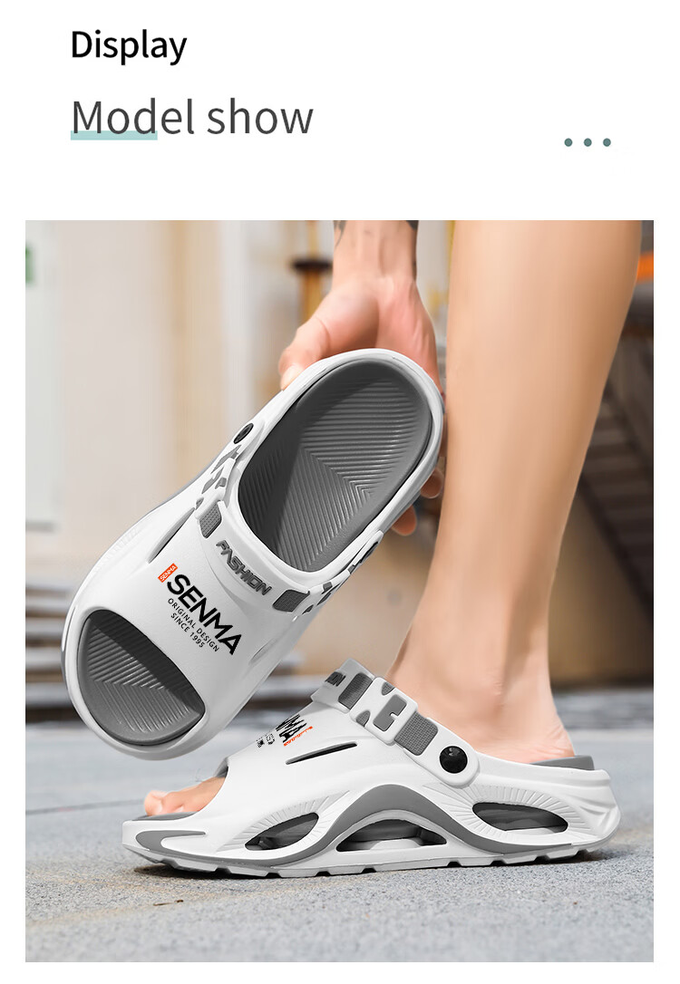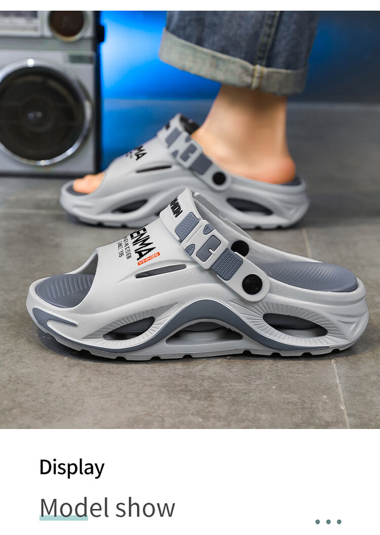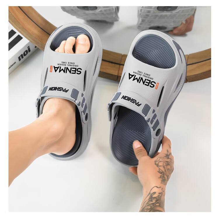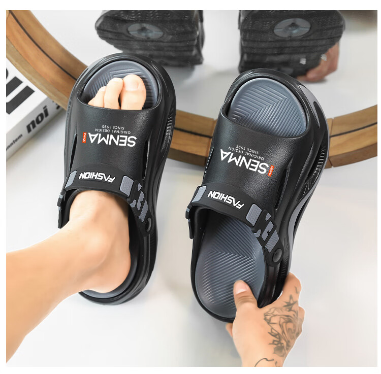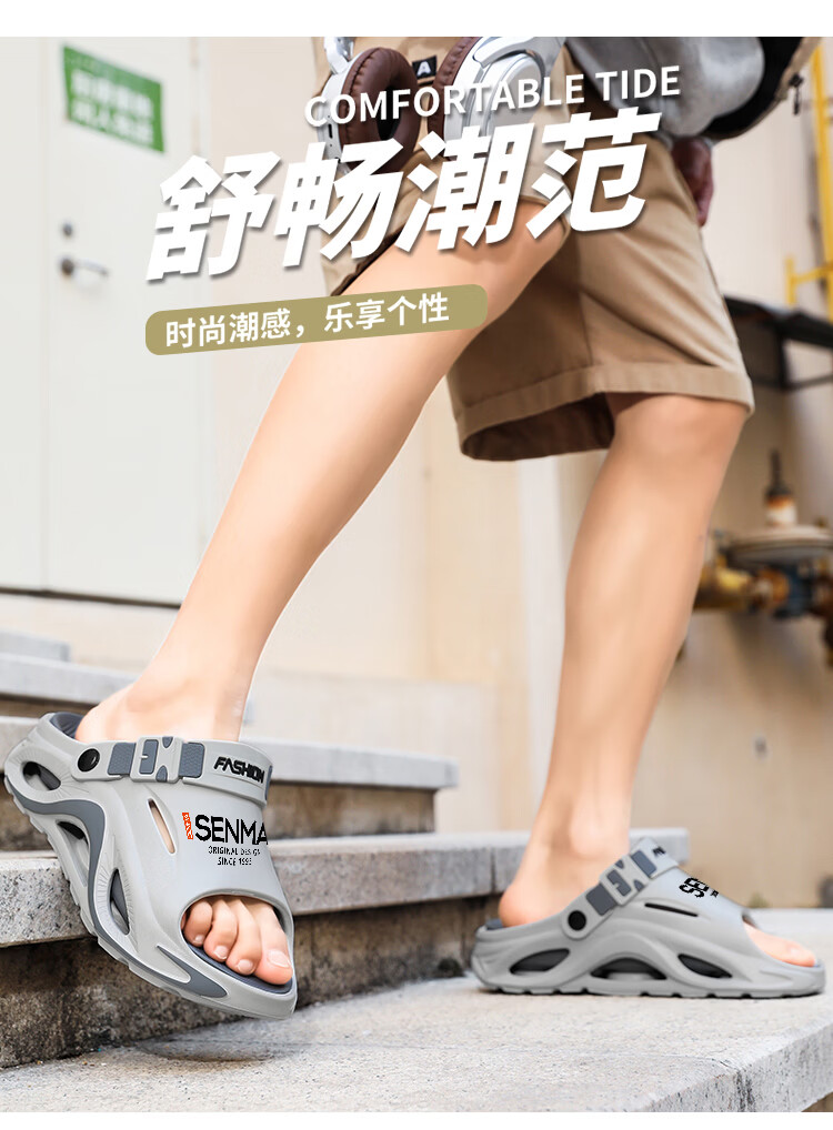 森馬拖鞋男2026新款夏季外穿防滑耐磨踩屎感两用开车运动厚底沙滩凉鞋 黑灰【基础款】 42-43 【现货秒发】