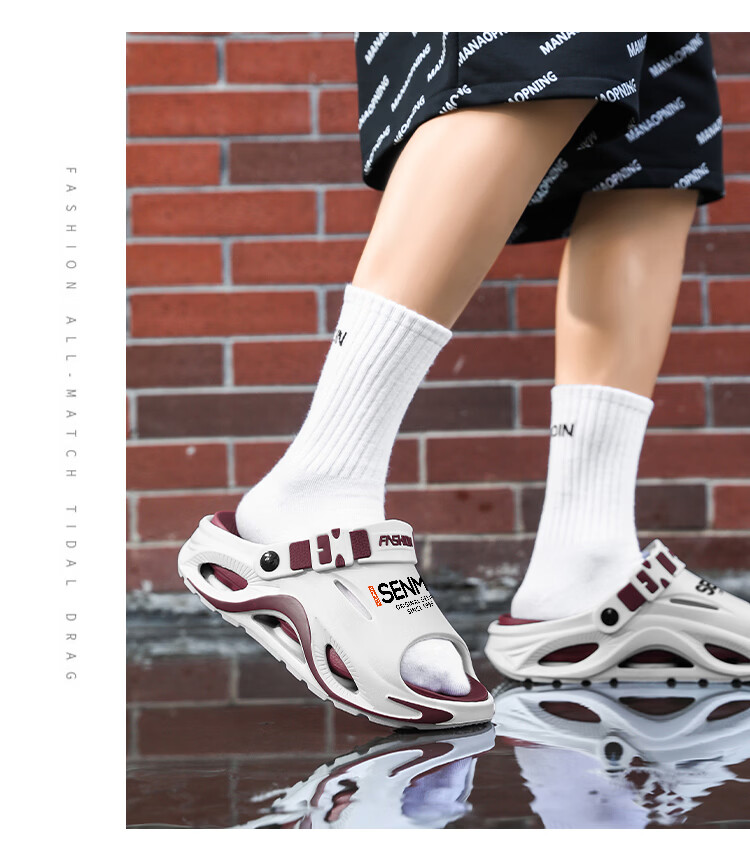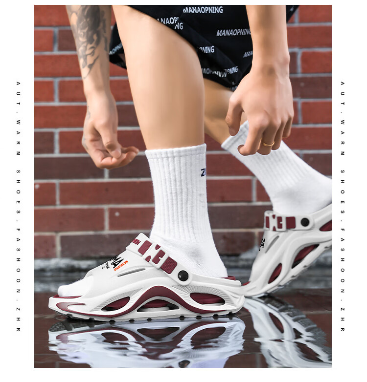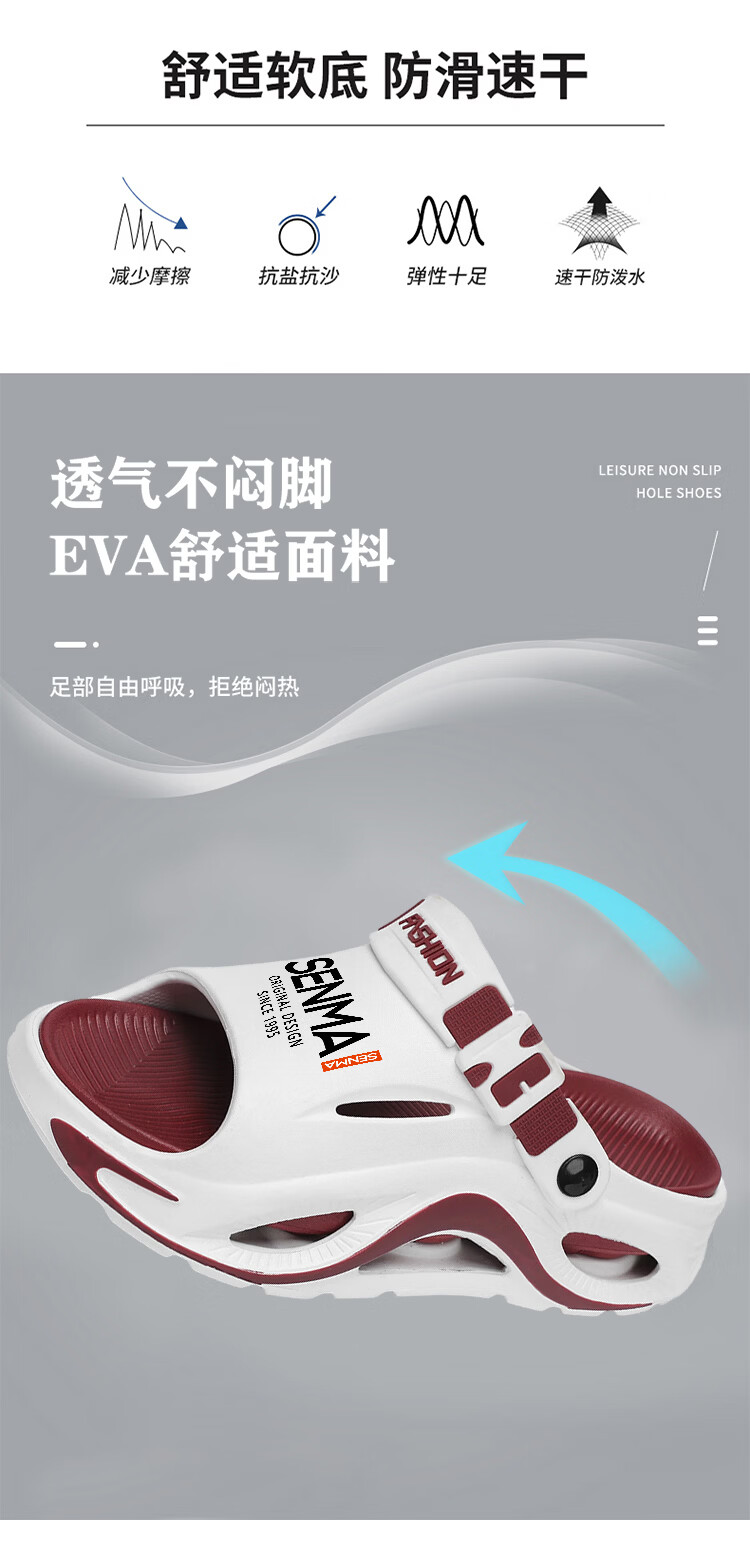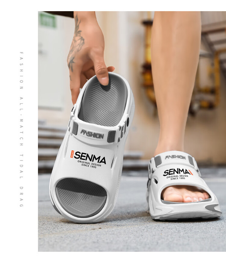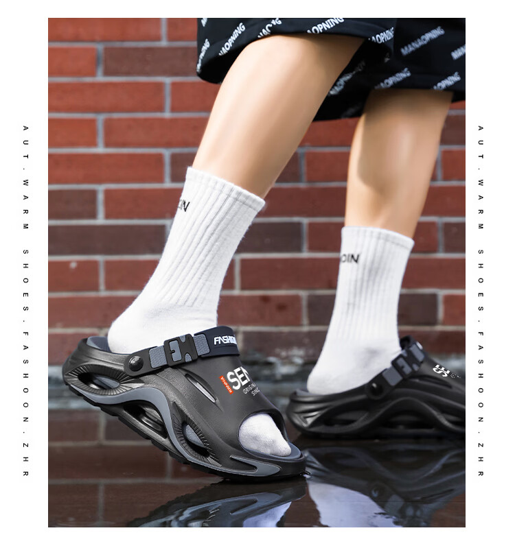 森馬拖鞋男2026新款夏季外穿防滑耐磨踩屎感两用开车运动厚底沙滩凉鞋 黑灰【基础款】 42-43 【现货秒发】