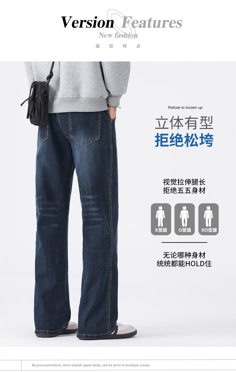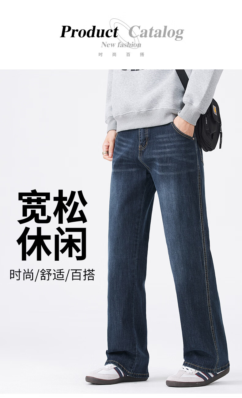 真维斯牛仔裤男春秋季宽松百搭微喇裤男美式潮牌棉弹舒适休闲长裤男 深蓝 28