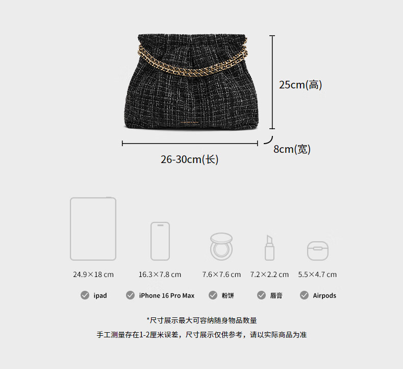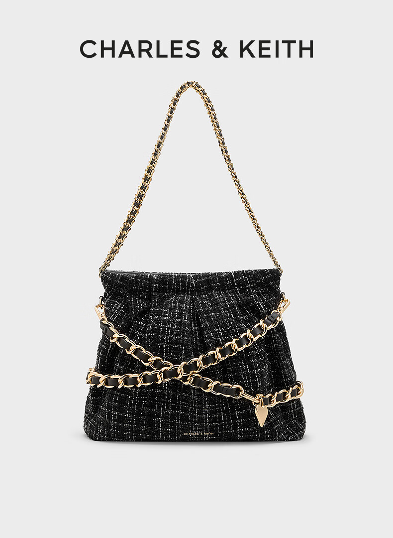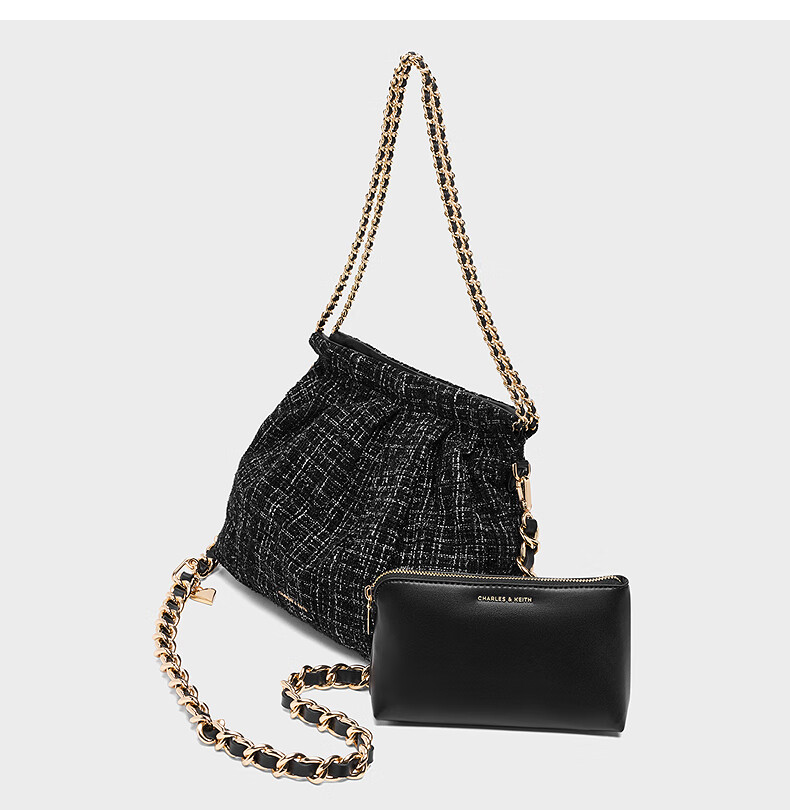 CHARLES&KEITH子母链条大容量流浪包托特包单肩斜挎包女包礼物CK2-40671449 【L号】Noir黑银 L