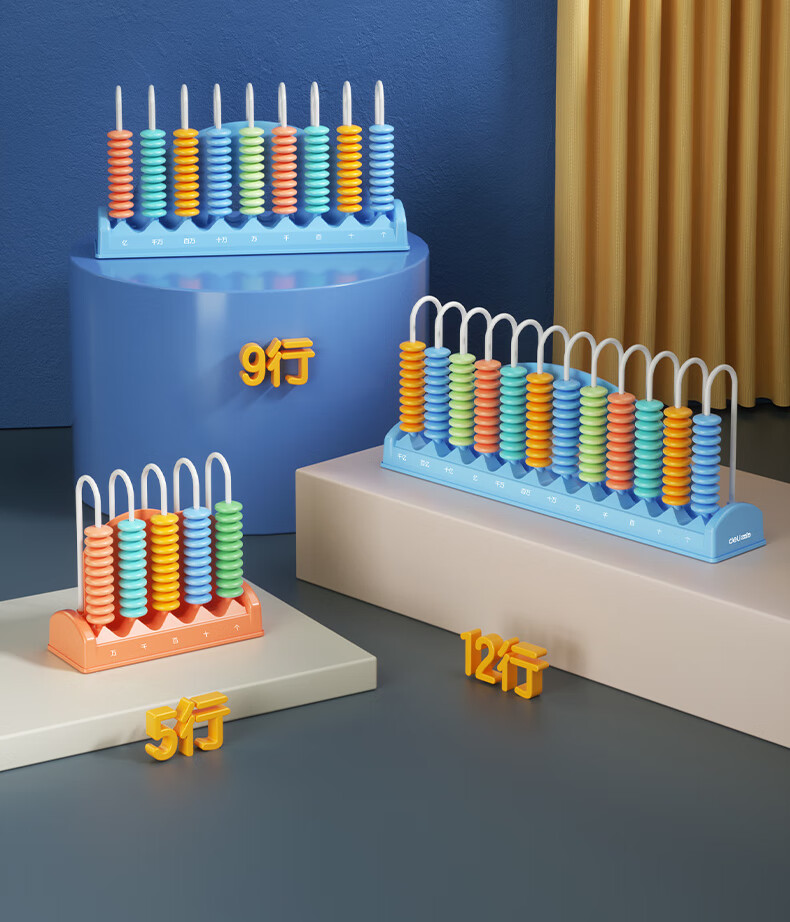 得力(deli)5行计数器 学生学具多功能计算架一二年级数学加减法益智启蒙算盘学习学生开学文具生日礼物随机发