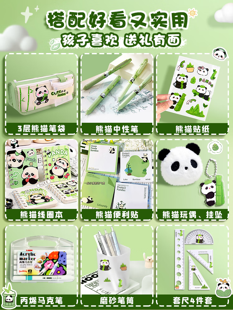 舒星熊猫文具套装儿童生日伴手礼小学生幼儿园小朋友生日礼物一年级开学大礼包男孩女孩六一儿童节