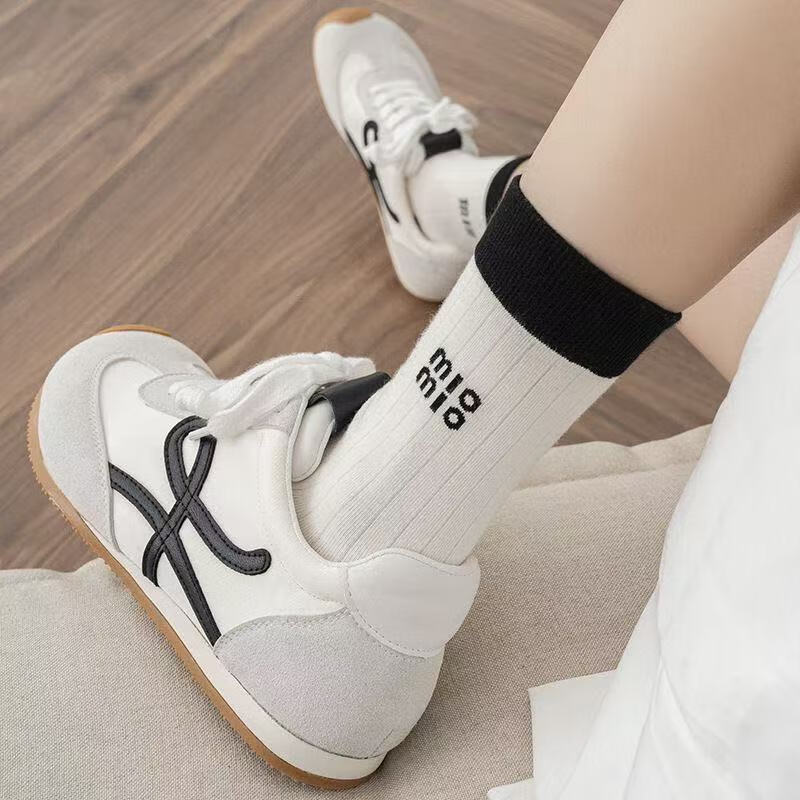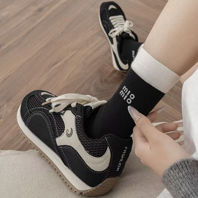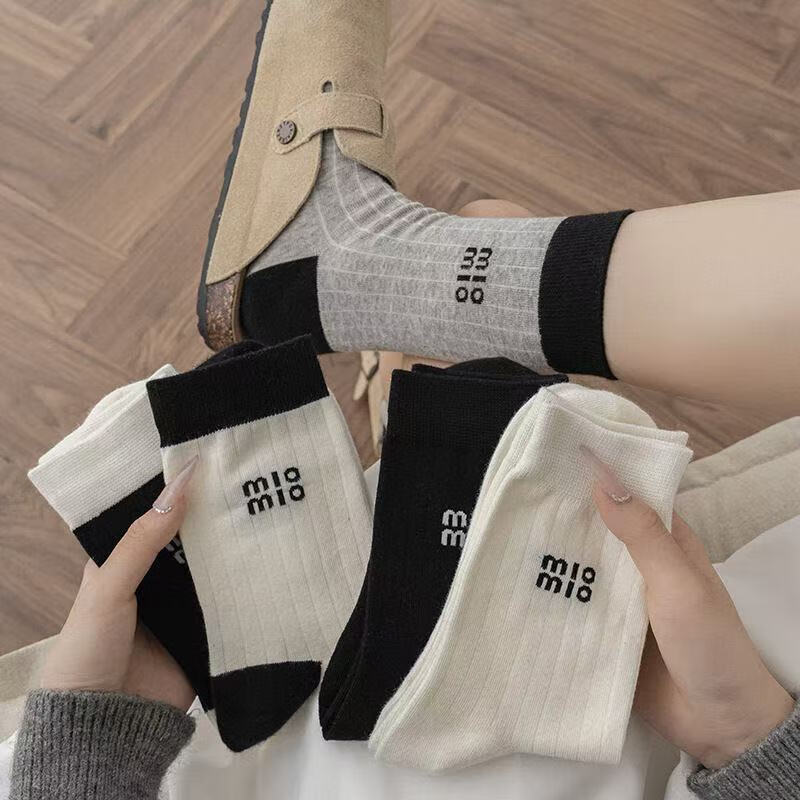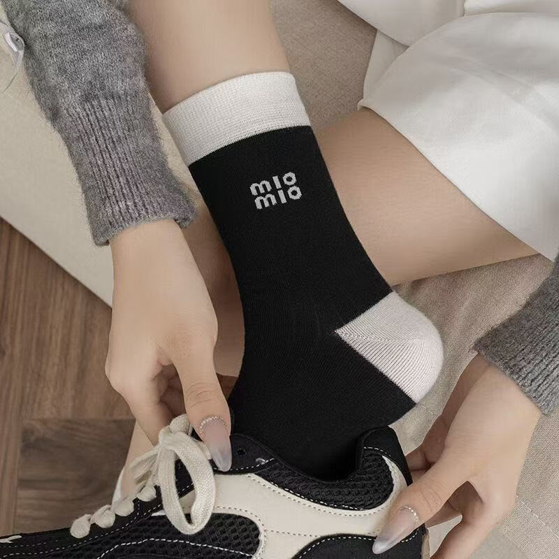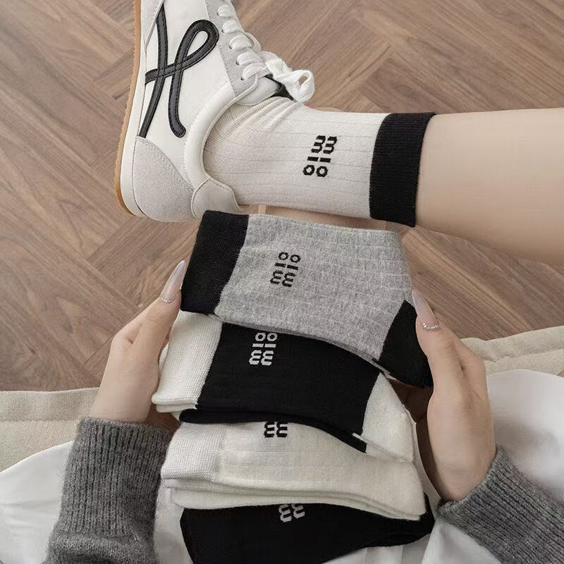 2026秋冬新款字母中筒袜女纯色拼色韩版百搭堆堆袜长袜外穿运动潮 5双装【颜色搭配】 均码