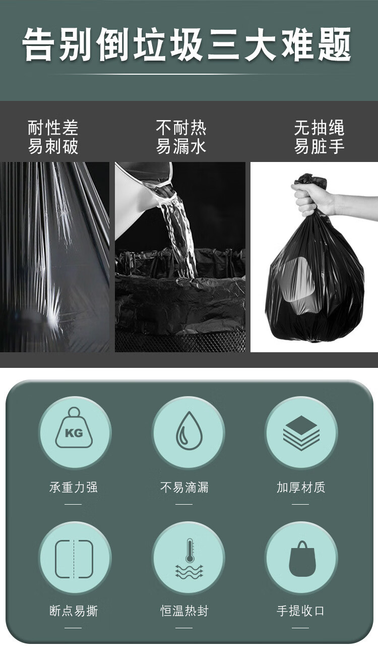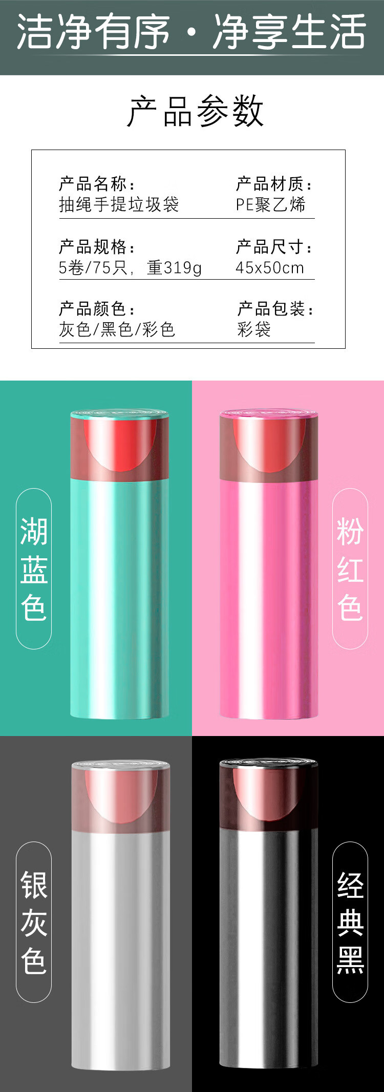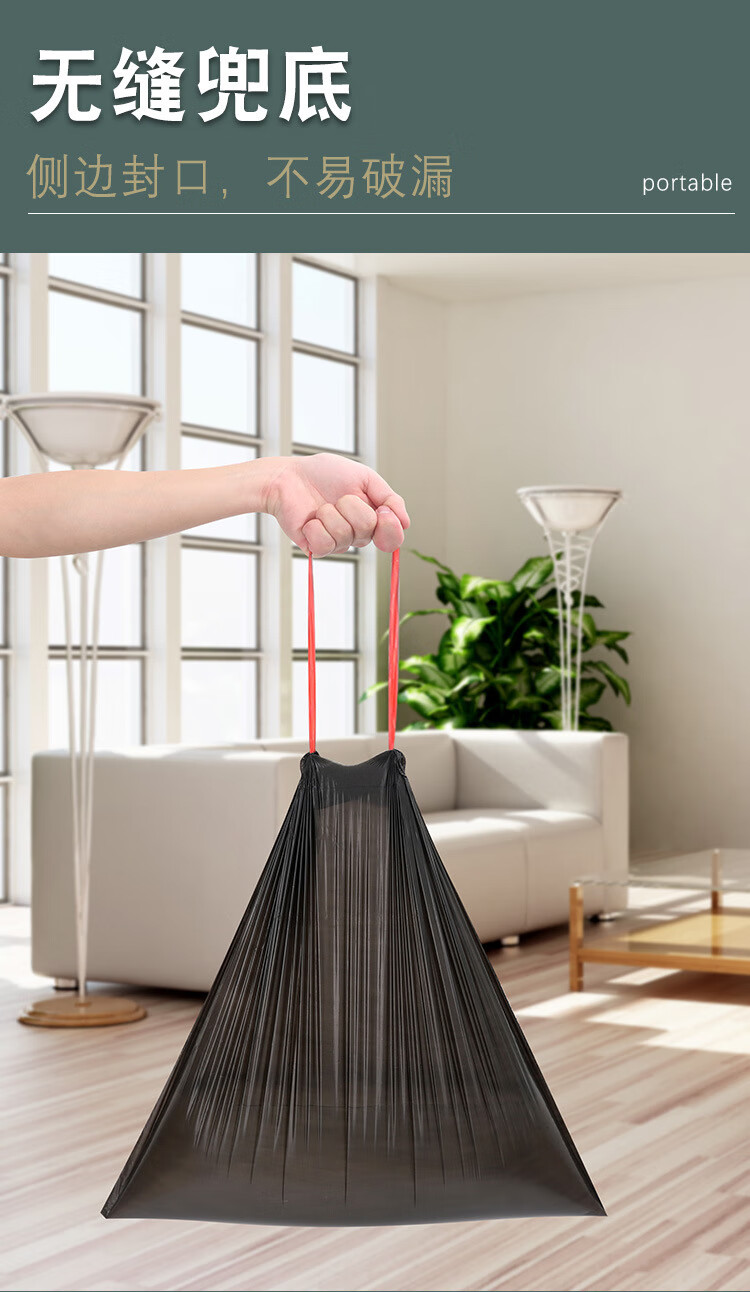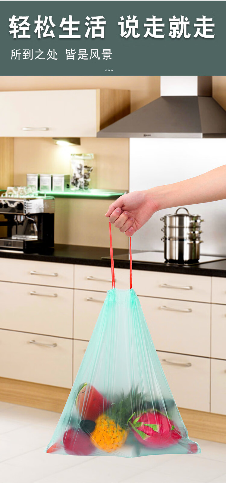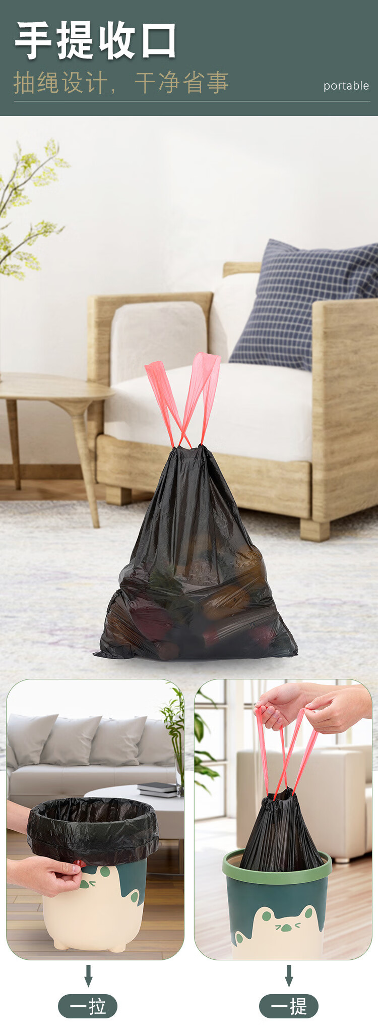 倩挥自动收口垃圾袋加厚手提式大号抽绳垃圾袋厨房抽拉袋子实惠装 2卷混色(共30只)