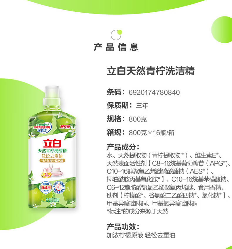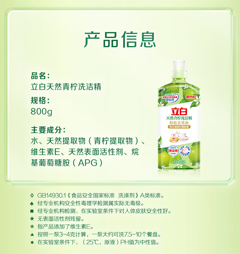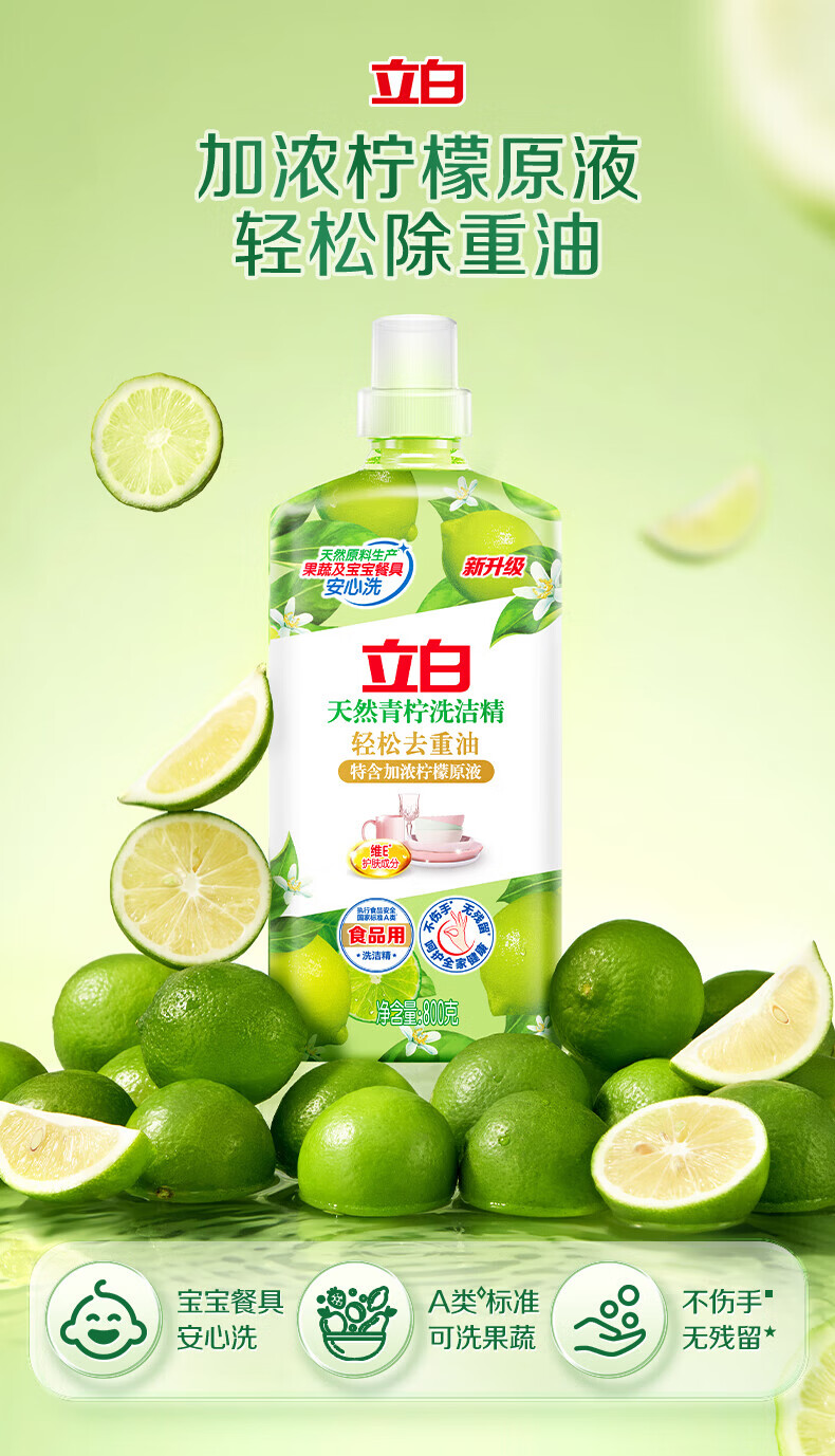 立白青柠洗洁精APG薄荷洗洁精除菌去油不伤手食品用果蔬可洗家用 套餐2斤装】