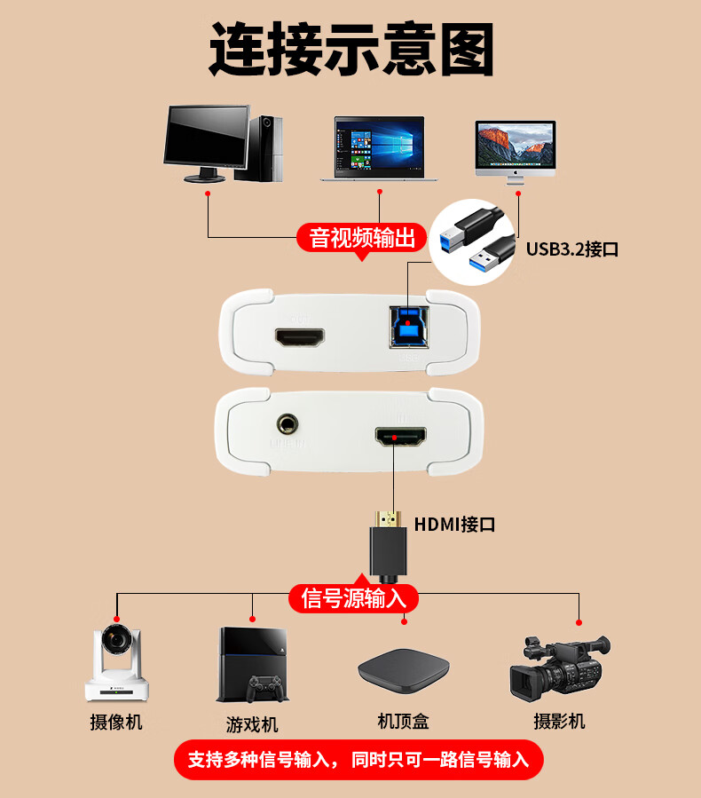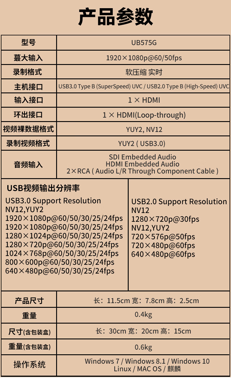 TCHD Video575G免驱采集卡视频hdmi高清直播游戏USB3.0推流器单反ns UB575G【安卓/苹果 15及以上手机直播】