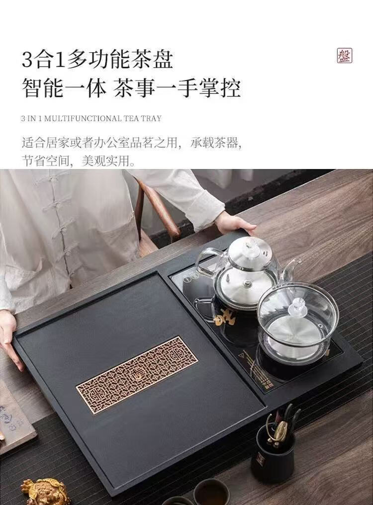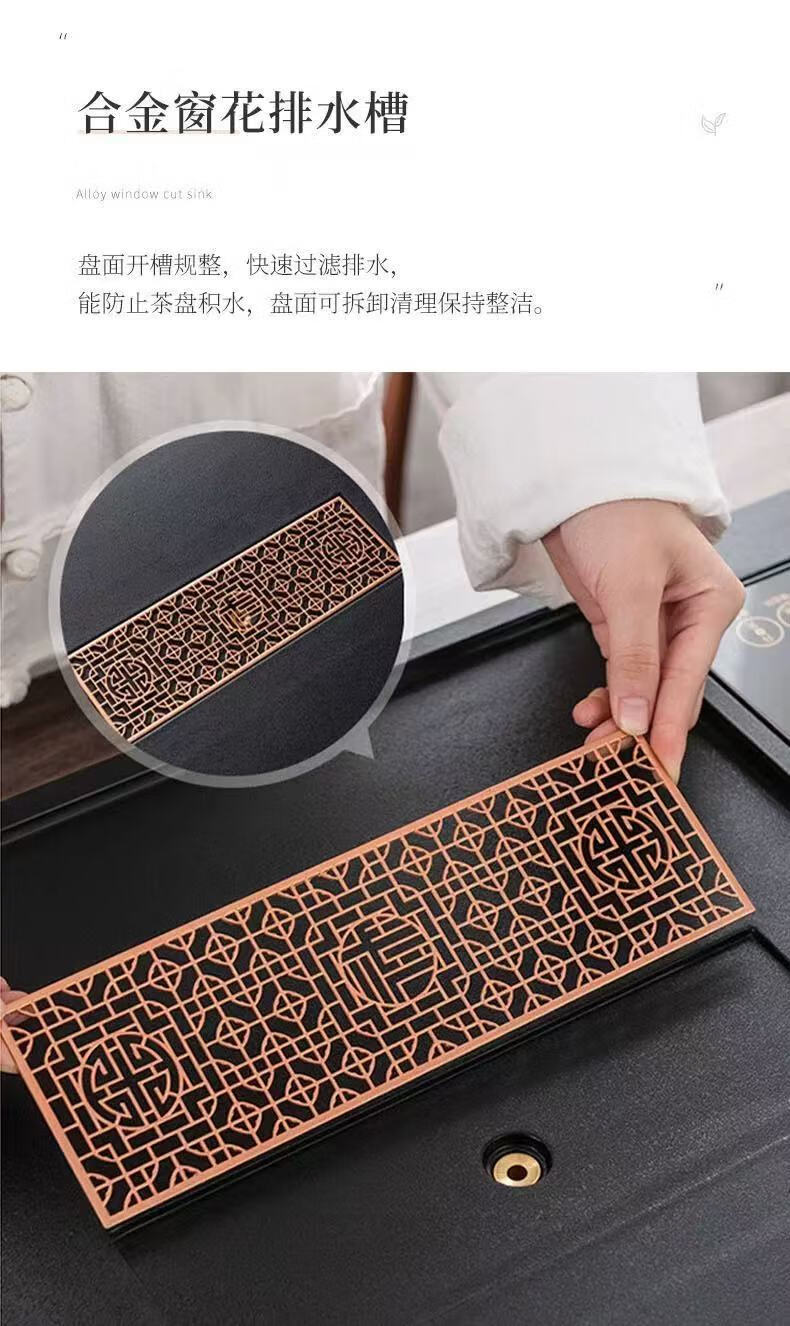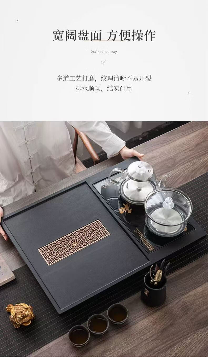 合成乌金石茶盘全自动一体烧水壶套装客厅办公室家用简约茶台茶具 长窗花 (85*45cm开孔一体) 带玻璃烧水壶