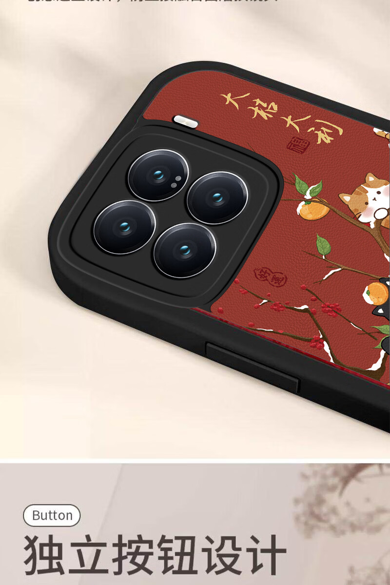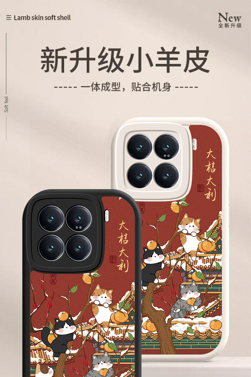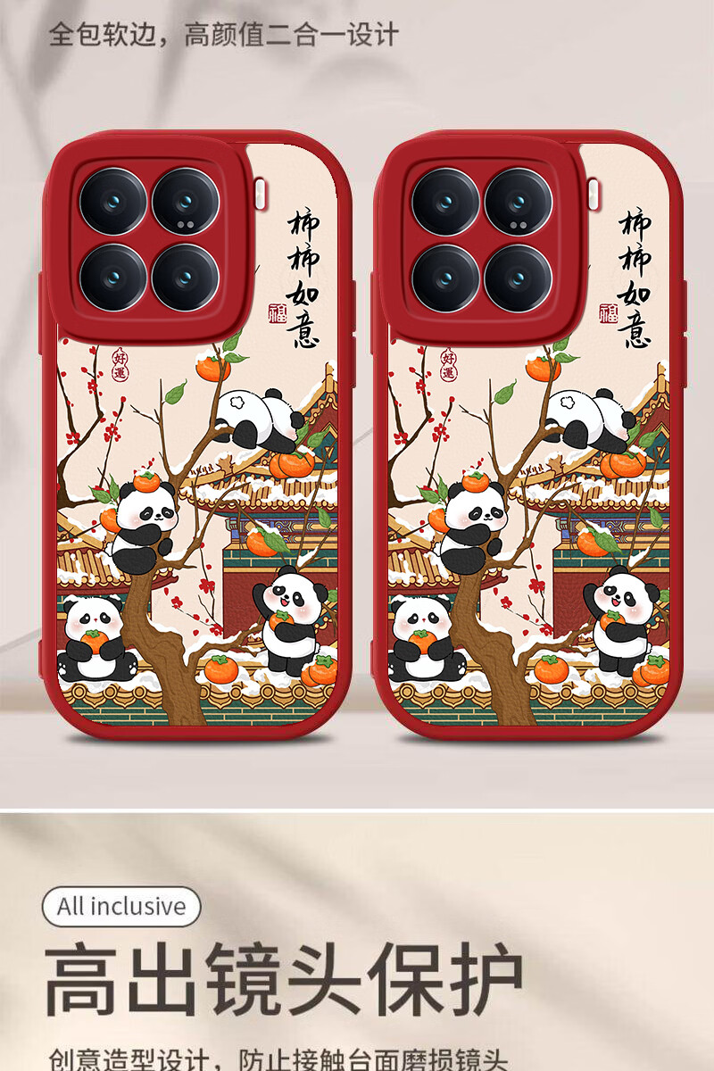 东途者适用小米14Pro手机壳个性创意熊猫新年款Mi14ultra高级感小羊皮轻奢彩绘保护壳镜头全包硅胶软壳 小米14Pro【红色-故宫如意熊猫】