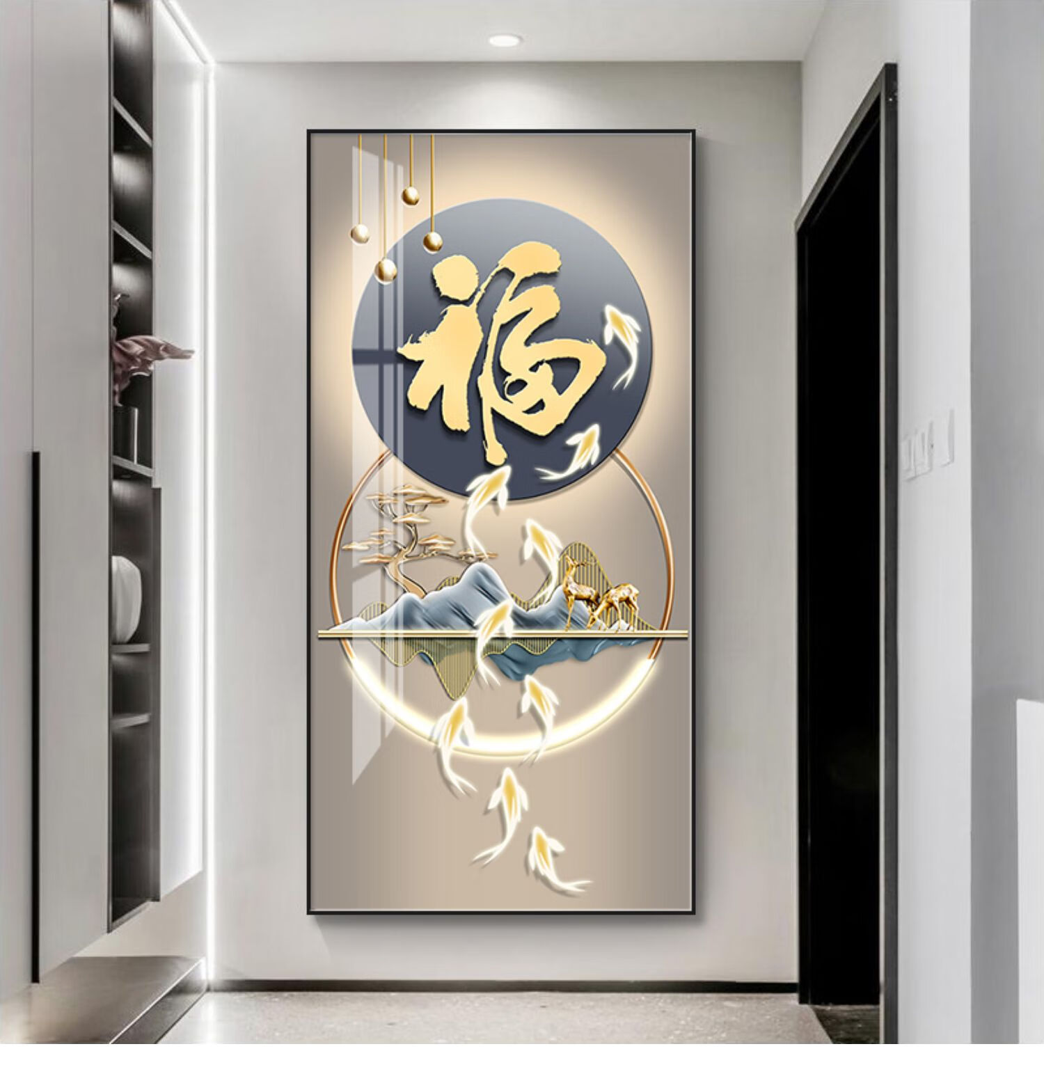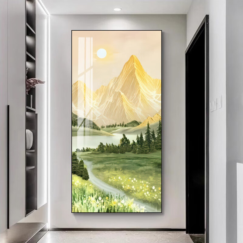 柳莺花燕入户玄关装饰画玄关挂画走廊过道挂画客厅山水画新款高级感玄关画 时来运转(简约风) 80X160cm铝合金框 超透晶瓷(亮面) 默发黑框(如需金色请备注)
