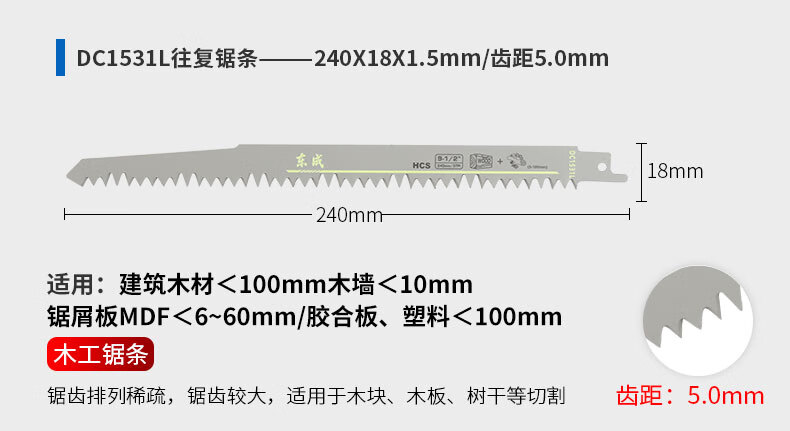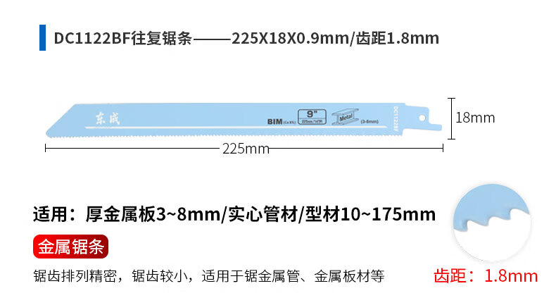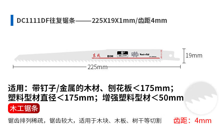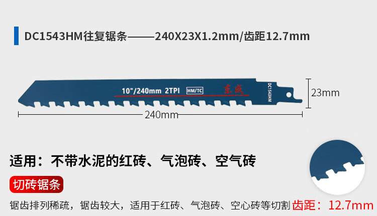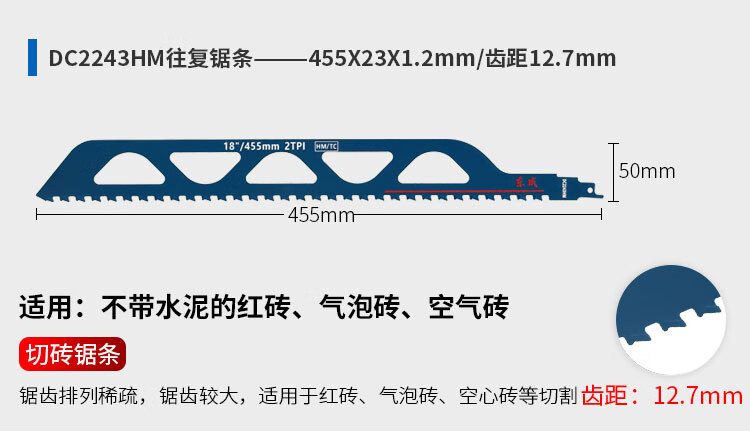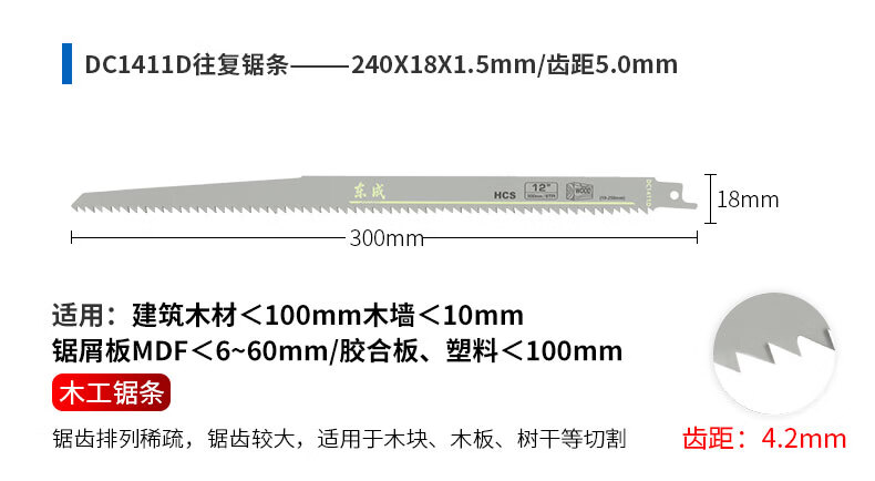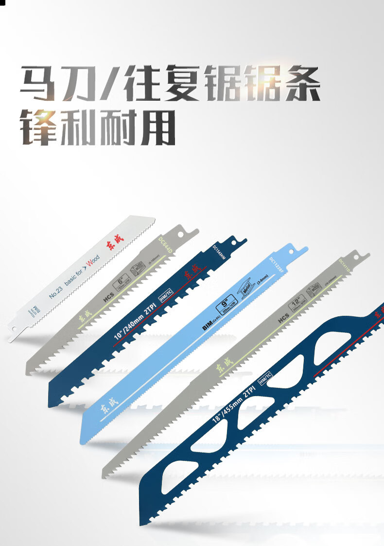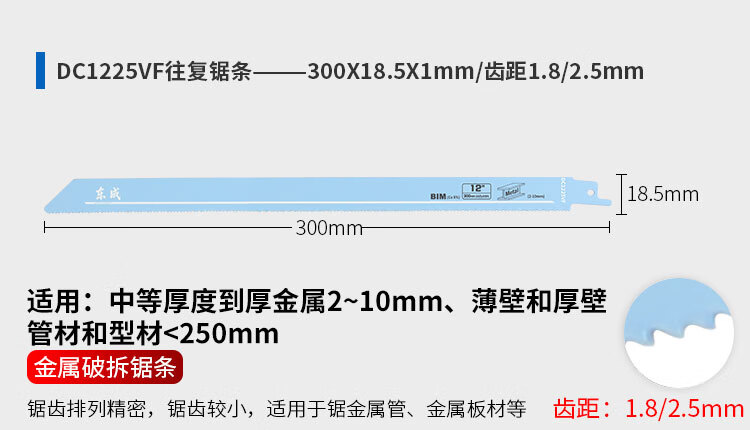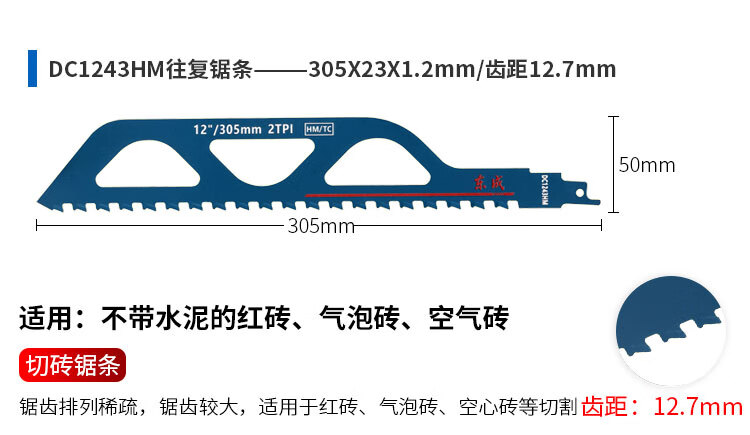 东成马刀锯锯条电动往复锯条博士进口马刀锯片木工合金双金属切割 305mm【切砖专用】1片装