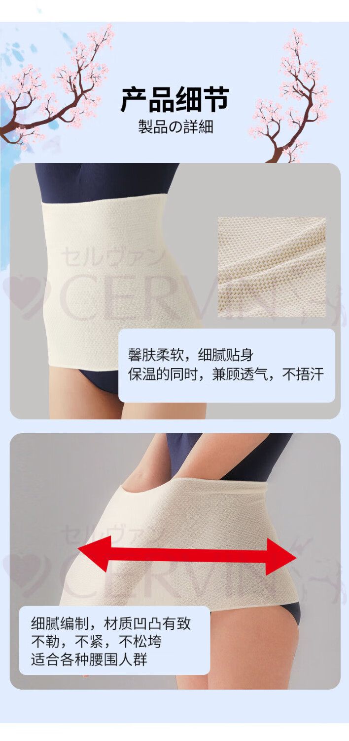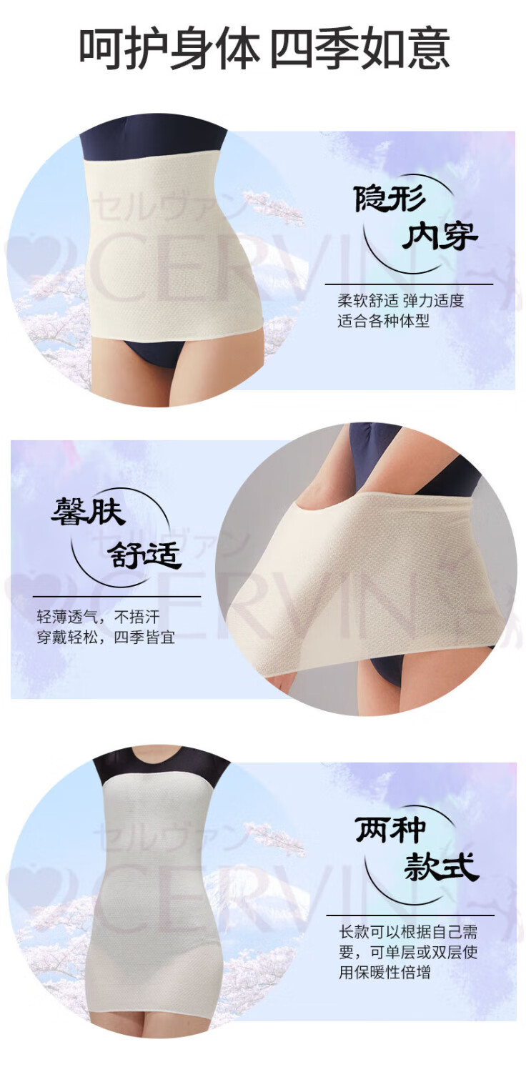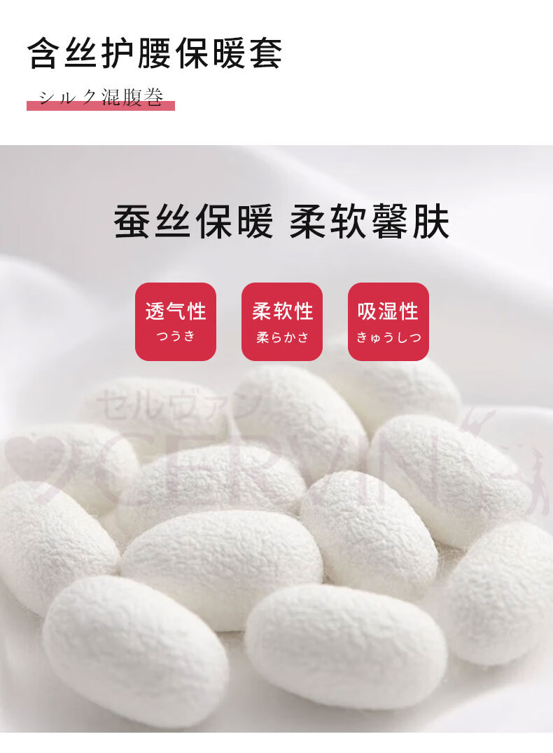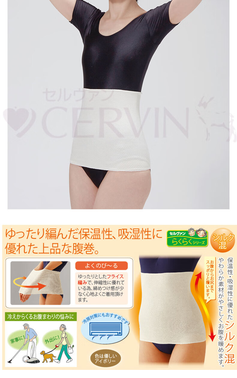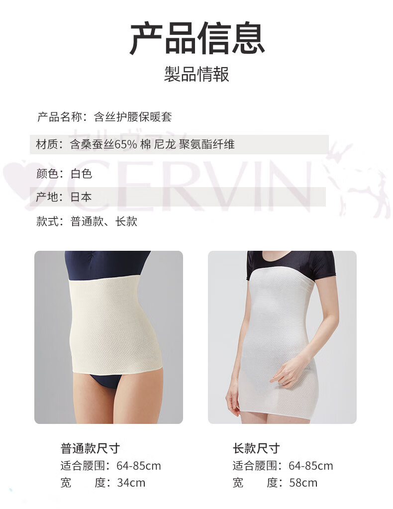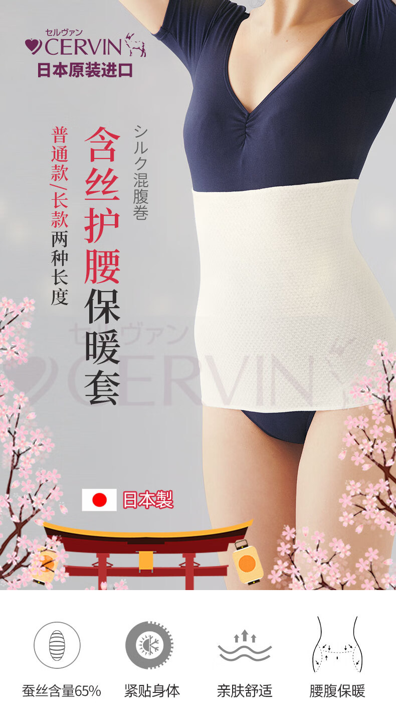 CERVIN日本原装进口蚕丝护腰带保暖腹部防寒暖宫带轻薄透气护肚子暖腰带 含丝护腰加长款保暖套