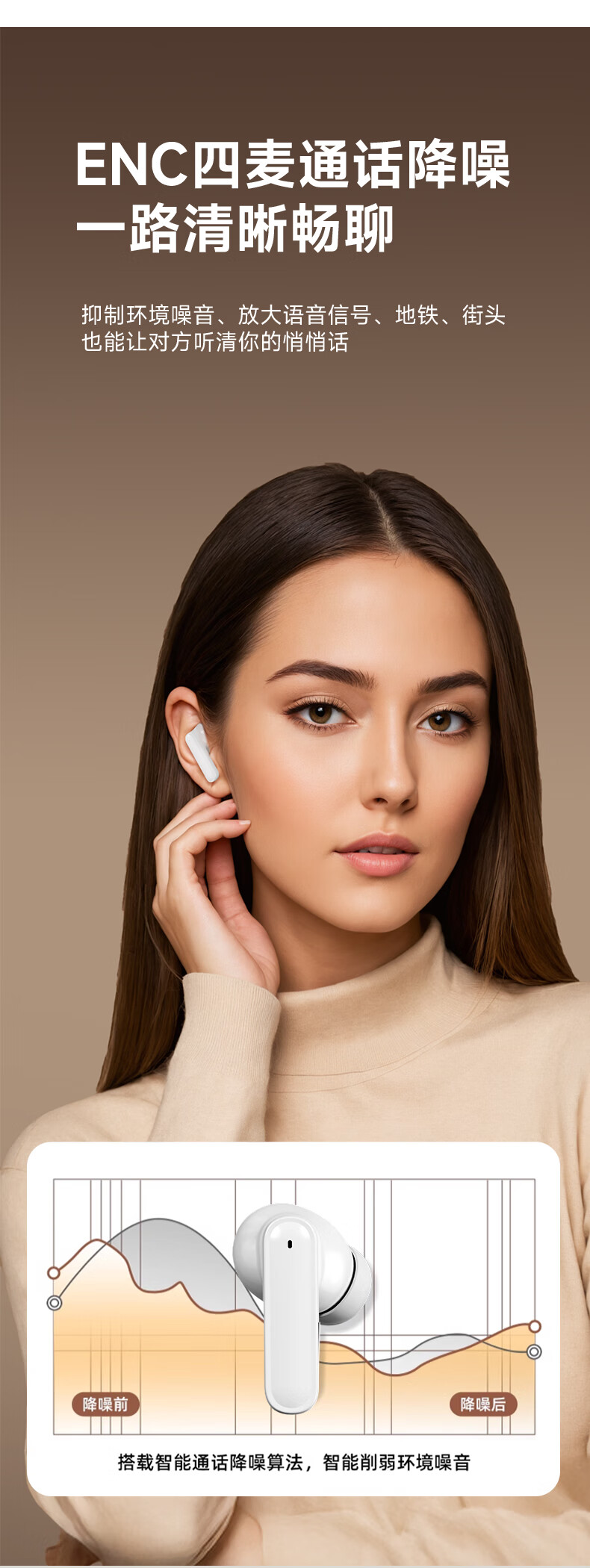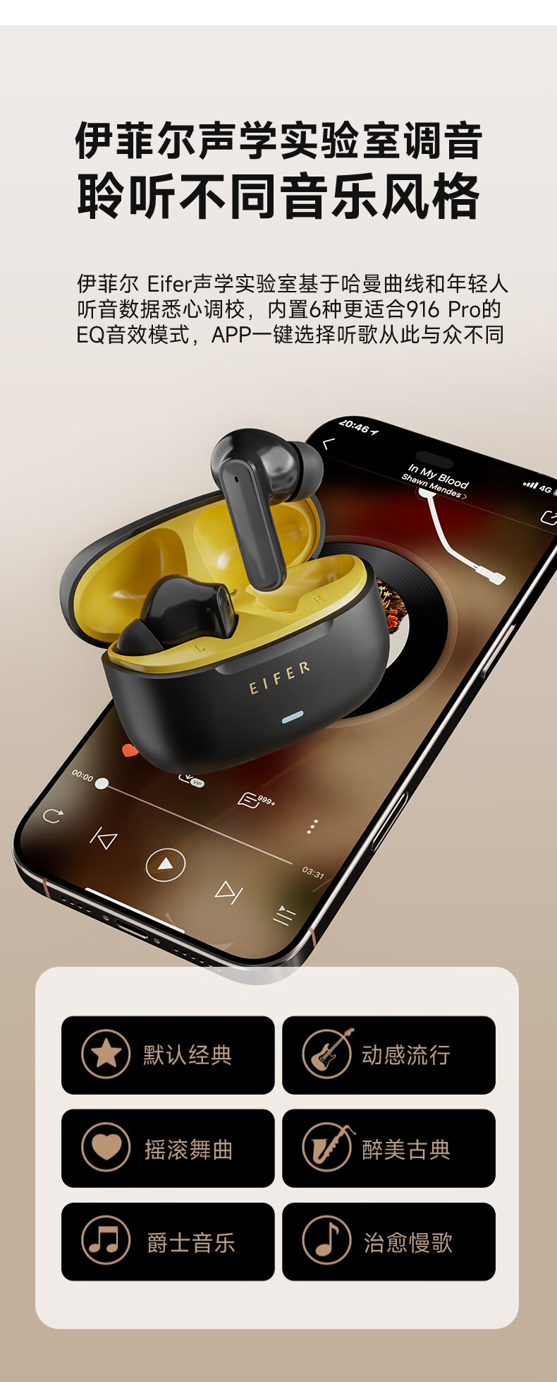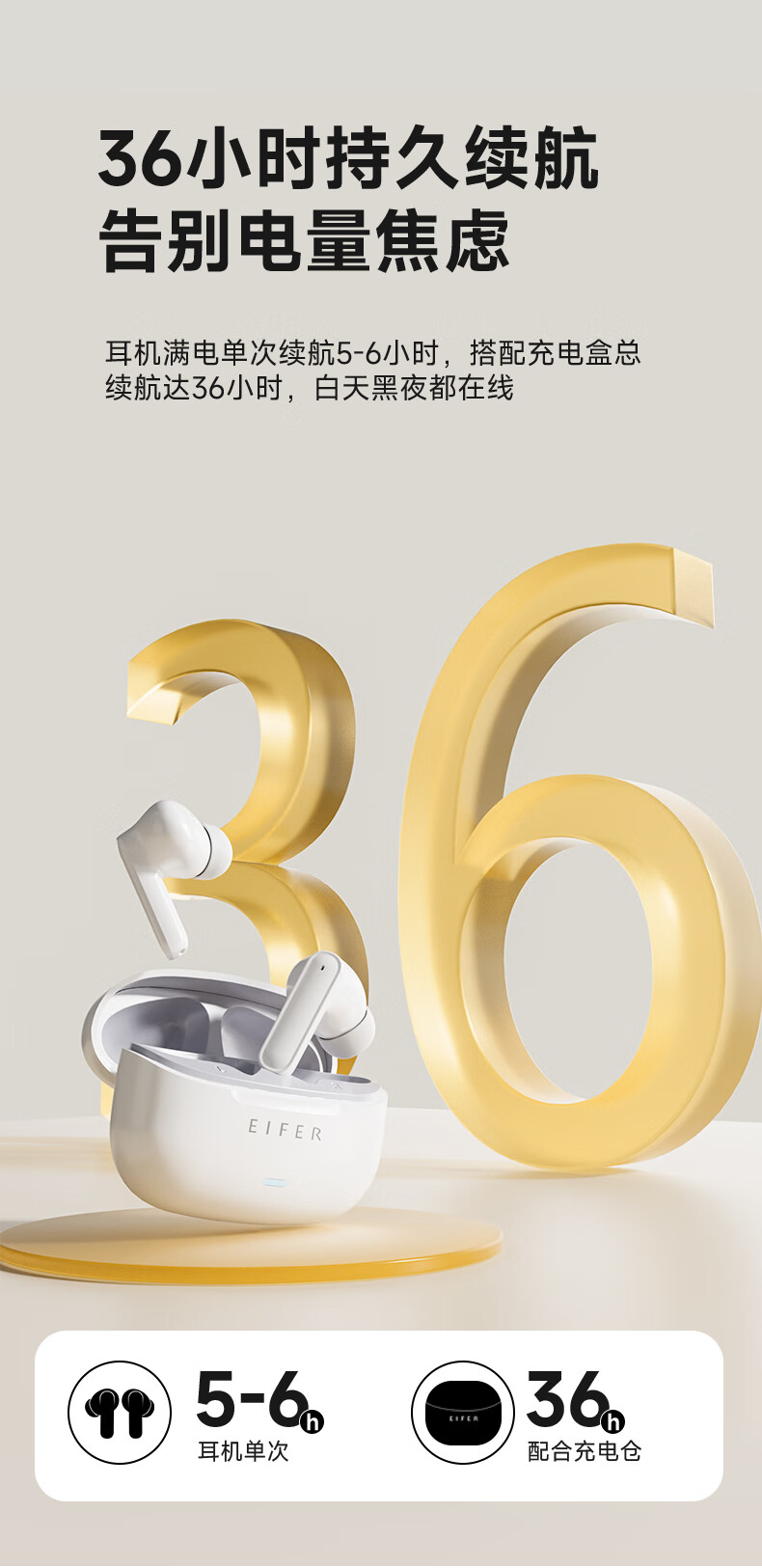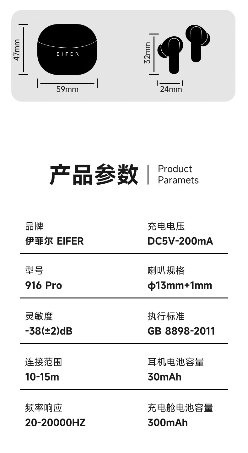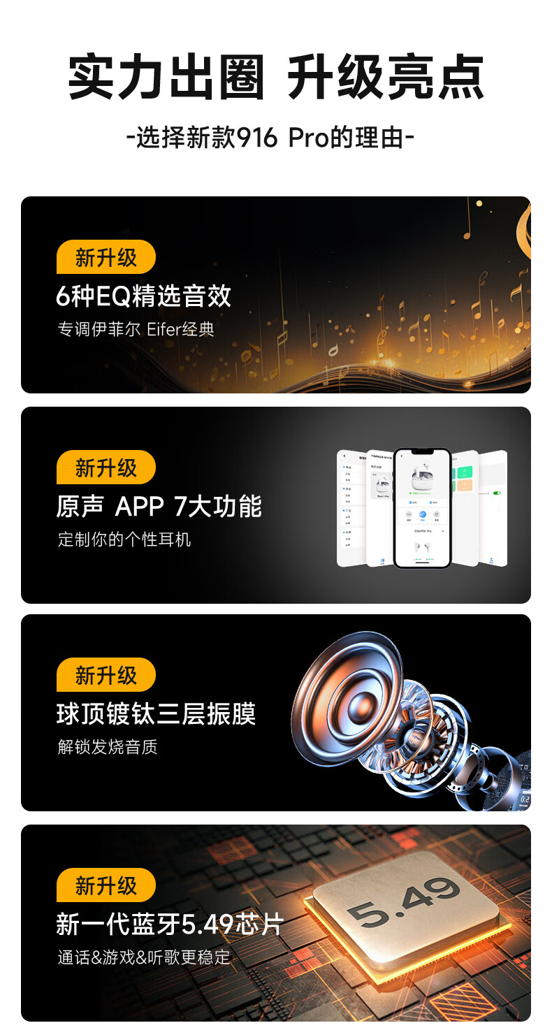 伊菲尔(Eifer) 916 Pro 主动降噪无线蓝牙耳机入耳式高音质超长续航游戏模式防水防汗运动 流光白(智联APP版) ANC主动降噪+低音增强+定位查找