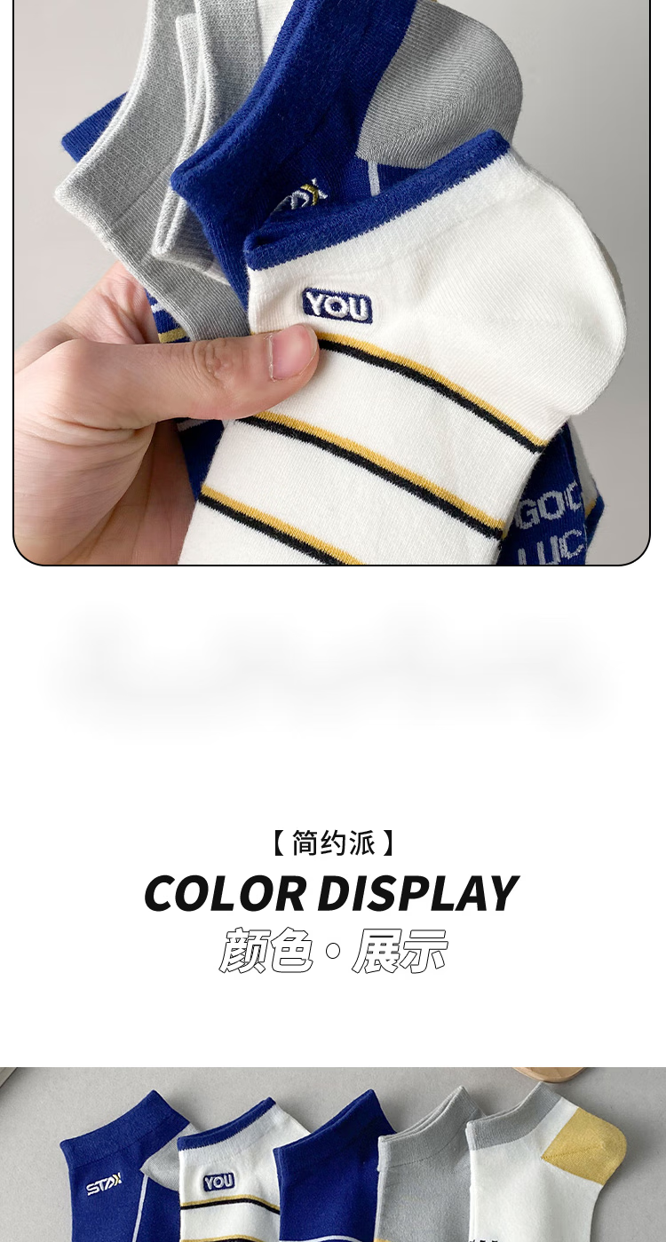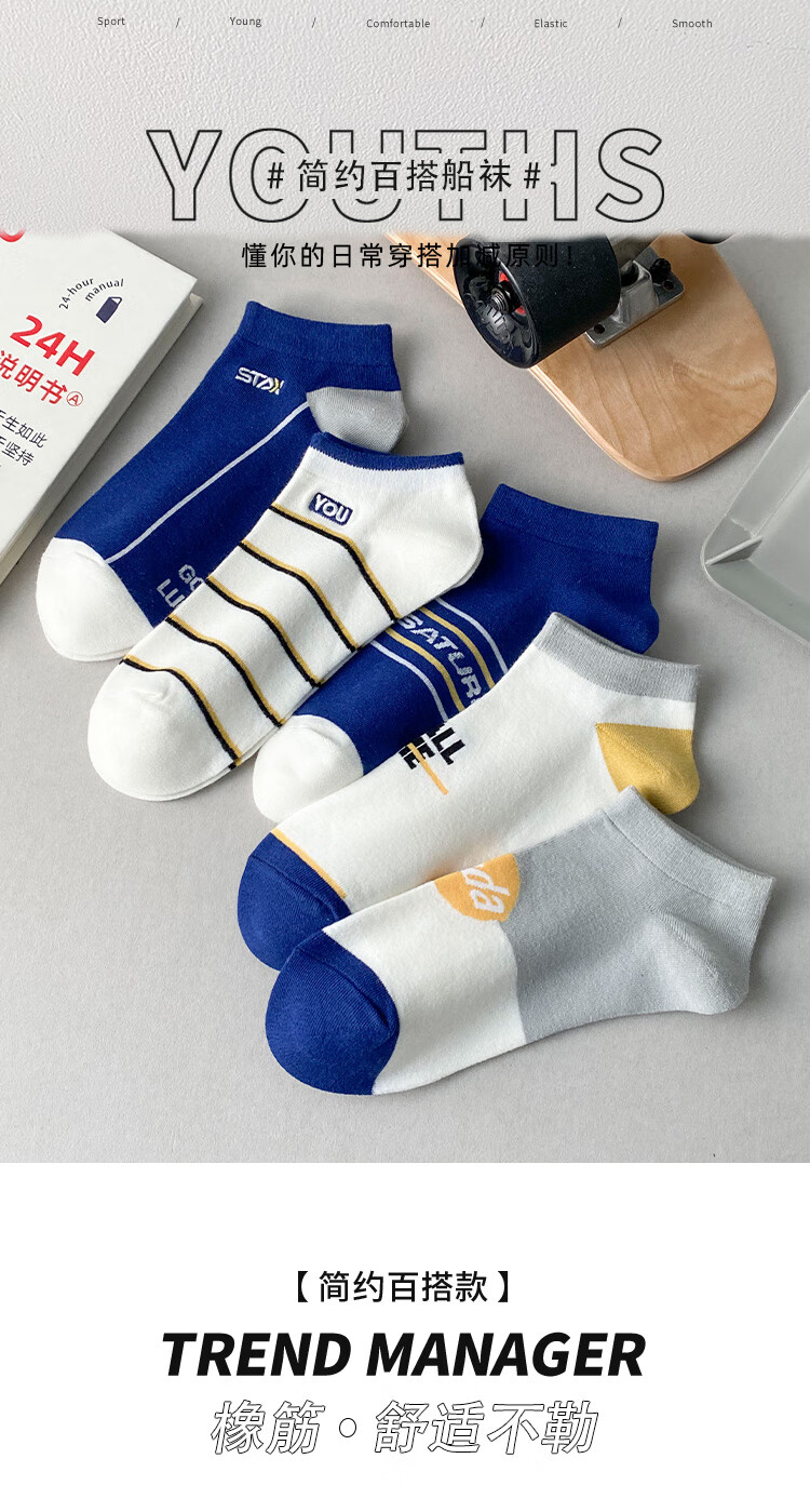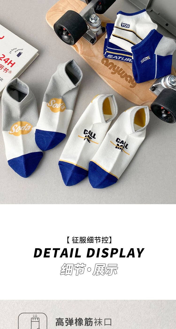 米大爷【甄选直发】5双袜子男短袜夏季薄款船袜透气休闲男袜浅口潮流袜 男士蓝色系短袜 5双 均码 (37-42码)
