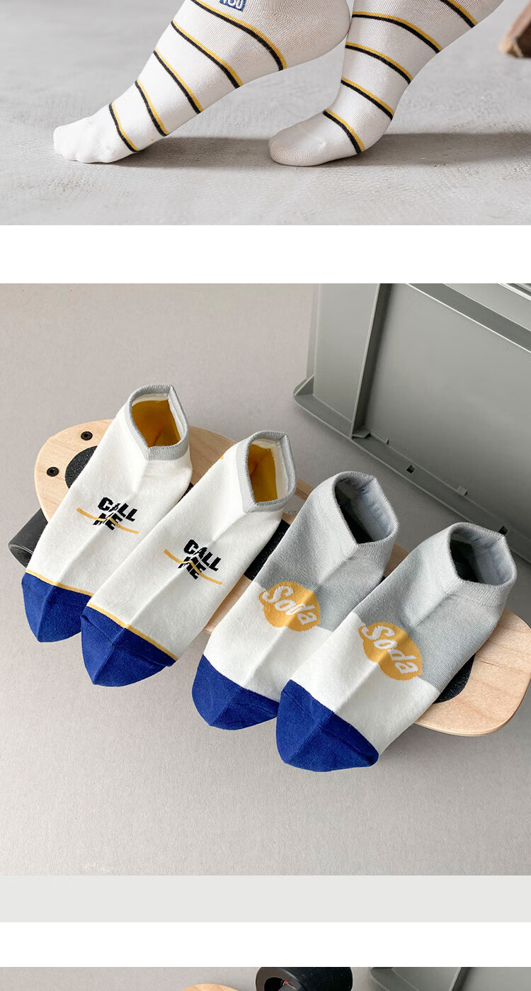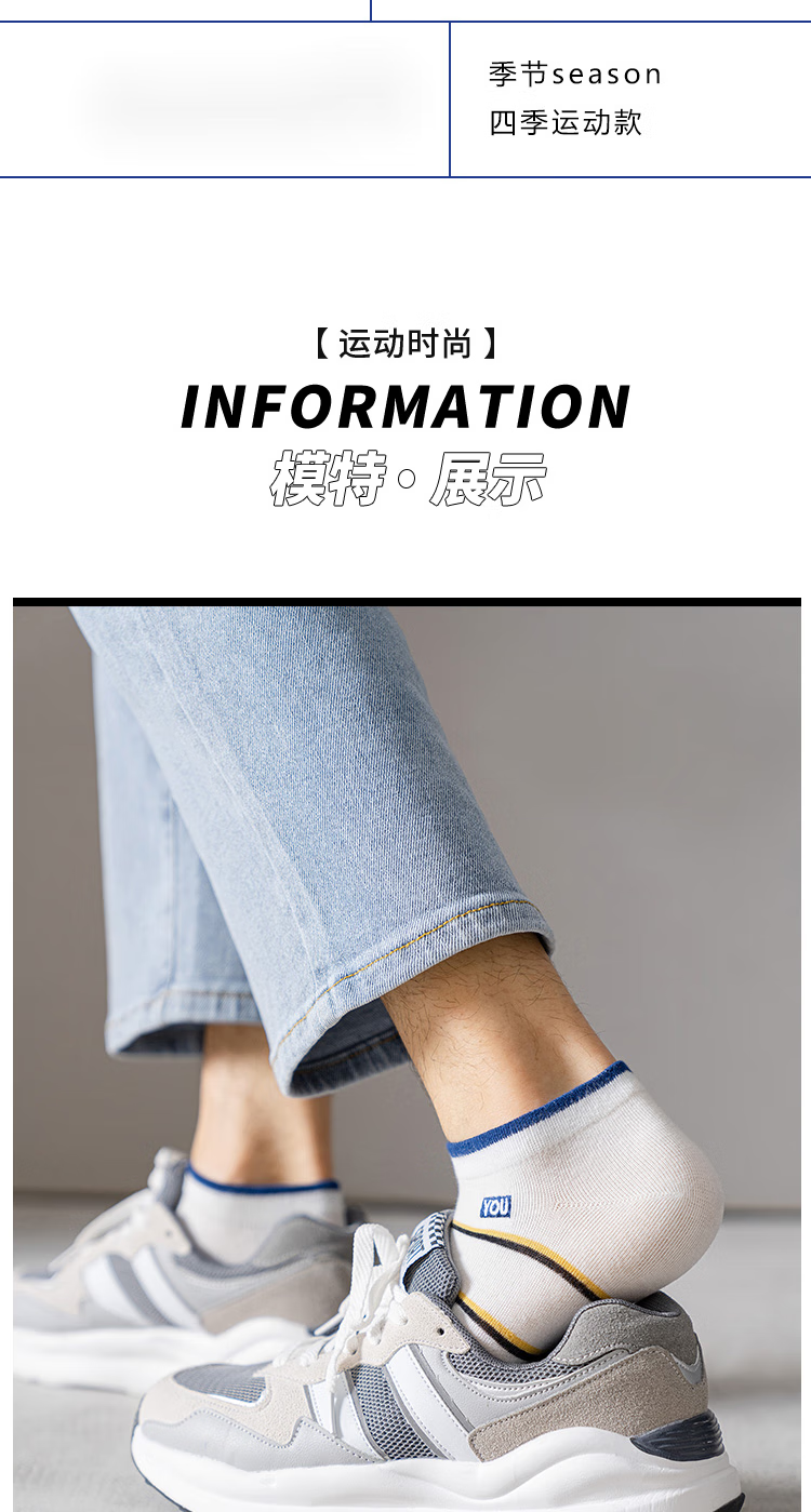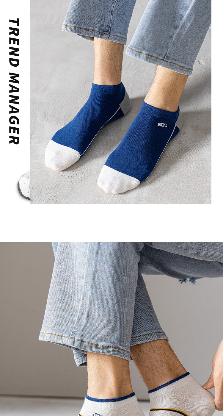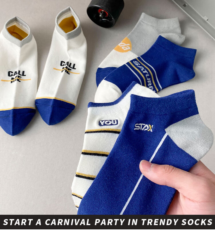米大爷【甄选直发】5双袜子男短袜夏季薄款船袜透气休闲男袜浅口潮流袜 男士蓝色系短袜 5双 均码 (37-42码)