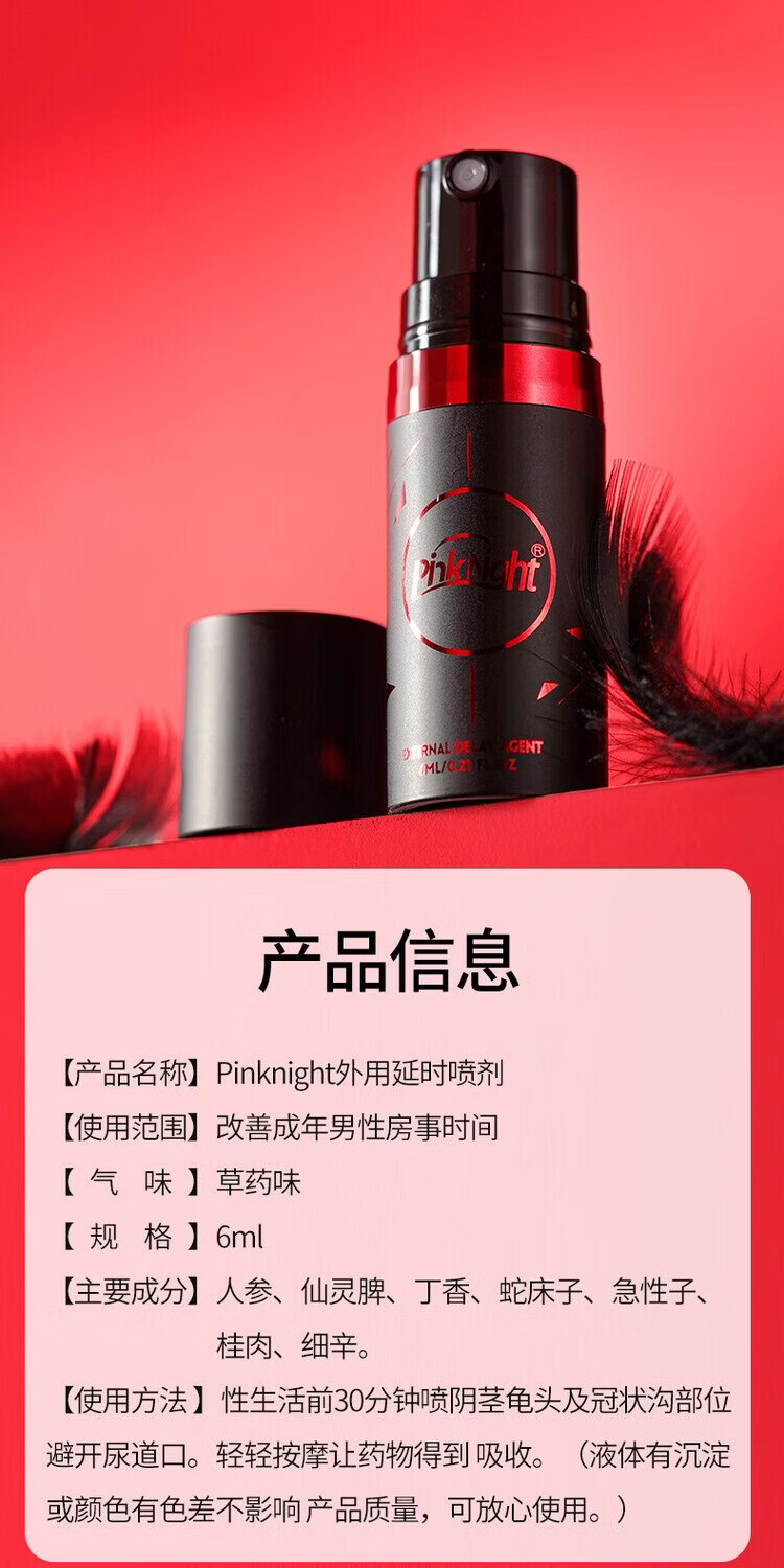 PINK NIGHT英国进口货男士精华喷雾延时喷雾早泄龟头敏感射精快延时喷剂 女用痒痒液4支