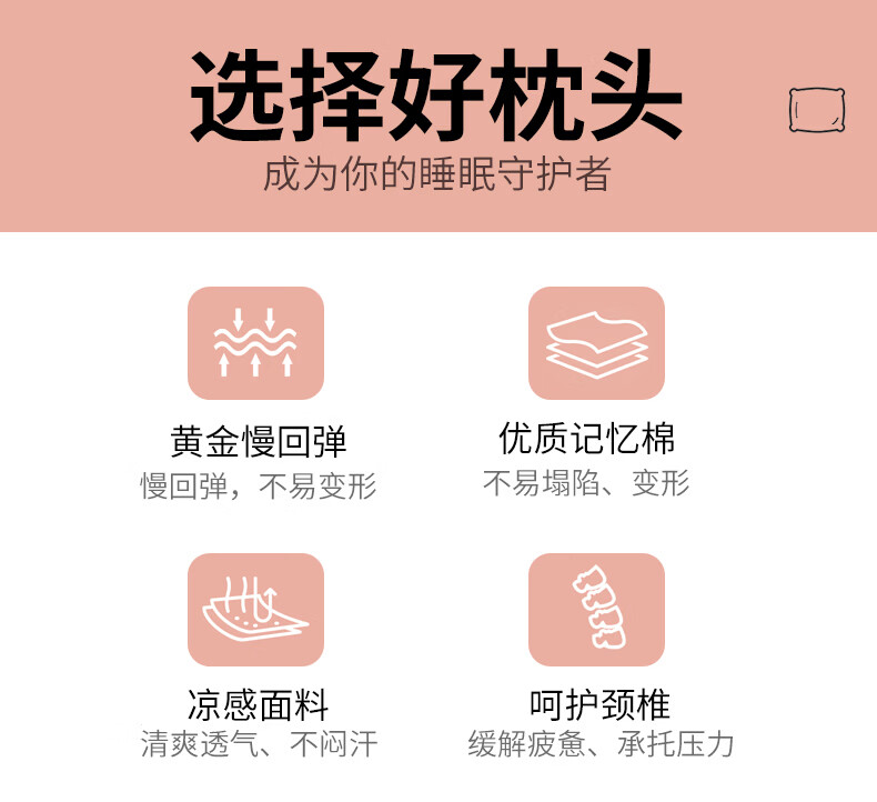 杰为康深睡枕颈椎枕护颈椎慢回弹记忆棉枕头驼背富贵包不塌陷枕头 1个蓝色安睡枕+1个香槟色替换枕套 单只