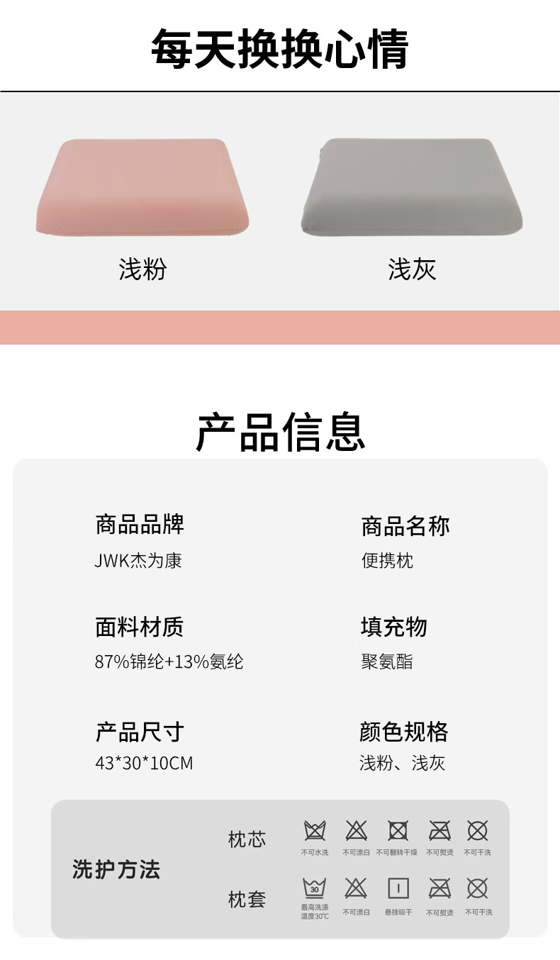 杰为康便携式可折叠记忆棉小枕头出差旅行酒店睡觉神器户外记忆枕 粉色 单只