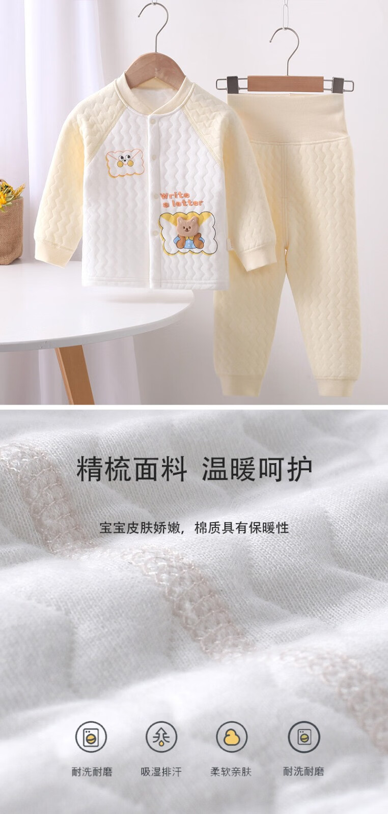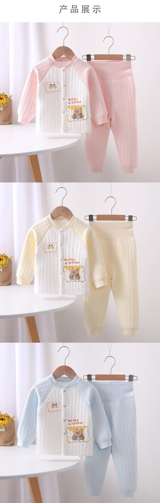 安贝九彩鸟新生儿婴儿分体套装秋冬保暖纯棉三层夹棉男女宝宝衣服外套家居服 蓝色【保暖两件套】-高腰 73 cm 8-10个月【偏大】17-21斤