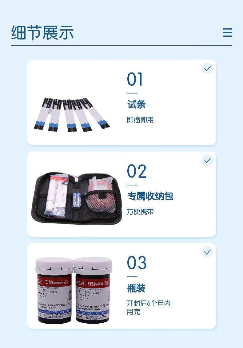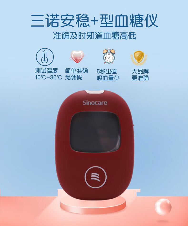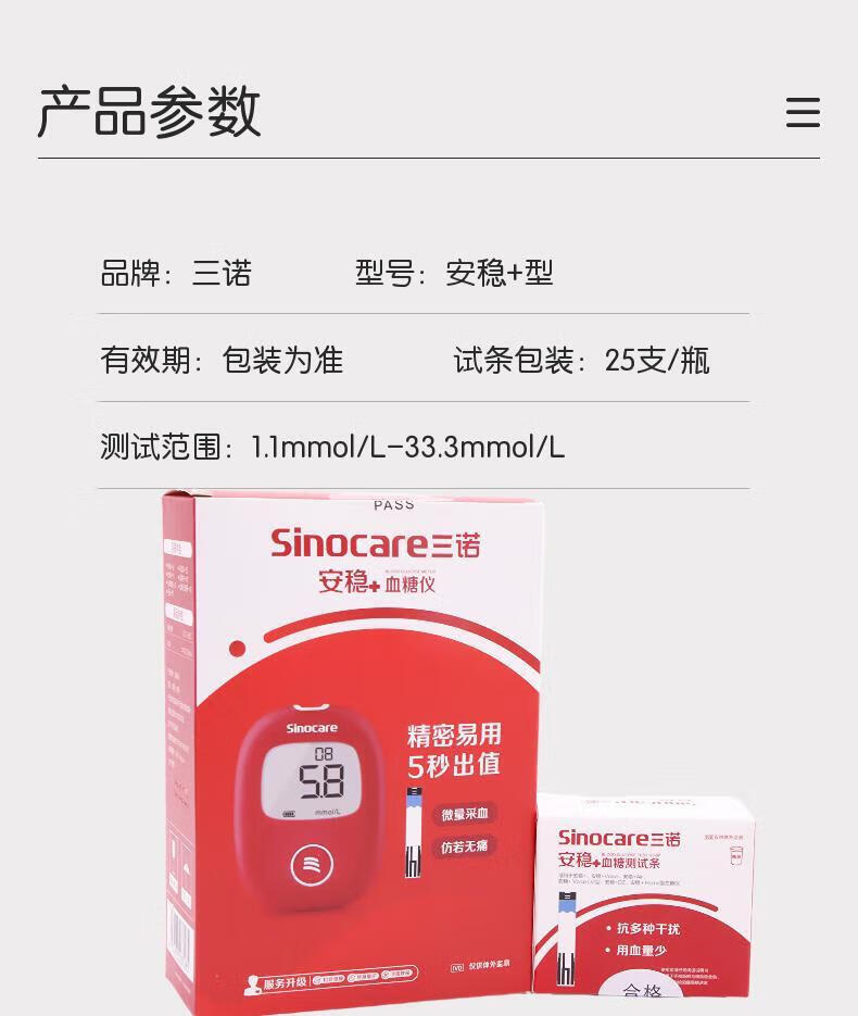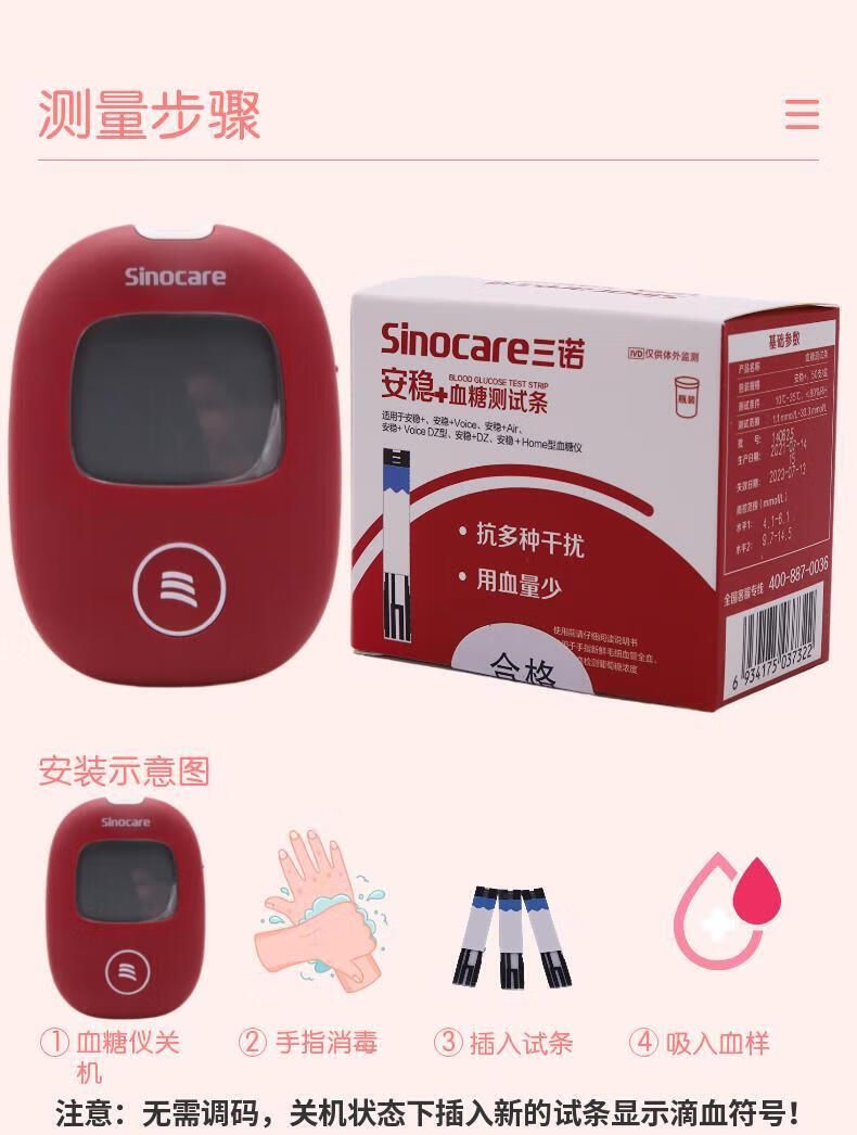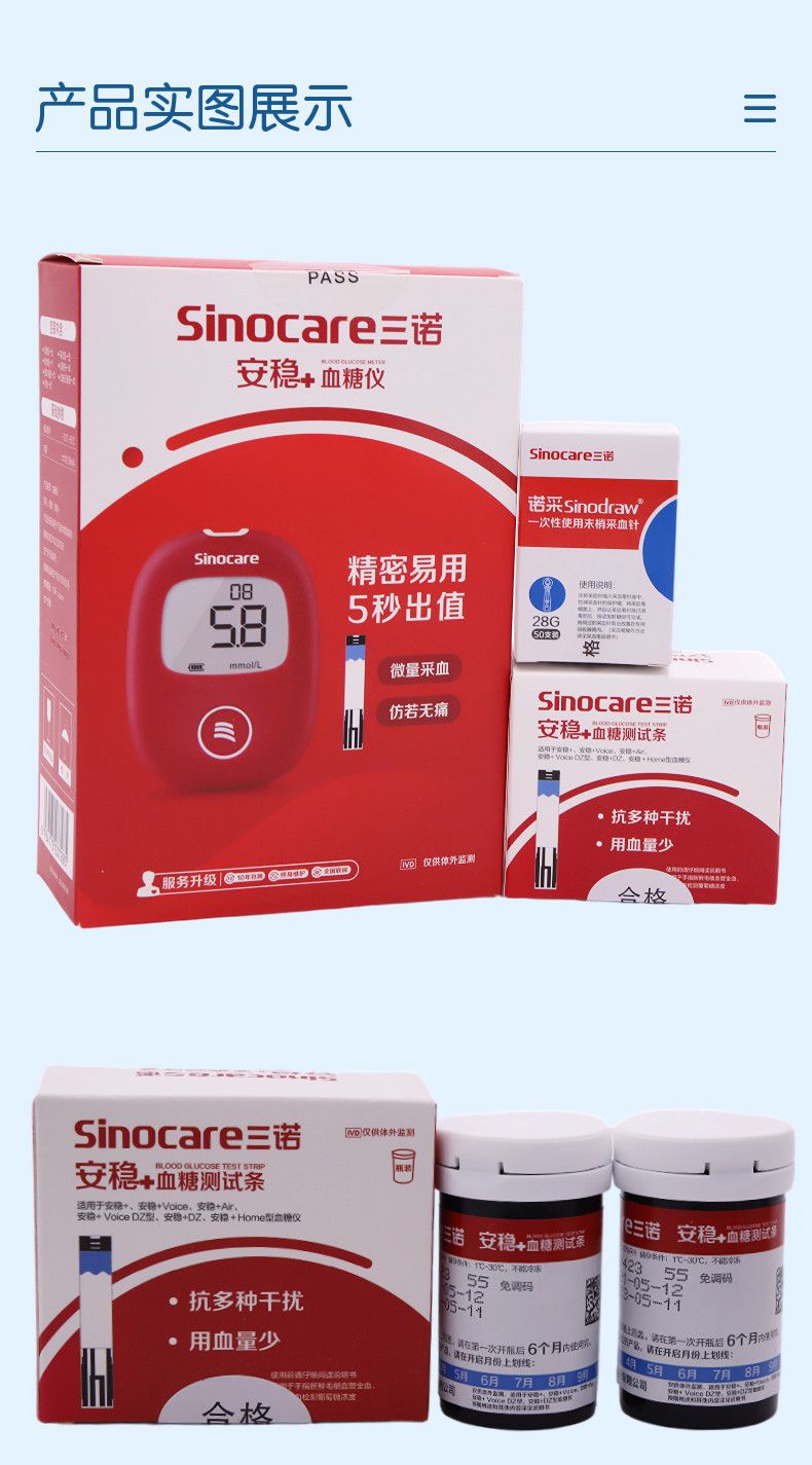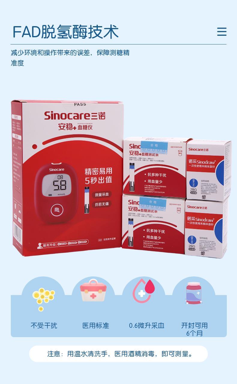三诺血糖条安稳+适用试纸免调码仪器 血糖仪+采血笔+收纳包+电池