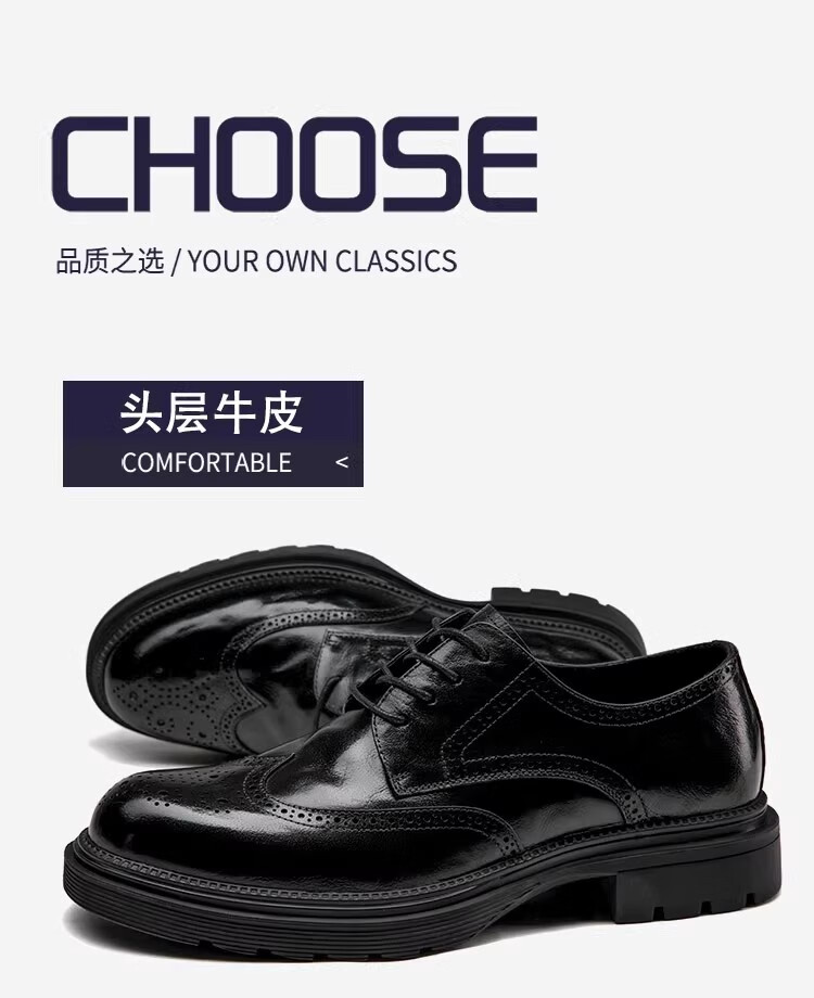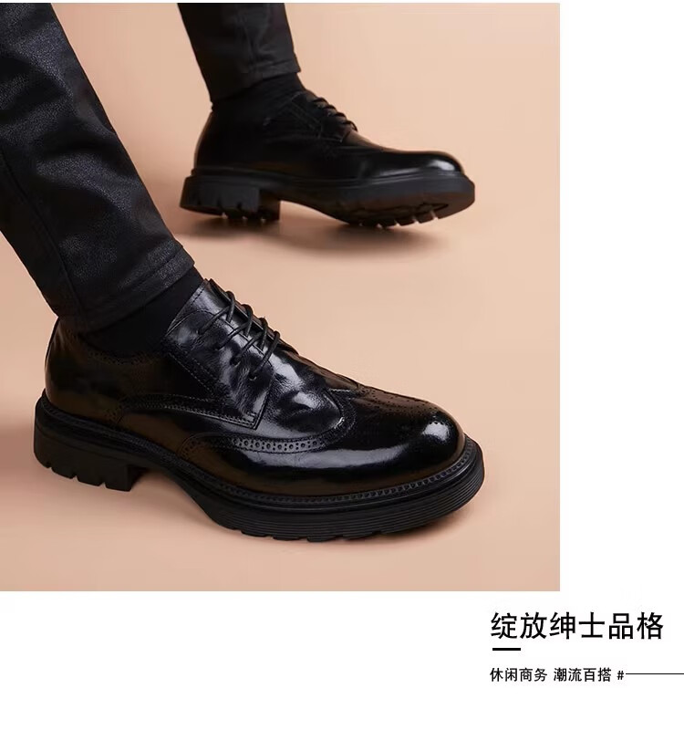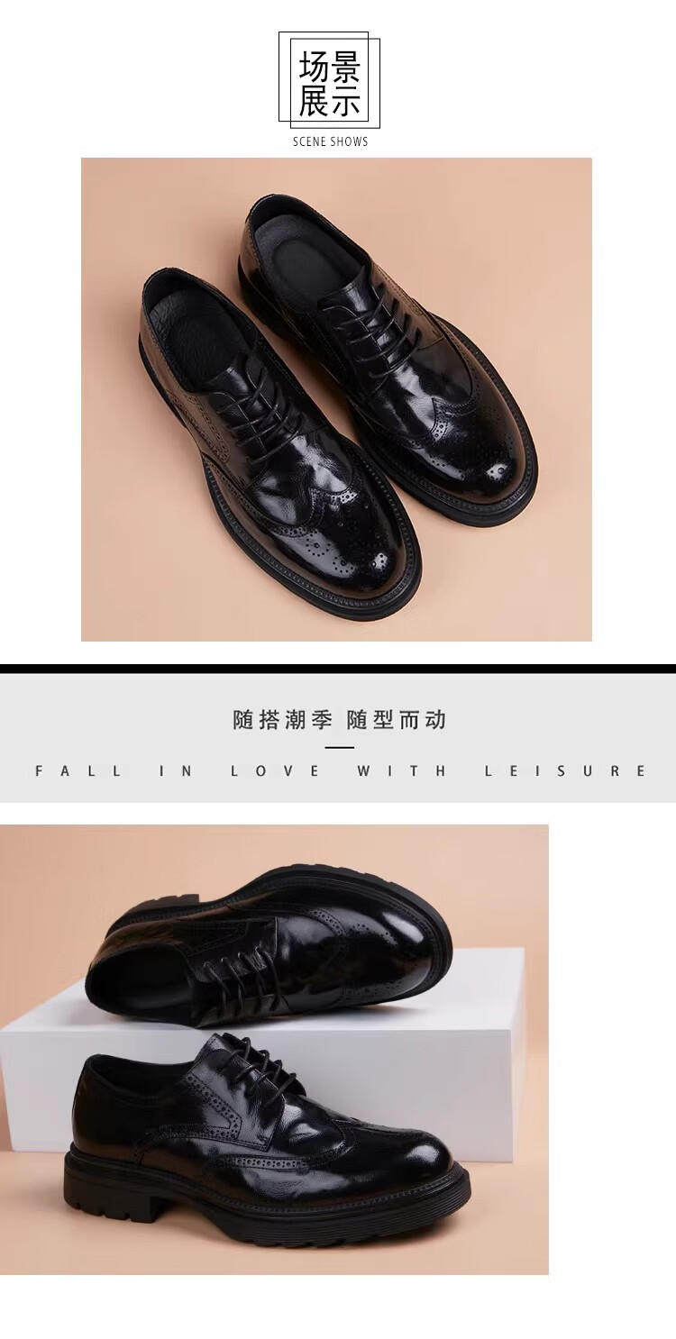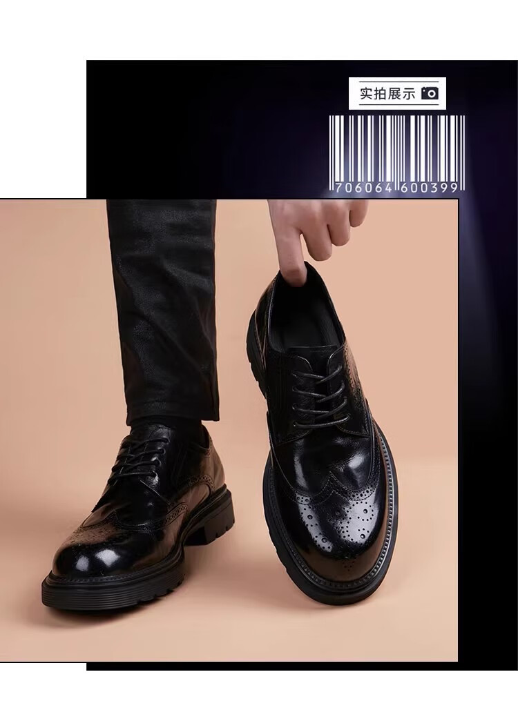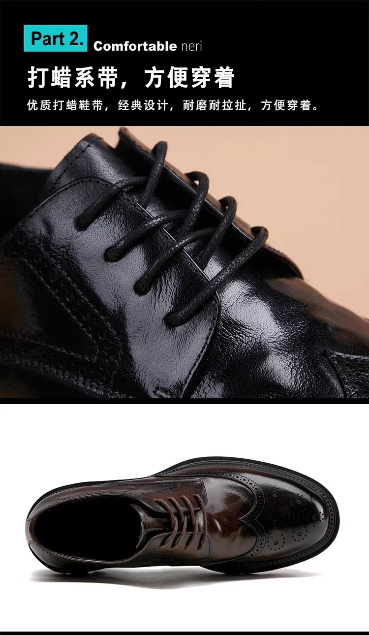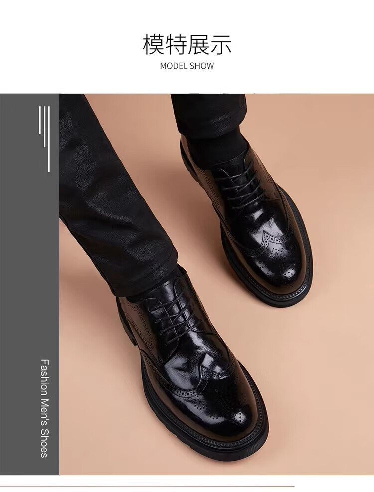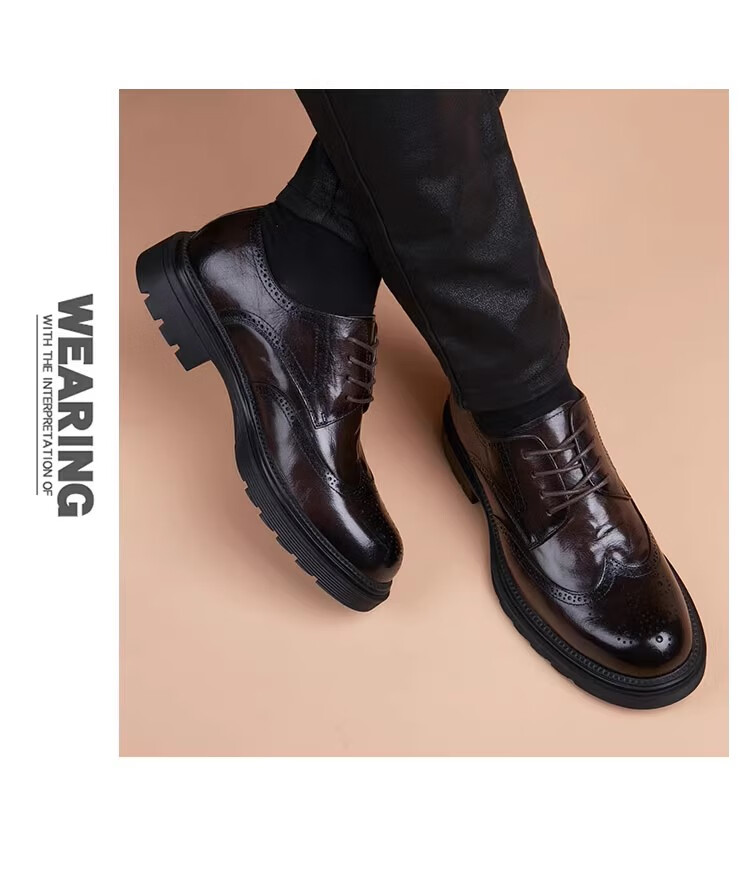Walker Shop高端皮鞋男款经典布洛克雕花男士皮鞋头层牛皮耐磨厚底结婚男鞋 高档棕色【品牌男鞋 礼盒包装】 38