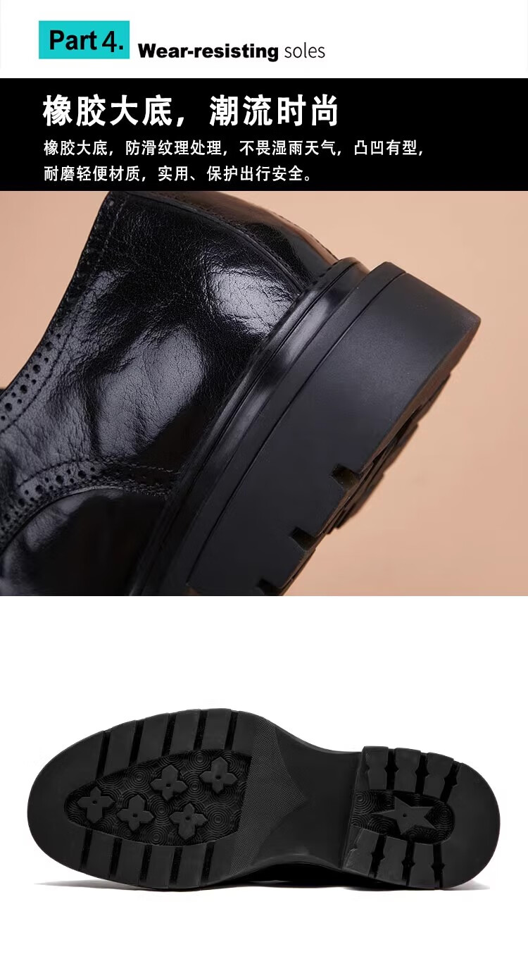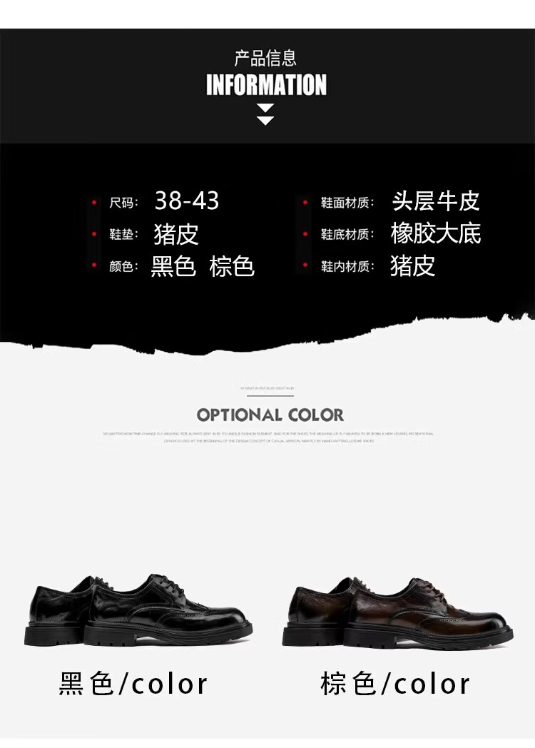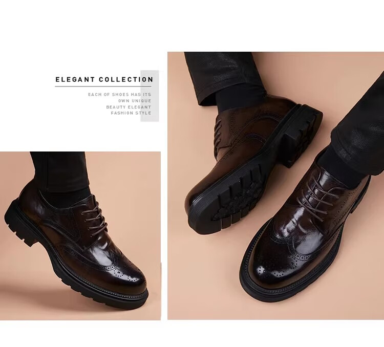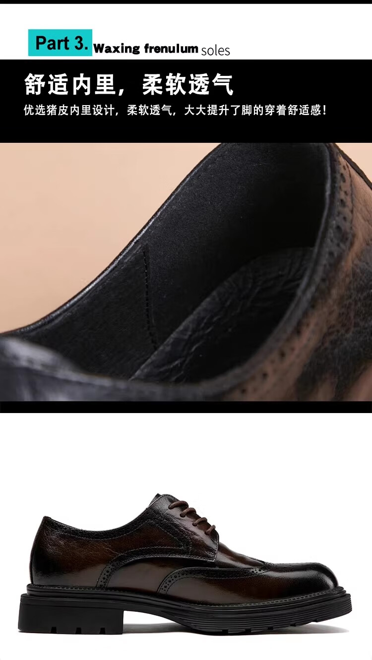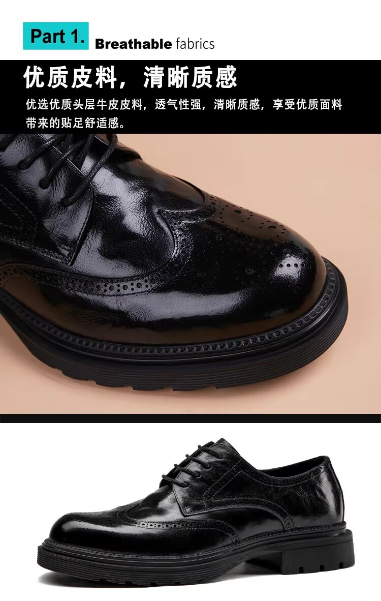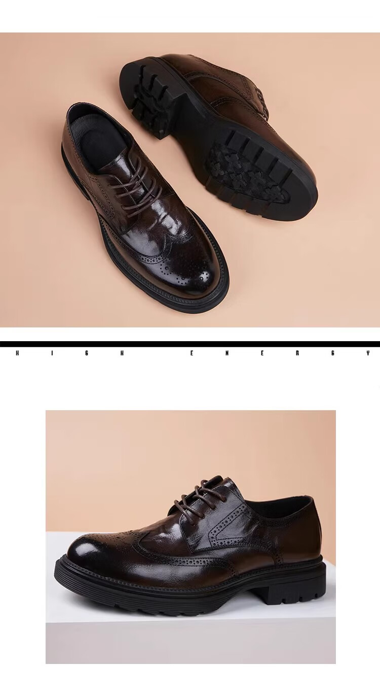 Walker Shop高端皮鞋男款经典布洛克雕花男士皮鞋头层牛皮耐磨厚底结婚男鞋 高档棕色【品牌男鞋 礼盒包装】 38