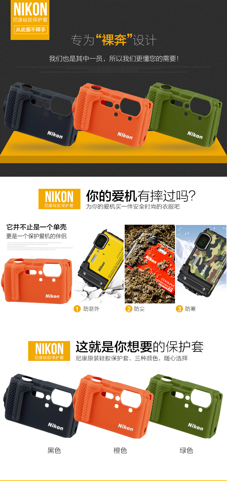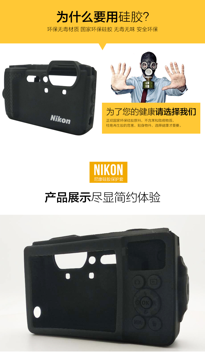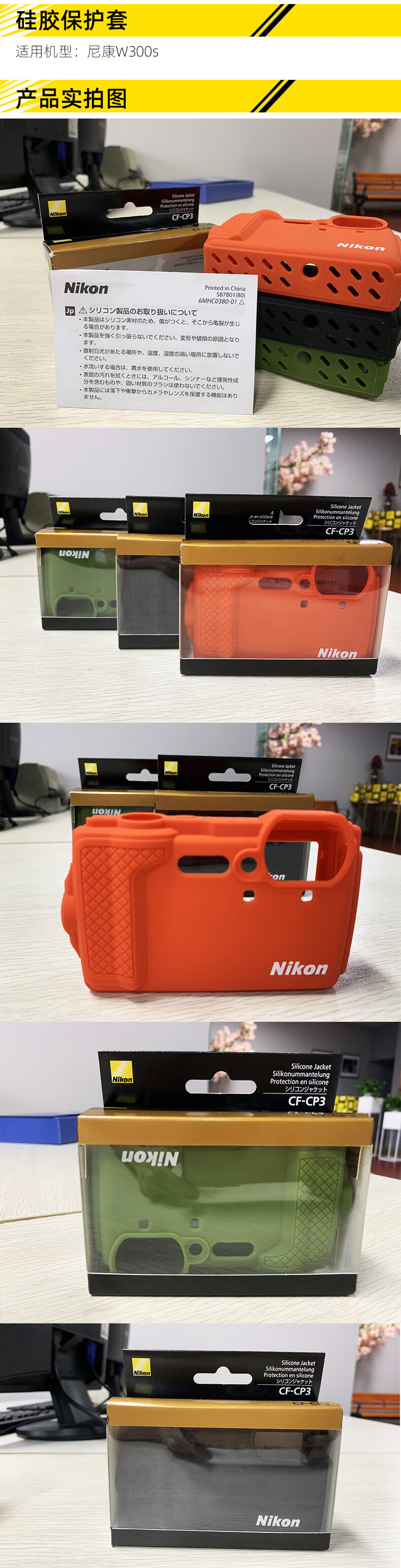 尼康(Nikon) 便携三防潜水数码照相机W300s 原装硅胶相机保护套/相机包CF-CP3 硅胶保护套绿色 标配