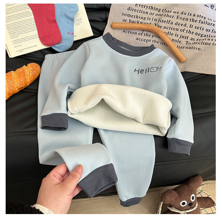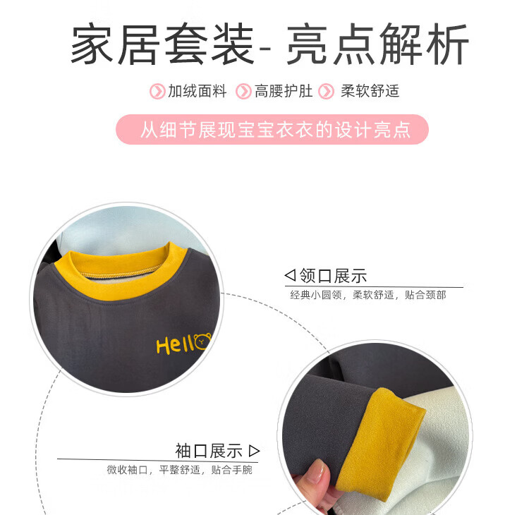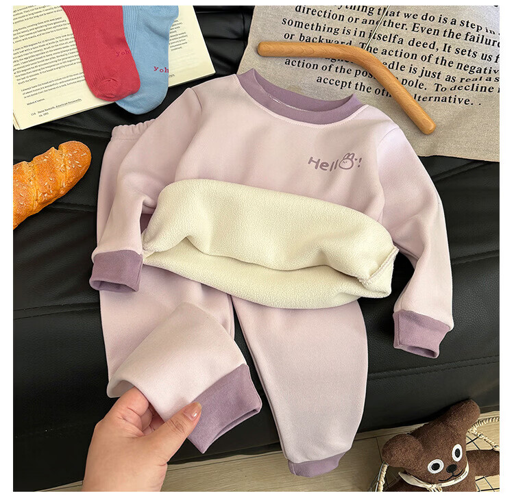 小猪班纳(PEPCO)新款儿童保暖套装男童加绒加厚秋衣秋裤冬季女童睡衣家居服两件套 KS酷森保暖套装-粉色 80 (建议身高65-75cm)