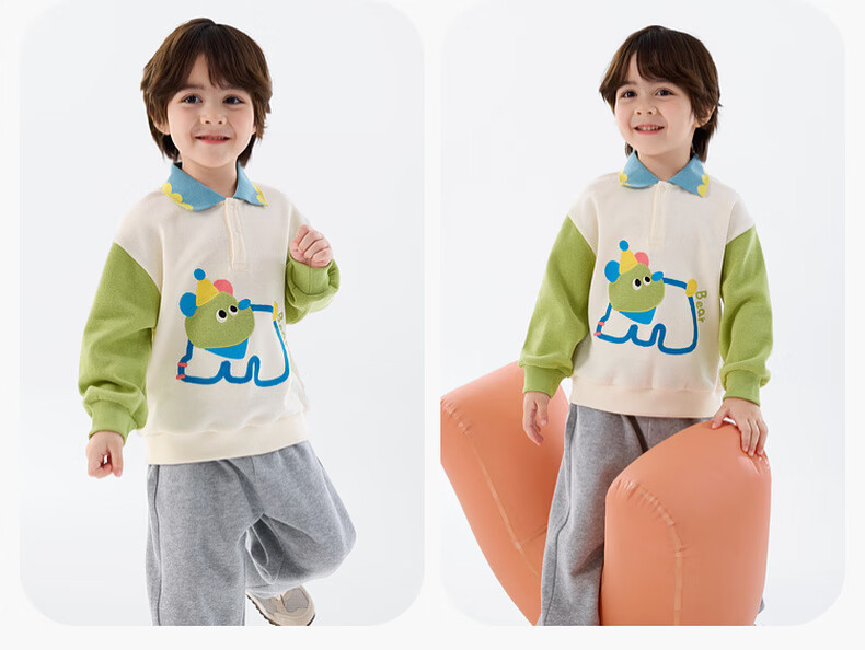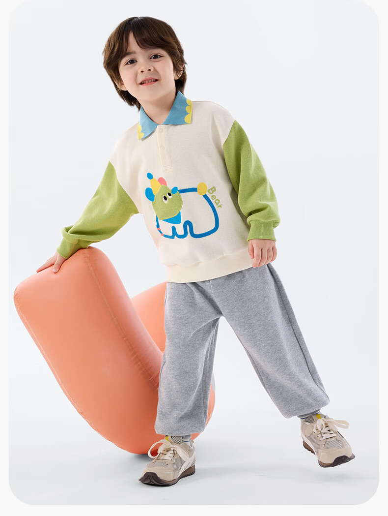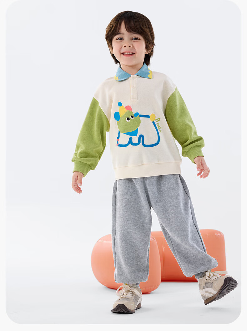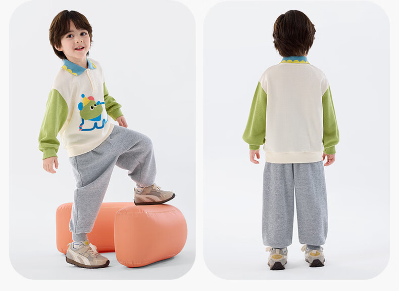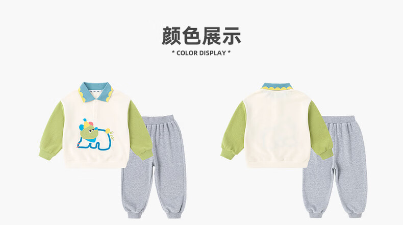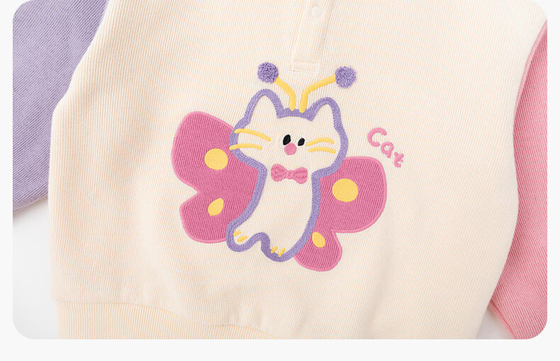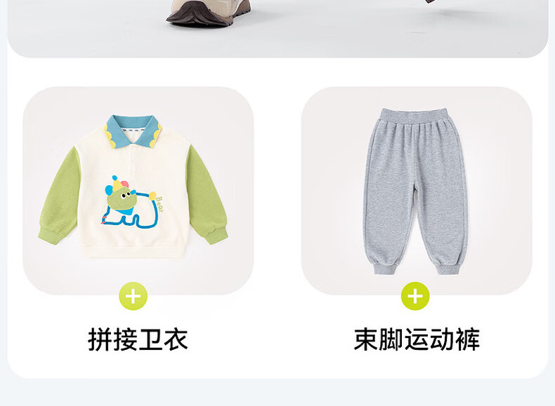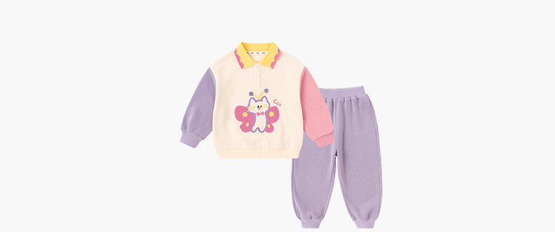 嘟嘟家儿童春季套装男童卡通拼接色卫衣女童休闲两件套宝宝透气针织长裤 淡紫雾色 90
