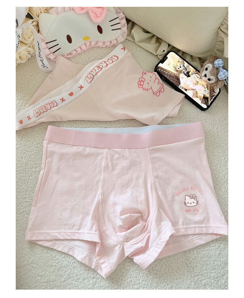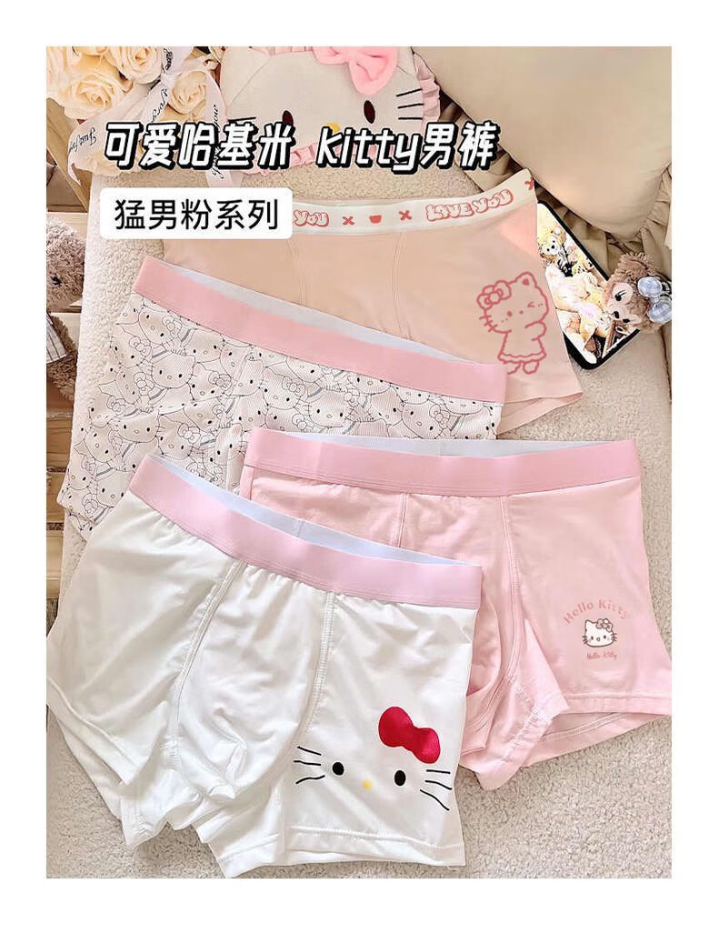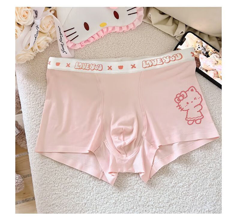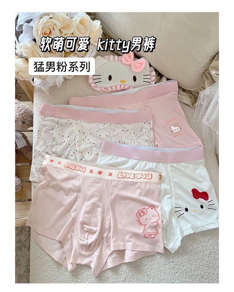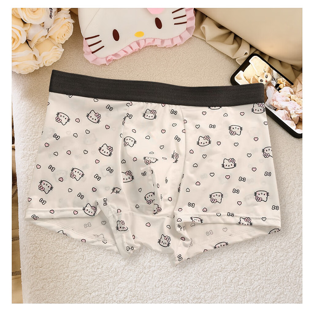 开始绽放(KALL'S BLOOMS)【礼盒装】KT猫男裤合集*冰丝男士内裤抗菌卡通可爱 礼盒三条装:粉KT+心蒂灰+心蒂白 L 建议体重80-105斤