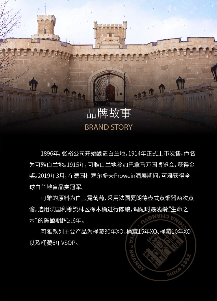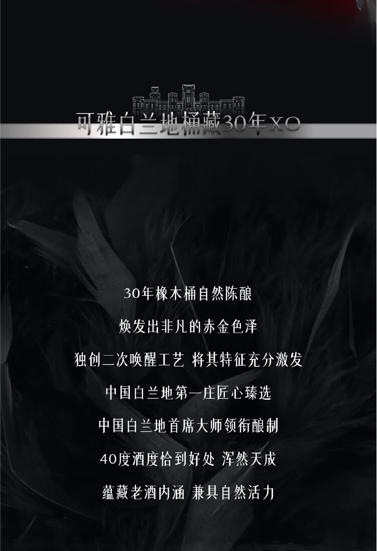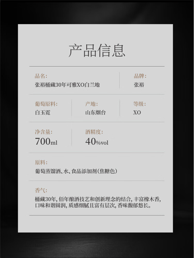 张裕可雅xo桶藏30年白兰地 700ml 单支礼盒装 洋酒葡萄蒸馏酒 高档 700mL 1瓶 700ml