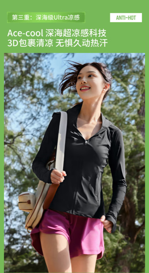 鸭鸭(YAYA)修身防晒衣女款凉感冰丝透气户外防晒服海边防紫外线薄款外套 经典黑 S 【推荐70-100斤】
