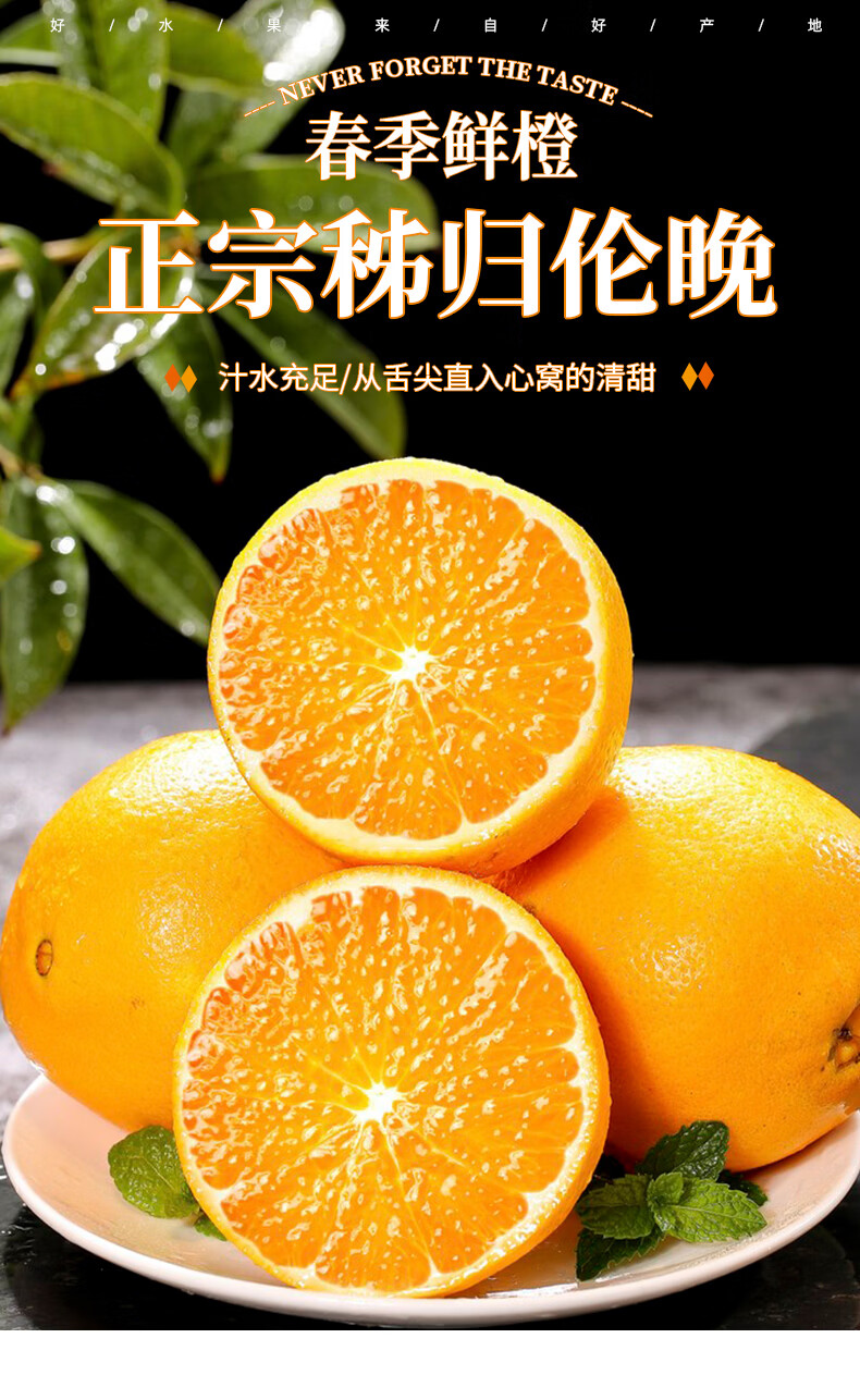 秭归伦晚春橙脐橙冰糖橙子果园直采精品当季新鲜水果大果破损包赔 果园直采-产地发货(果径70-75)净重9斤