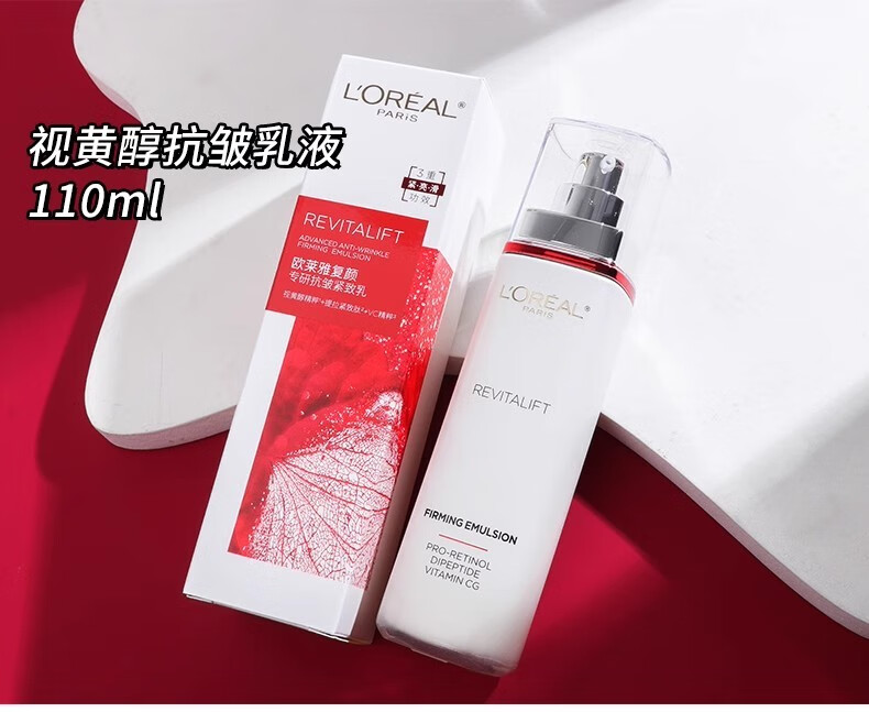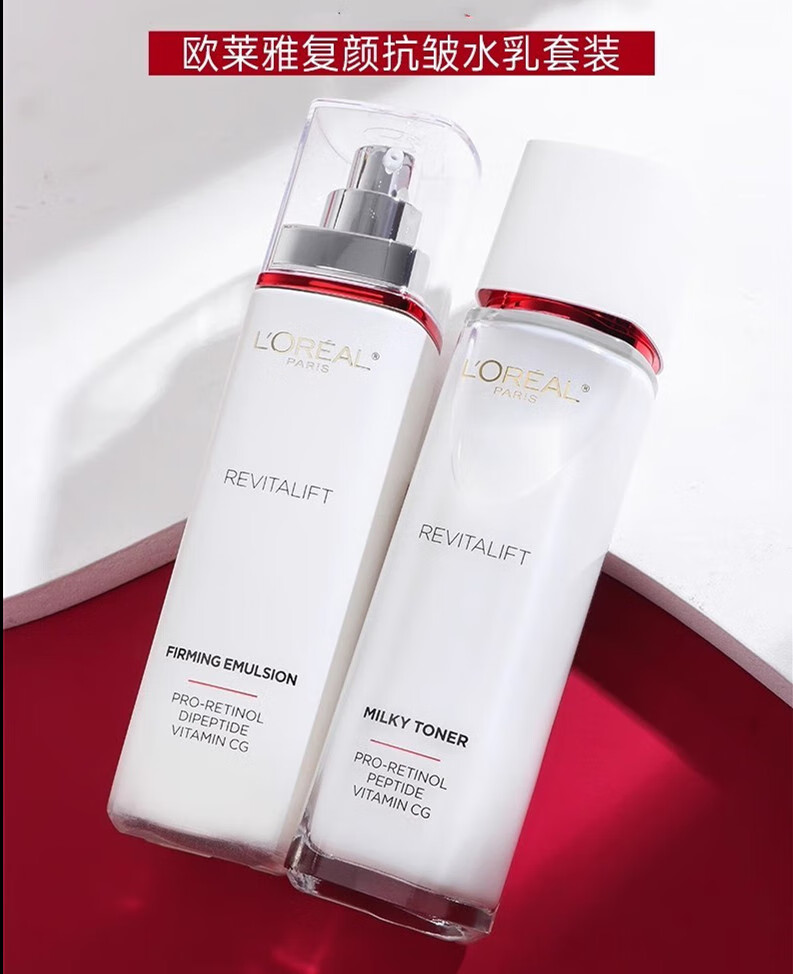 欧莱雅新复颜专研抗皱紧致乳液/清乳柔肤水/洁面乳日霜亮肤女士护肤组合 (新 抗皱乳液110ml)