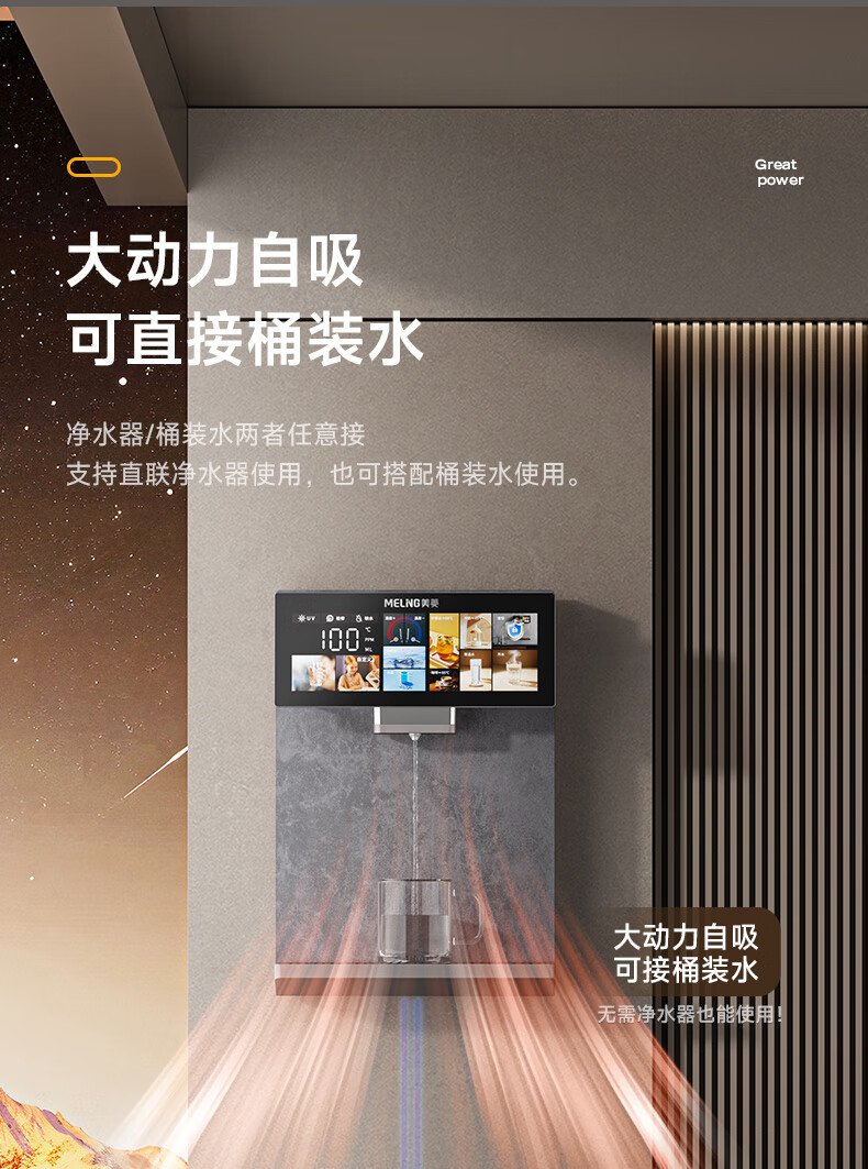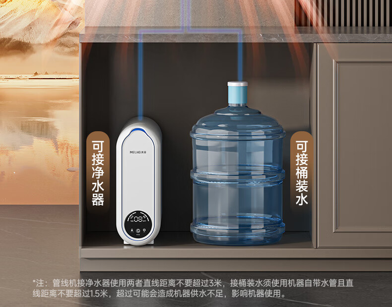美菱(MeiLing)管线机无水箱可接桶装水家用净水器伴侣加热直饮一体机大动力自吸全通量适配壁挂式餐边柜 自行安装【升级直连桶装水】大动力自吸全管路高温杀菌