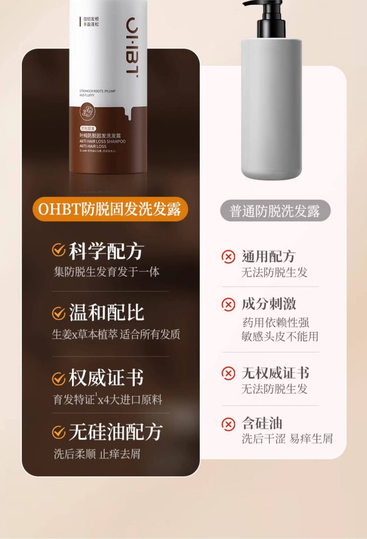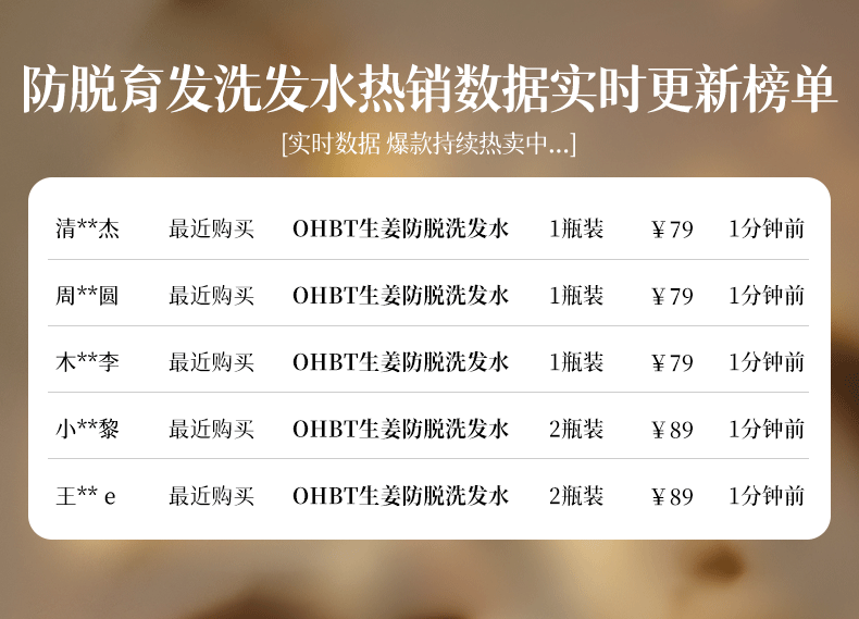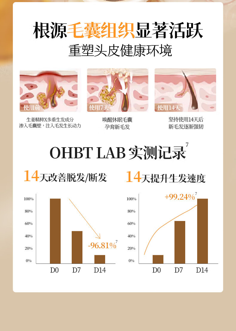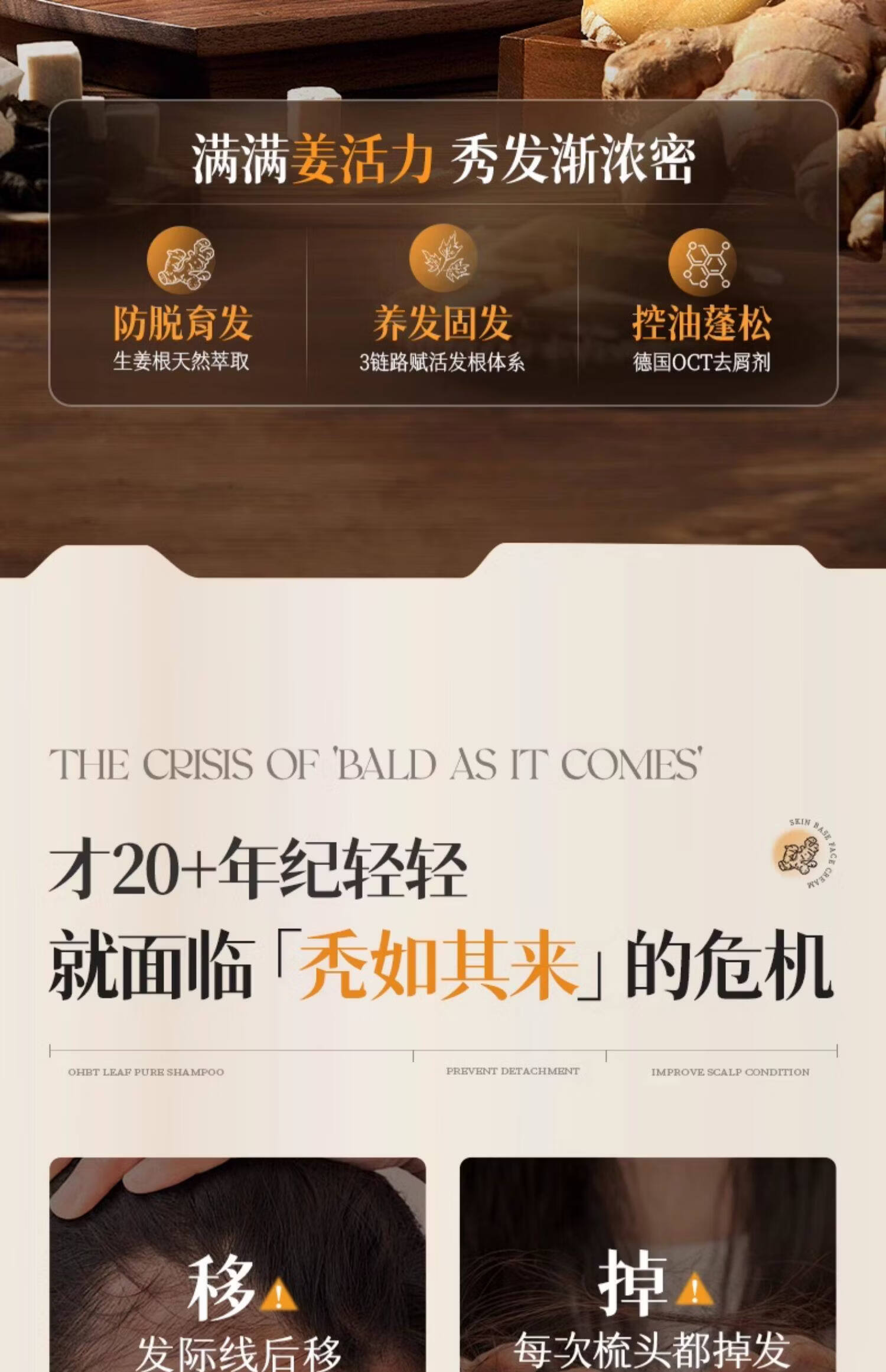 OHBT防脱育发洗发水500g生姜侧柏叶防掉脱断固发增发控油去屑男女士 1瓶 见效装【产后/熬夜/压力大/高龄脱发】