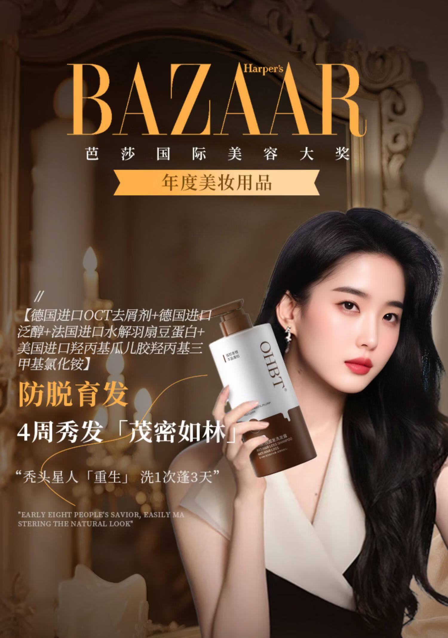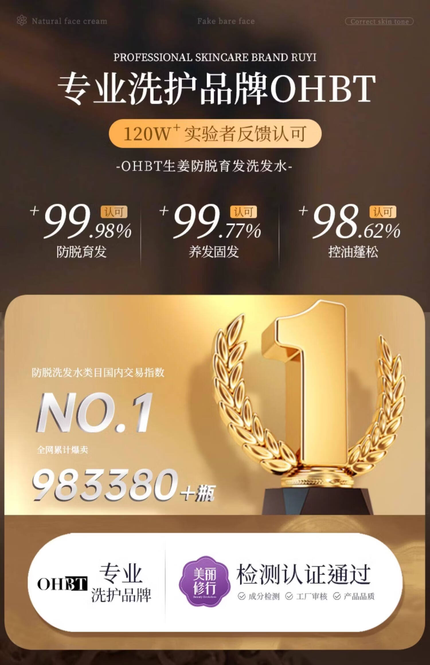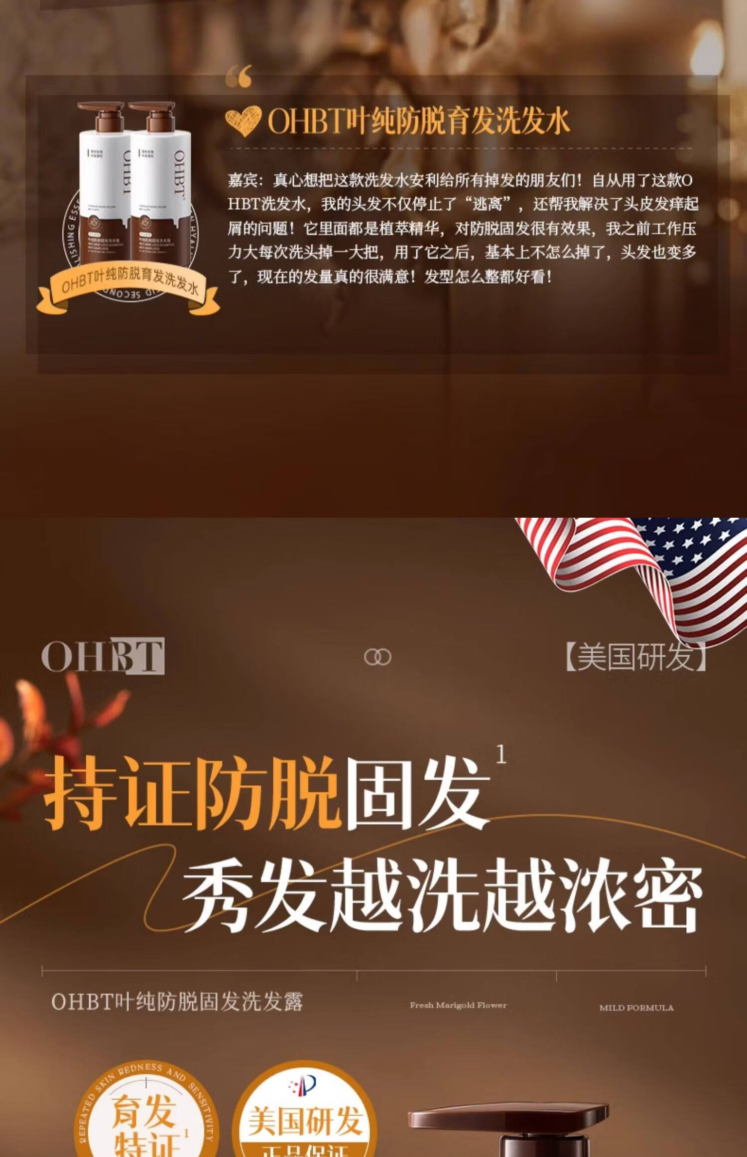 OHBT防脱育发洗发水500g生姜侧柏叶防掉脱断固发增发控油去屑男女士 1瓶 见效装【产后/熬夜/压力大/高龄脱发】