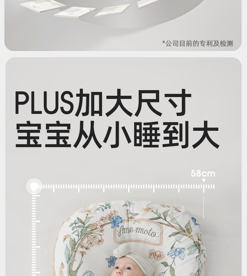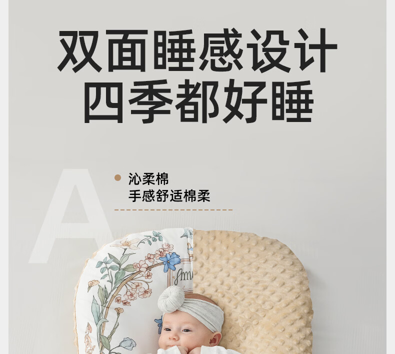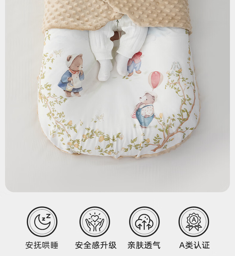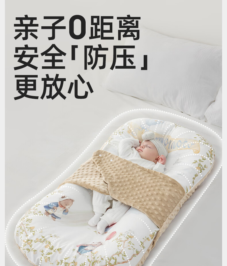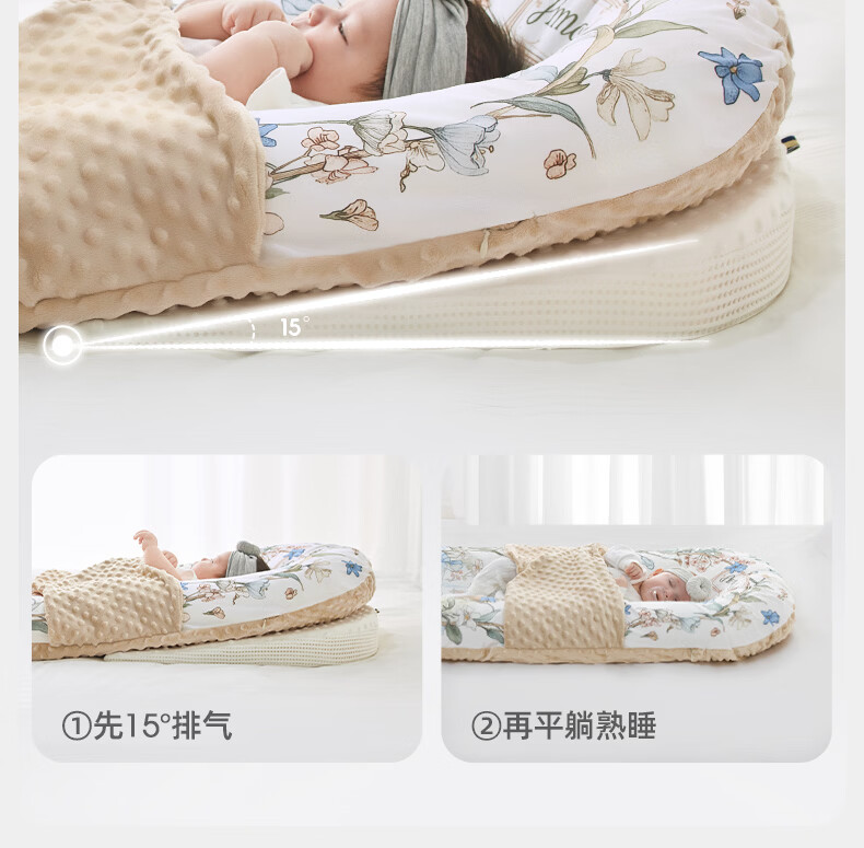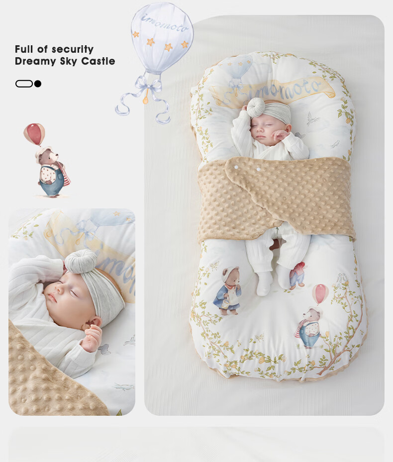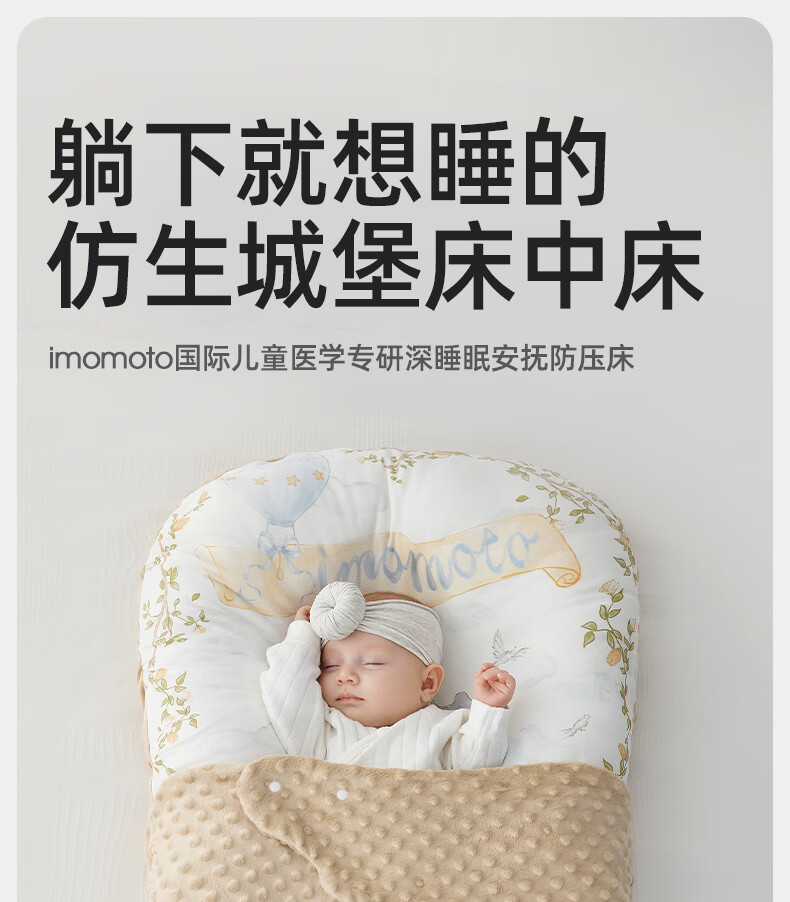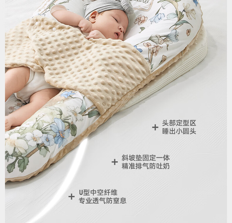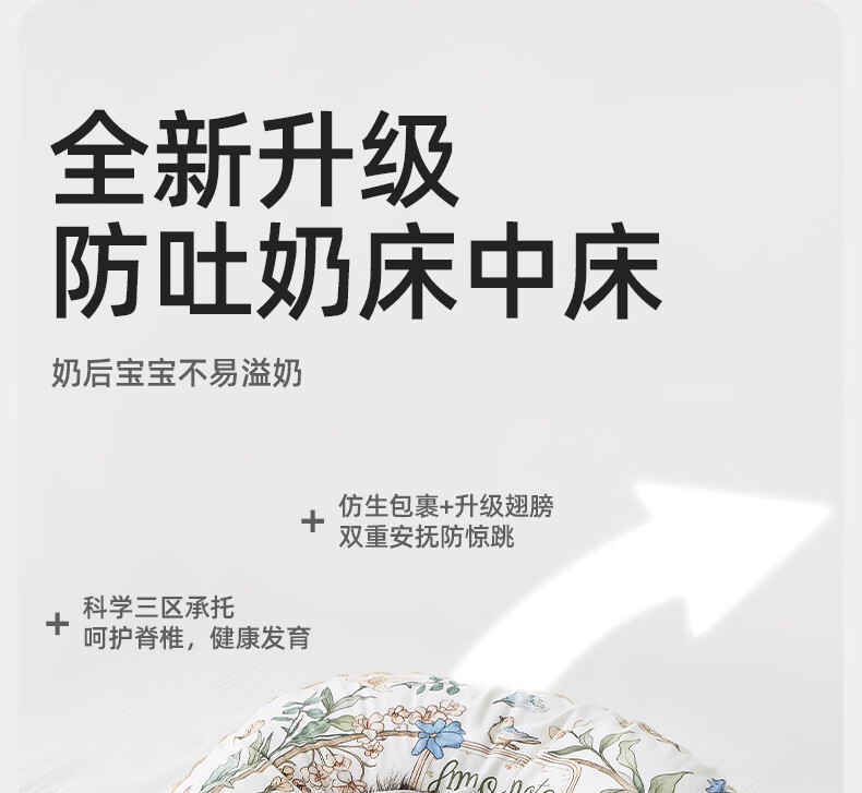 IMOMOTO婴儿斜坡枕床中床新生儿防吐奶防溢奶防呛奶防惊跳躺喂神器 0-1岁 贝拉果园 (可拆洗) 【AB双面设计 四季通用】