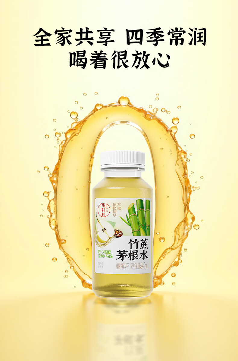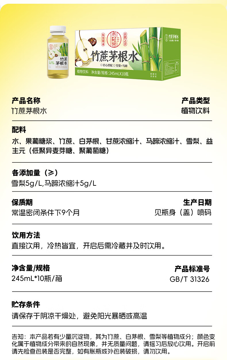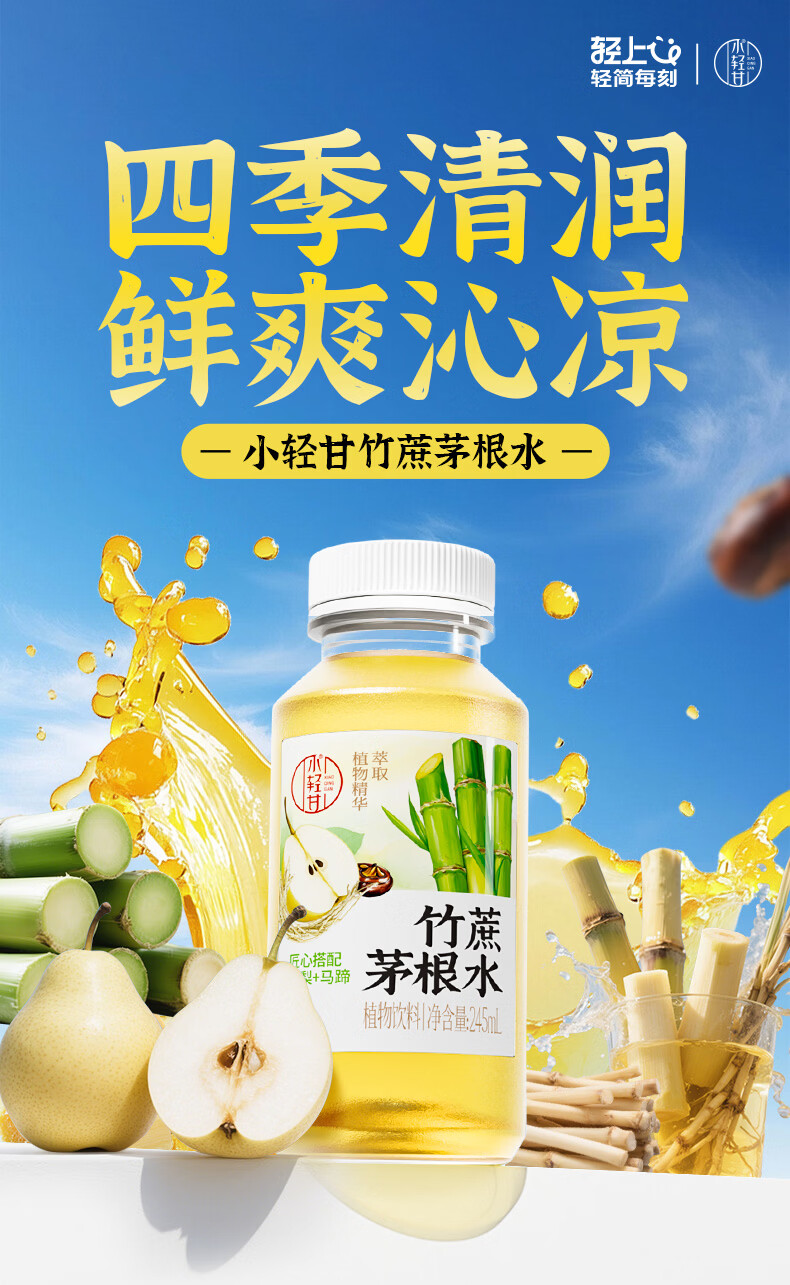 轻上竹蔗茅根水甘蔗汁雪梨马蹄水0脂肪下午茶润喉草本植物饮料品 竹蔗茅根水甘蔗汁245ml*10瓶