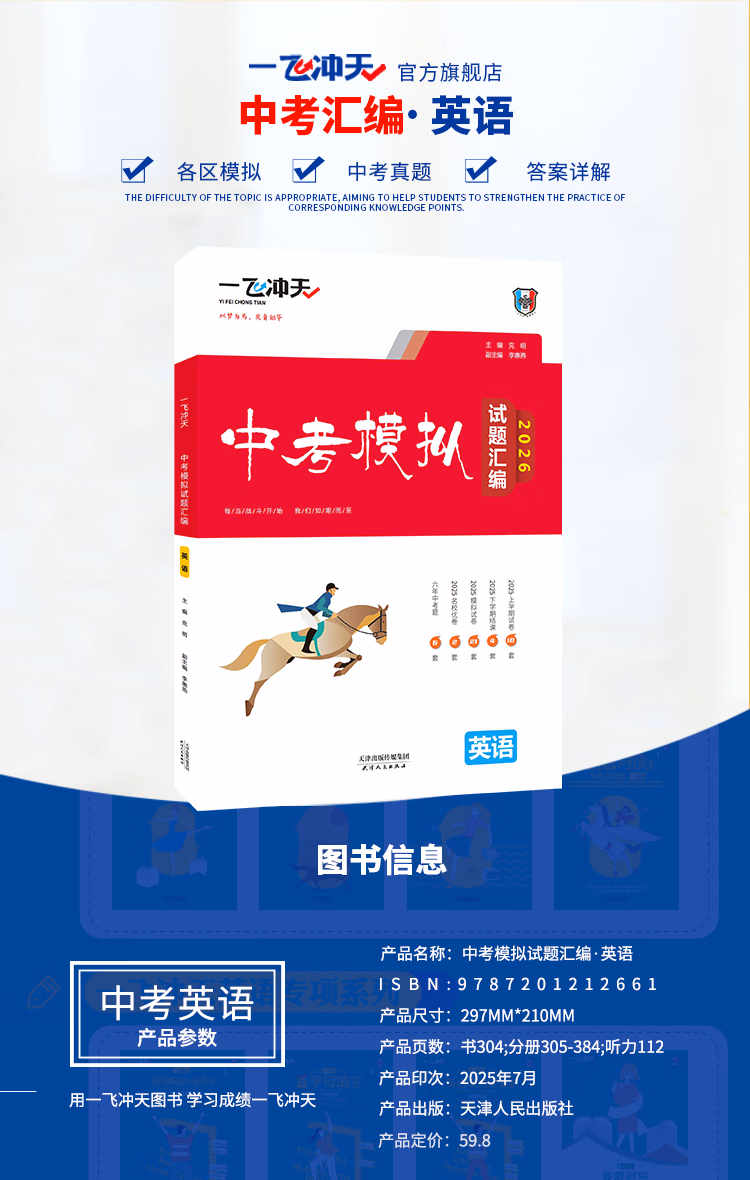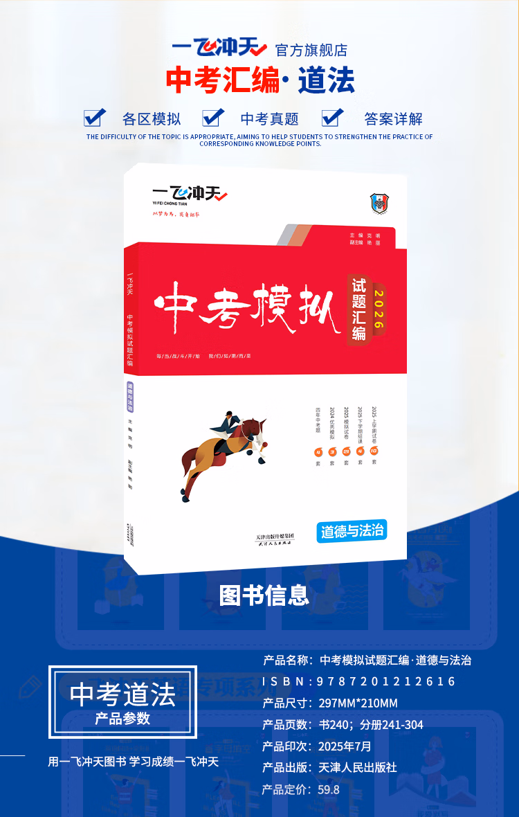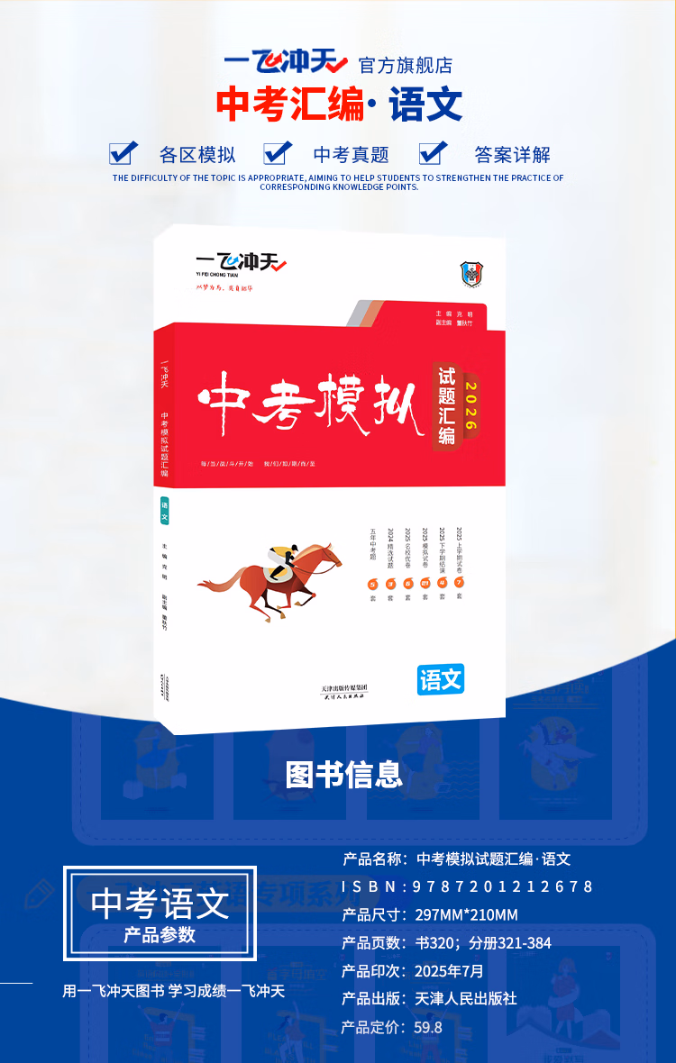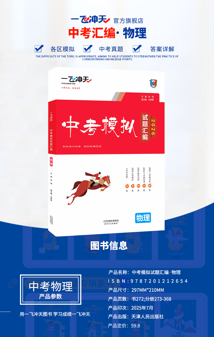 【天津发货后次日达】一飞冲天2026天津中考 2026天津一飞冲天中考模拟试题汇编真题卷全套语文数学英语物理化学历史政治 中考专项总复习历年真题试卷初三九年级 26版中考专项【语数英物化史政】7本