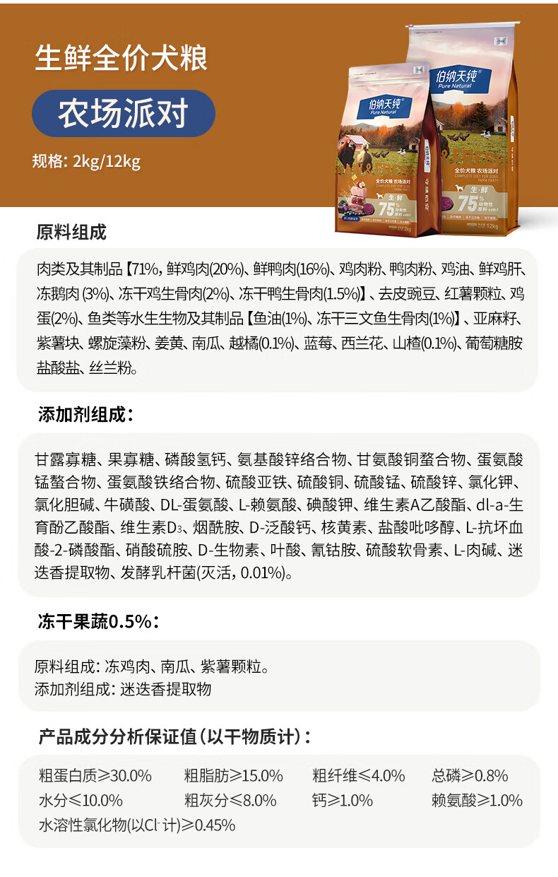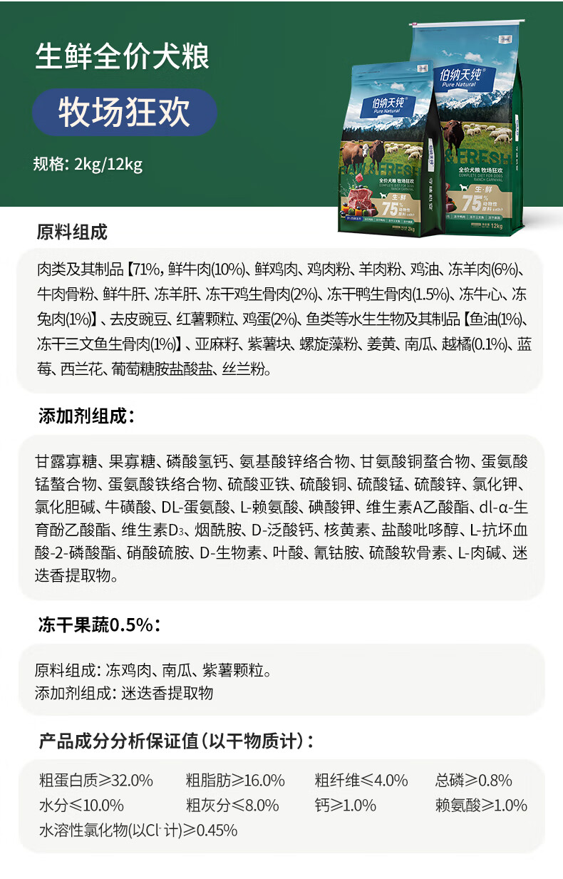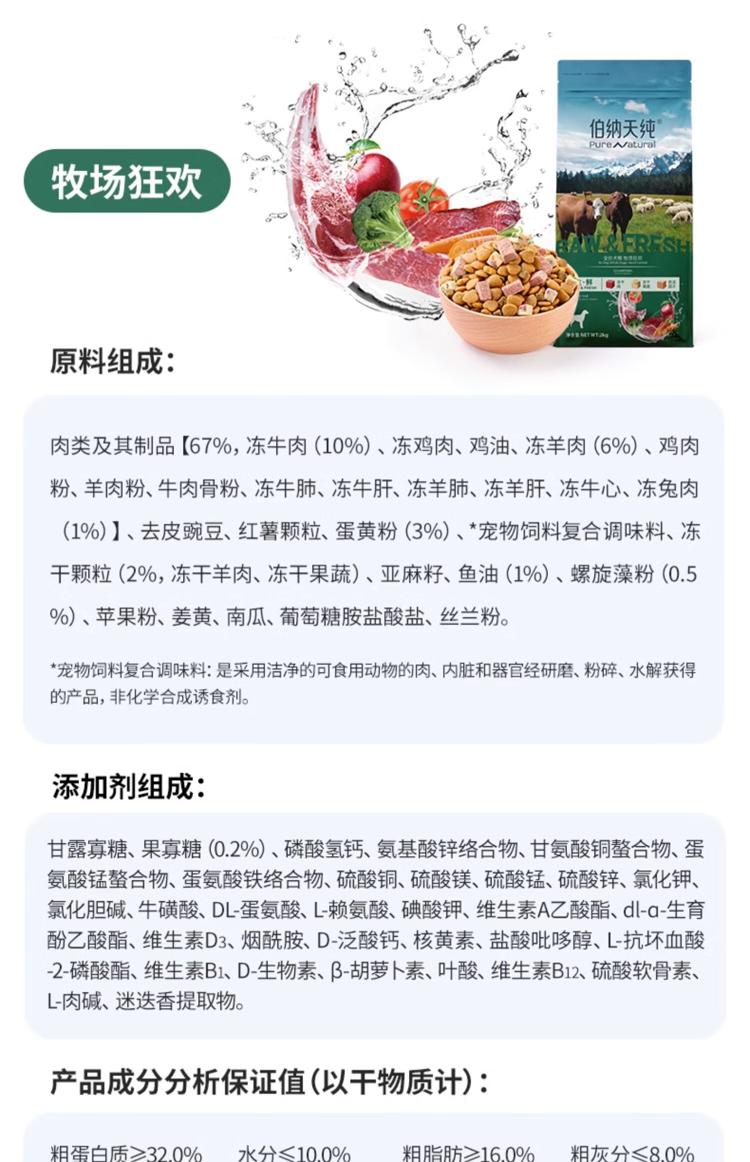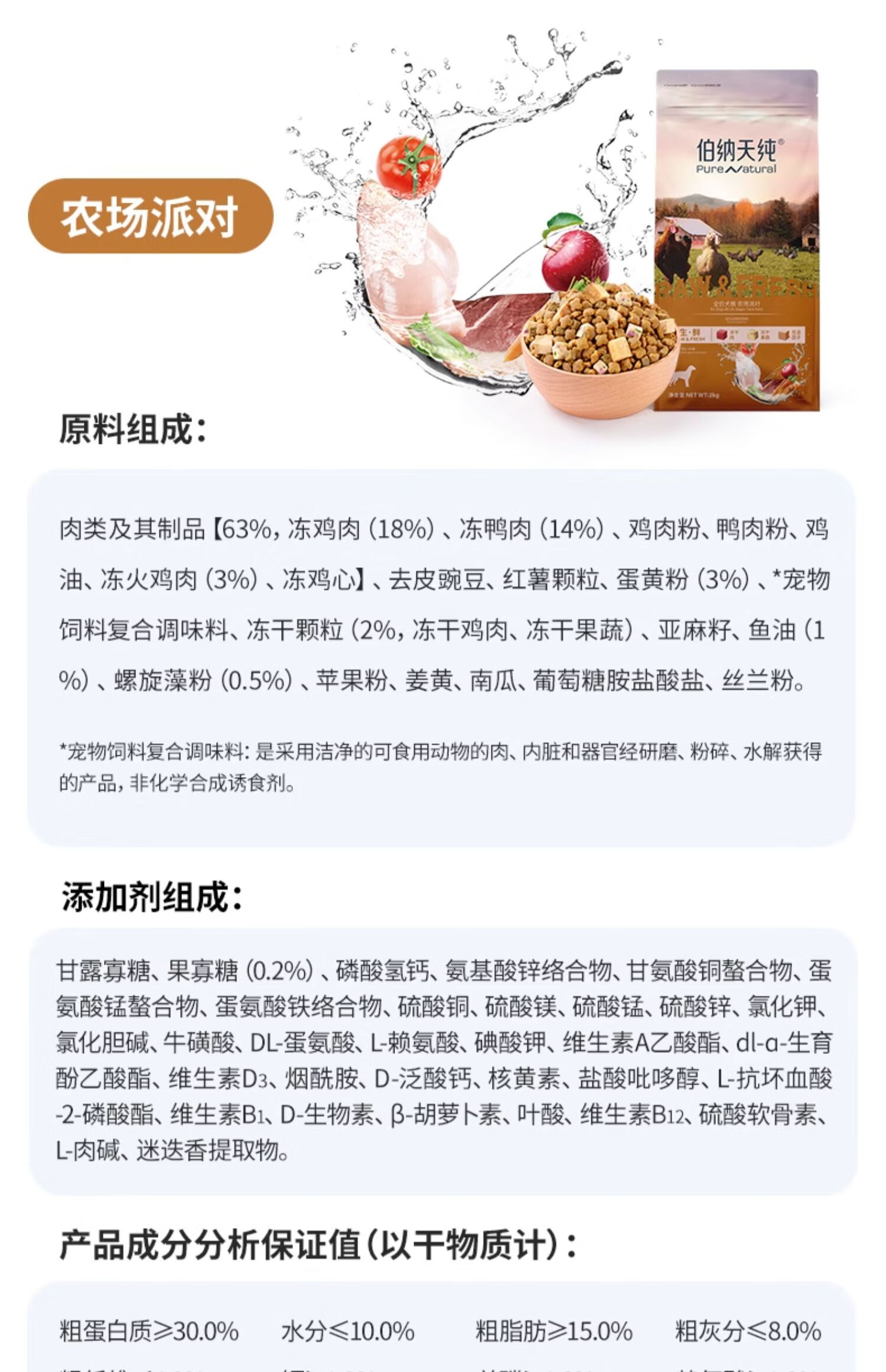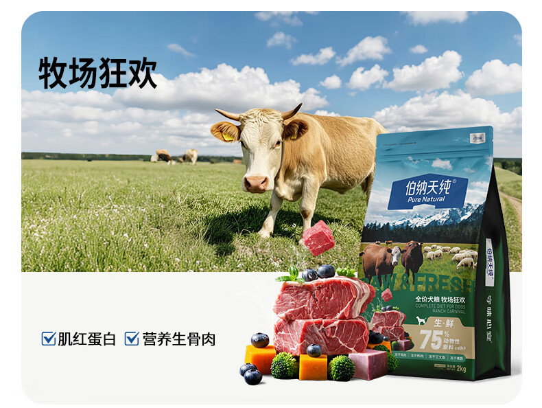 伯纳天纯生鲜冻干狗粮成犬幼犬中大型小型犬通用牧场狂欢狗粮牛肉强化体质 【牛肉配方】狗粮10kg