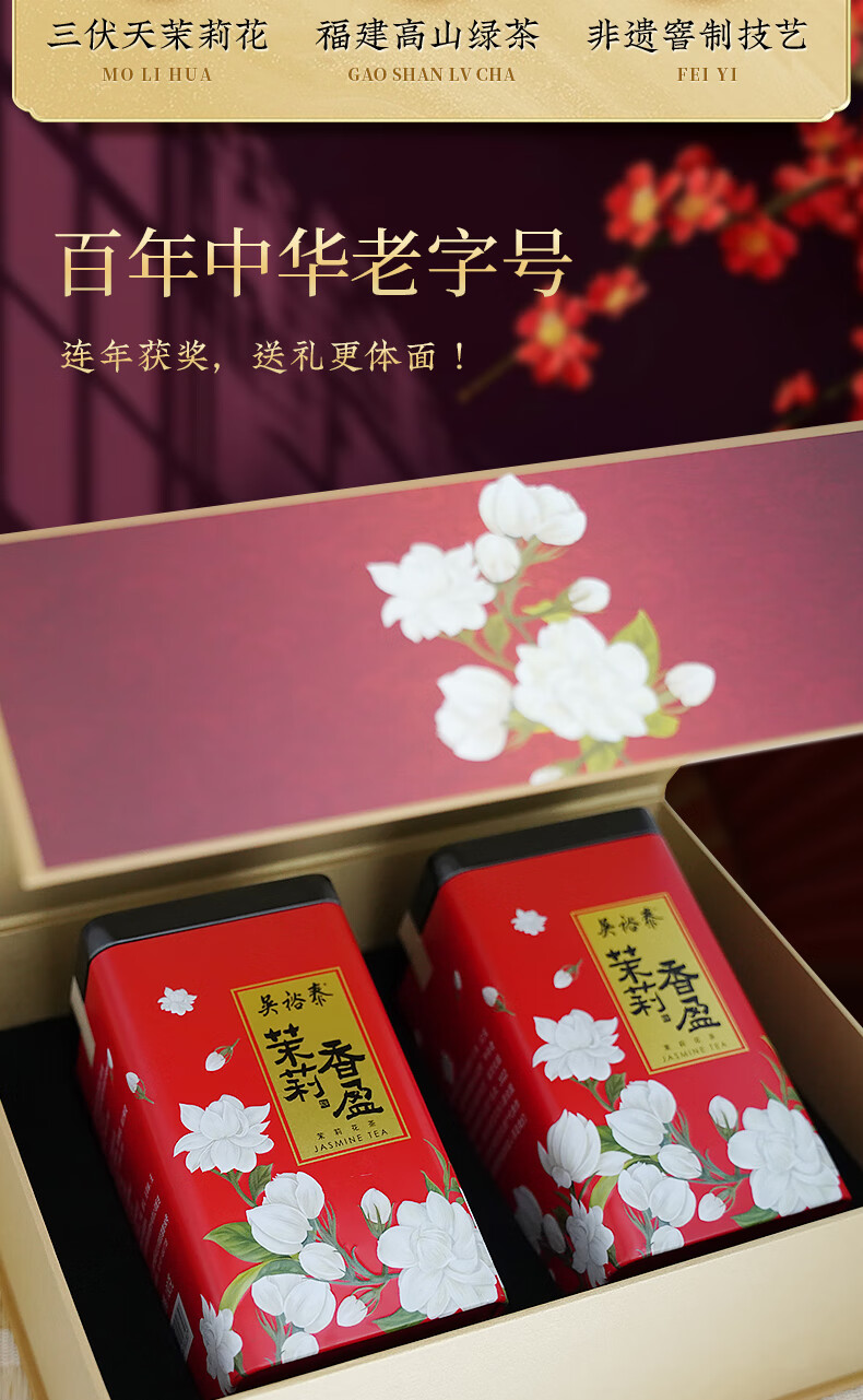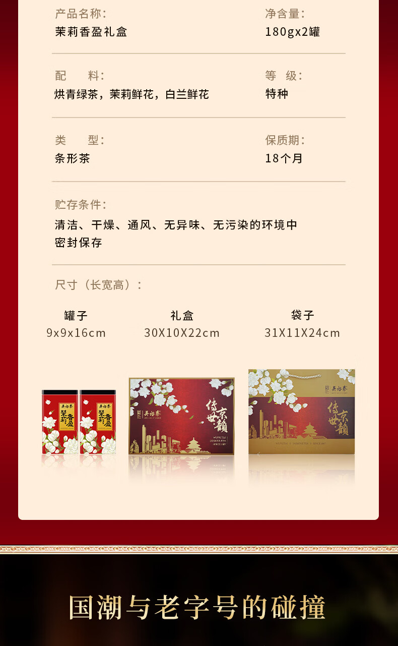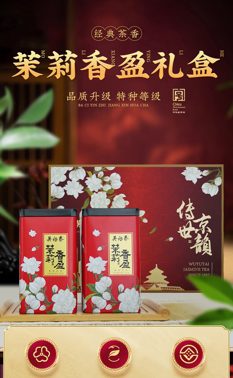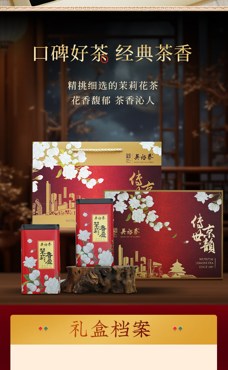 吴裕泰茉莉花茶 传世京韵茉莉香盈礼盒360g 六窨浓香 礼盒茶礼