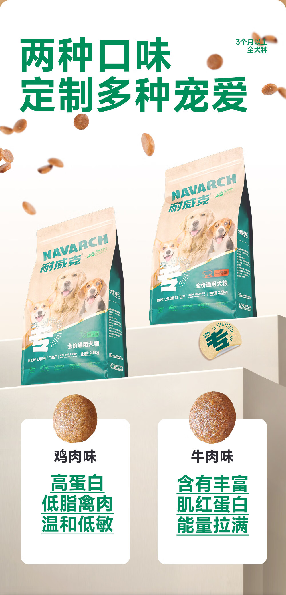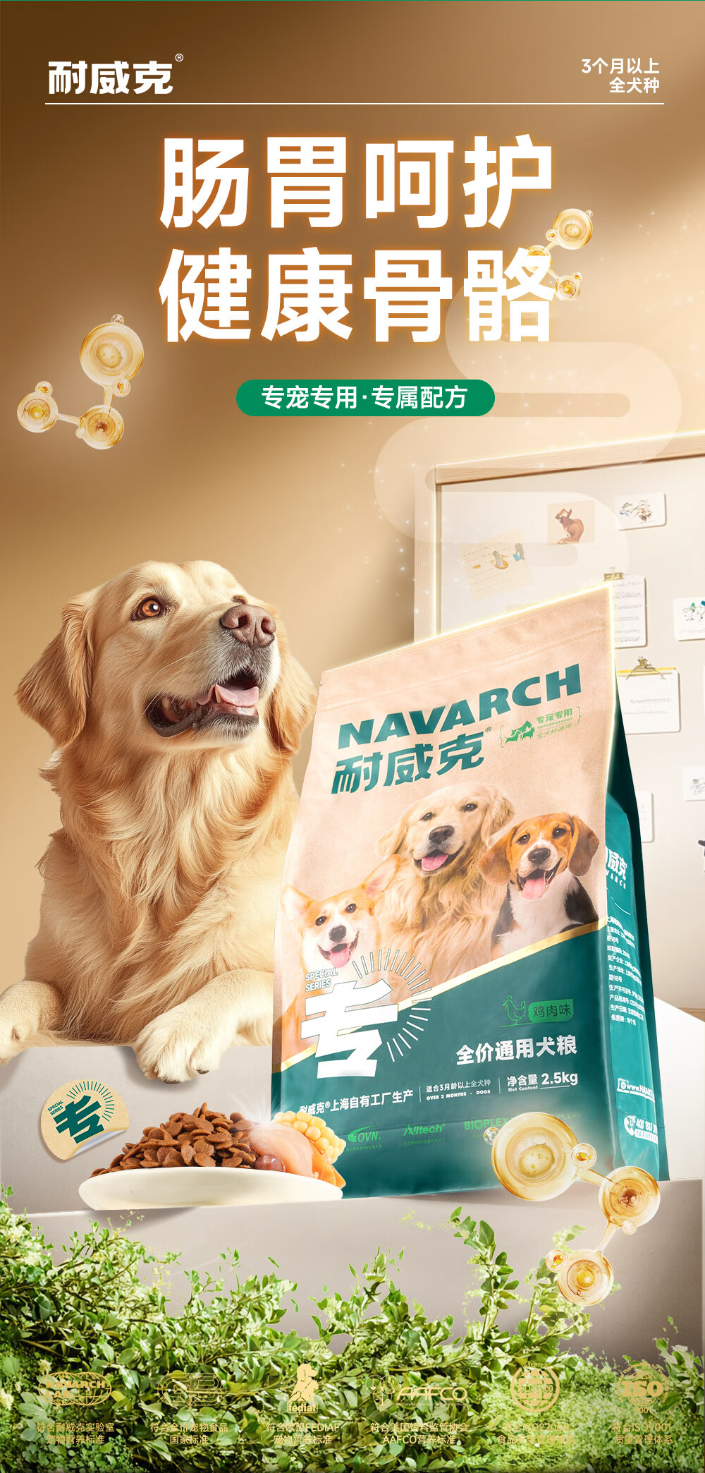 耐威克 狗粮成犬幼犬 通用全犬种 泰迪金毛比熊边牧柯基萨摩 中小大型犬 全犬通用丨鸡肉配方20斤