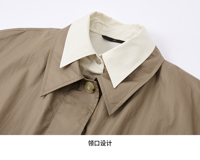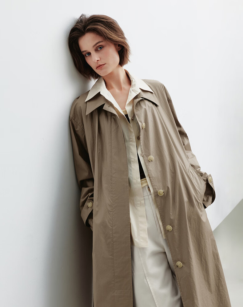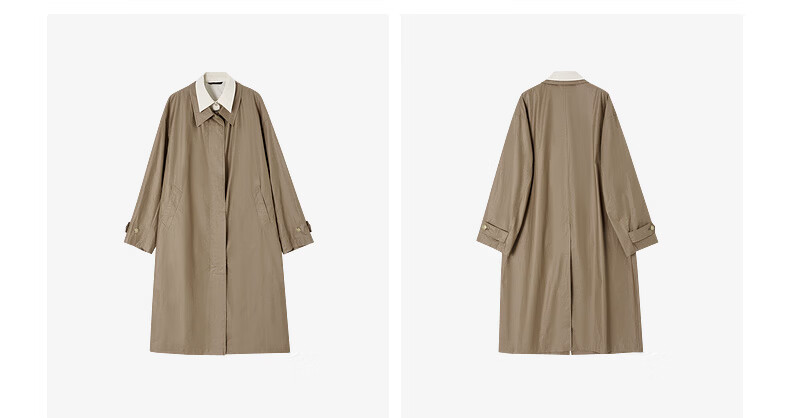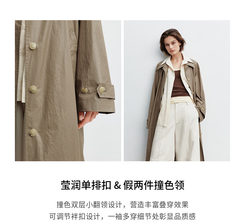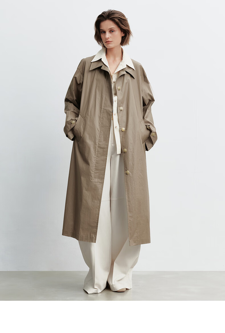 H's假两件风衣女26年春季新款高级设计感100棉长款直筒廓形外套 灰卡其 XS