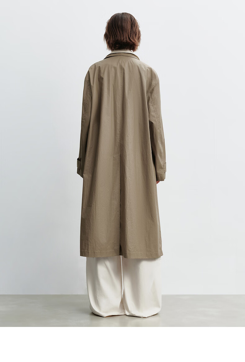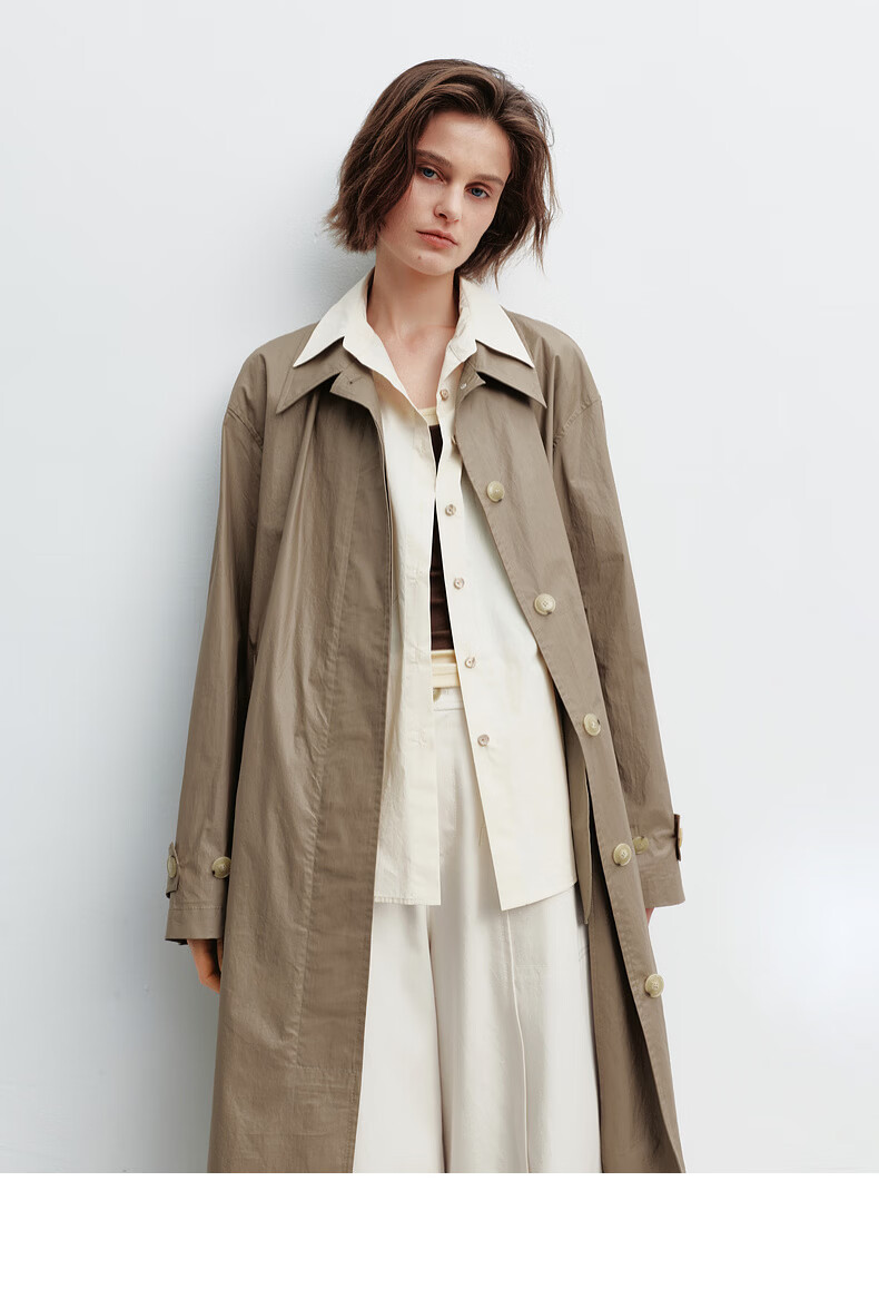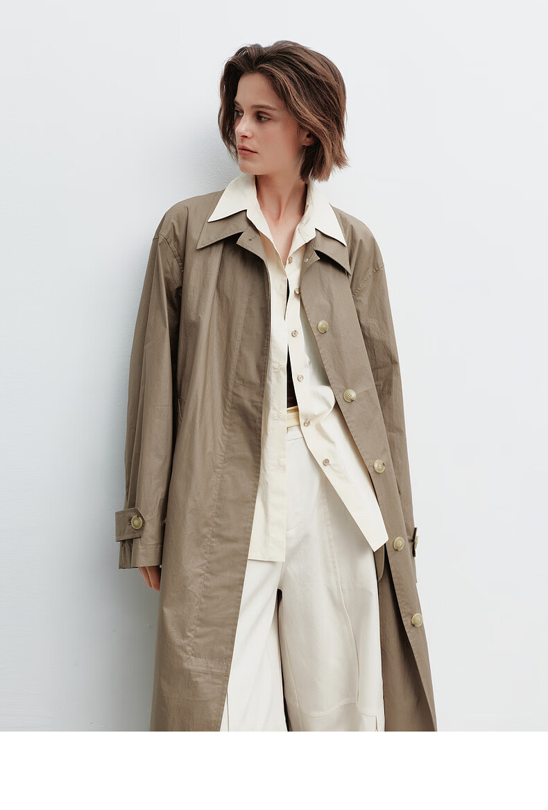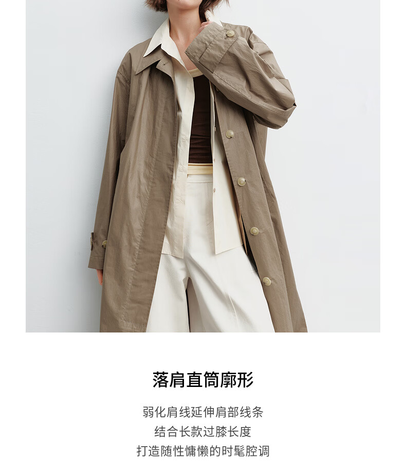 H's假两件风衣女26年春季新款高级设计感100棉长款直筒廓形外套 灰卡其 XS