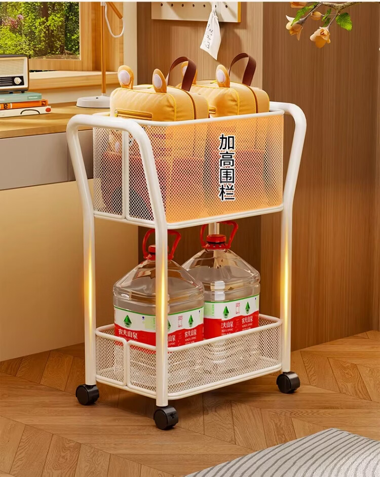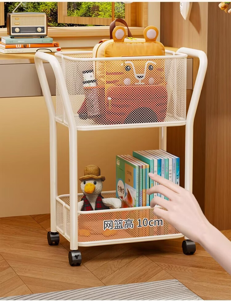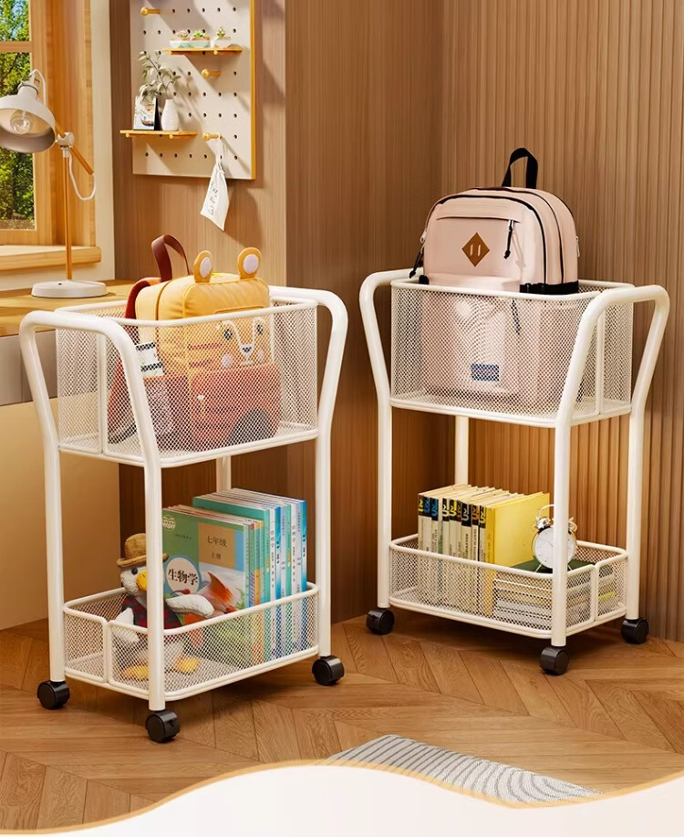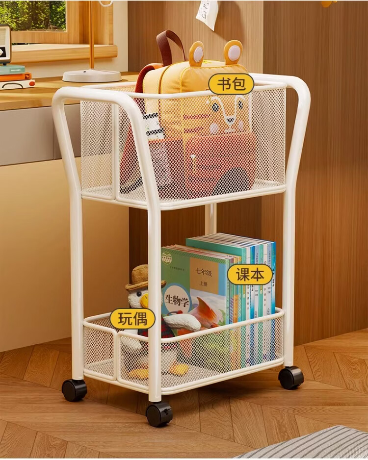 尔思家书包置物架儿童书架家用办公室书本多层收纳架移动零食小推车落地 白色