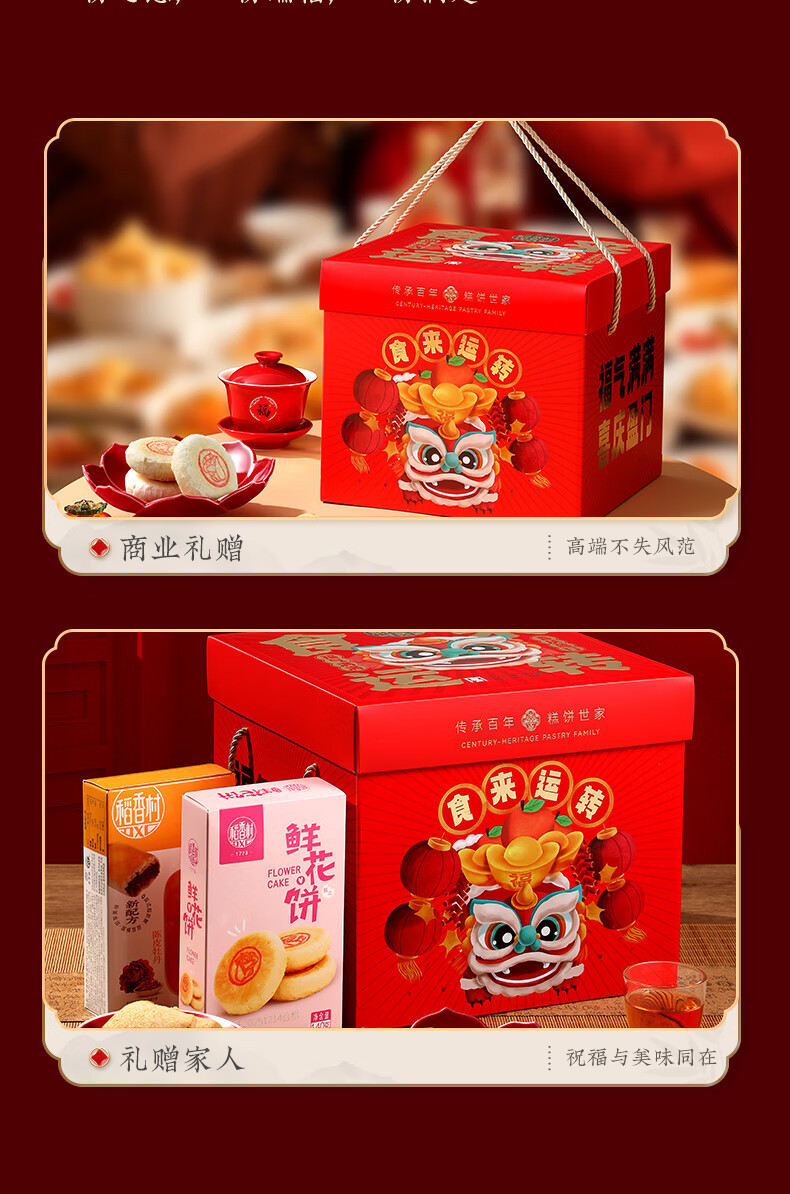 稻香村糕点礼盒年货礼盒大礼包低糖新中式点心伴手礼过年送礼品团购福礼 大吉大利-年货大礼包-1460g
