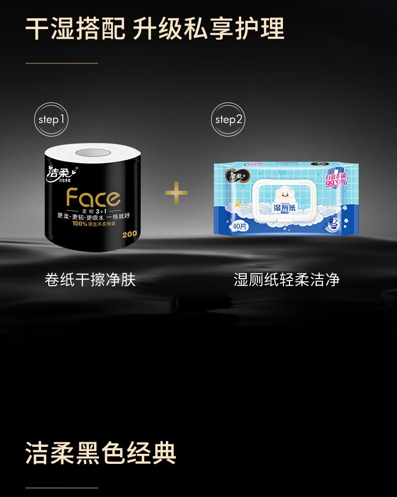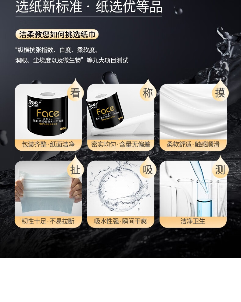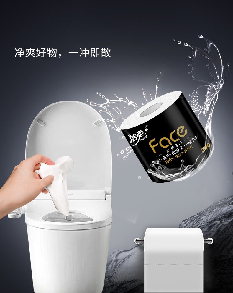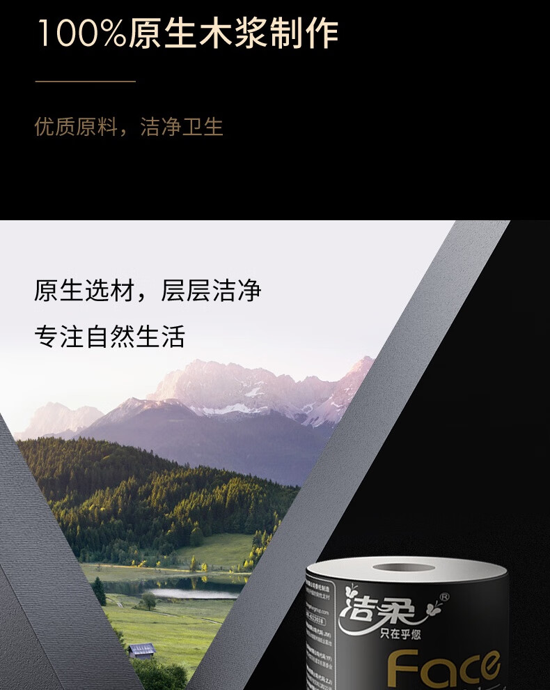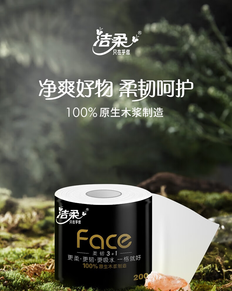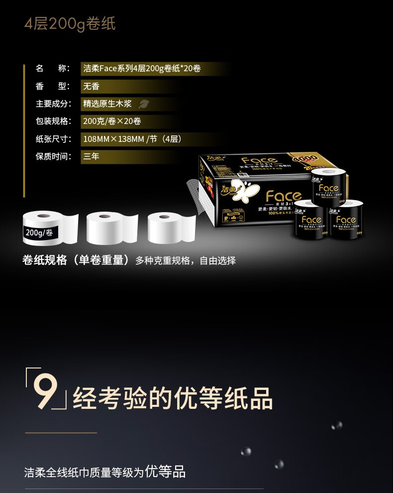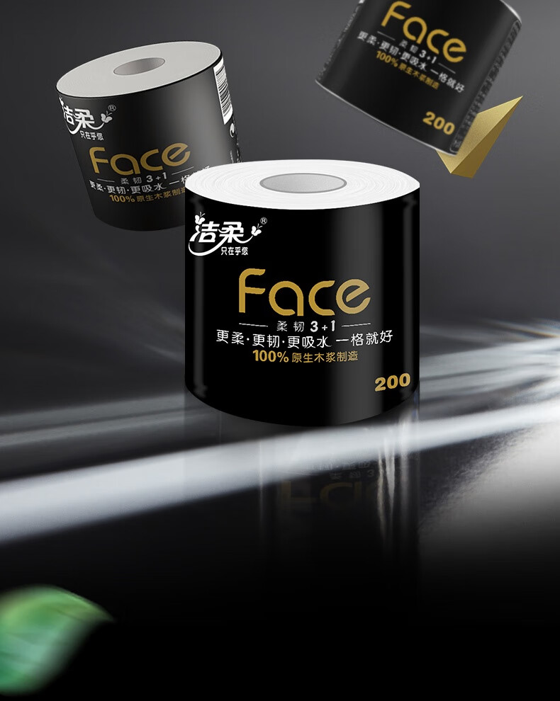 洁柔有芯卷纸黑Face4层200克*20卷高克重卫生纸卷筒纸纸巾家庭囤货装