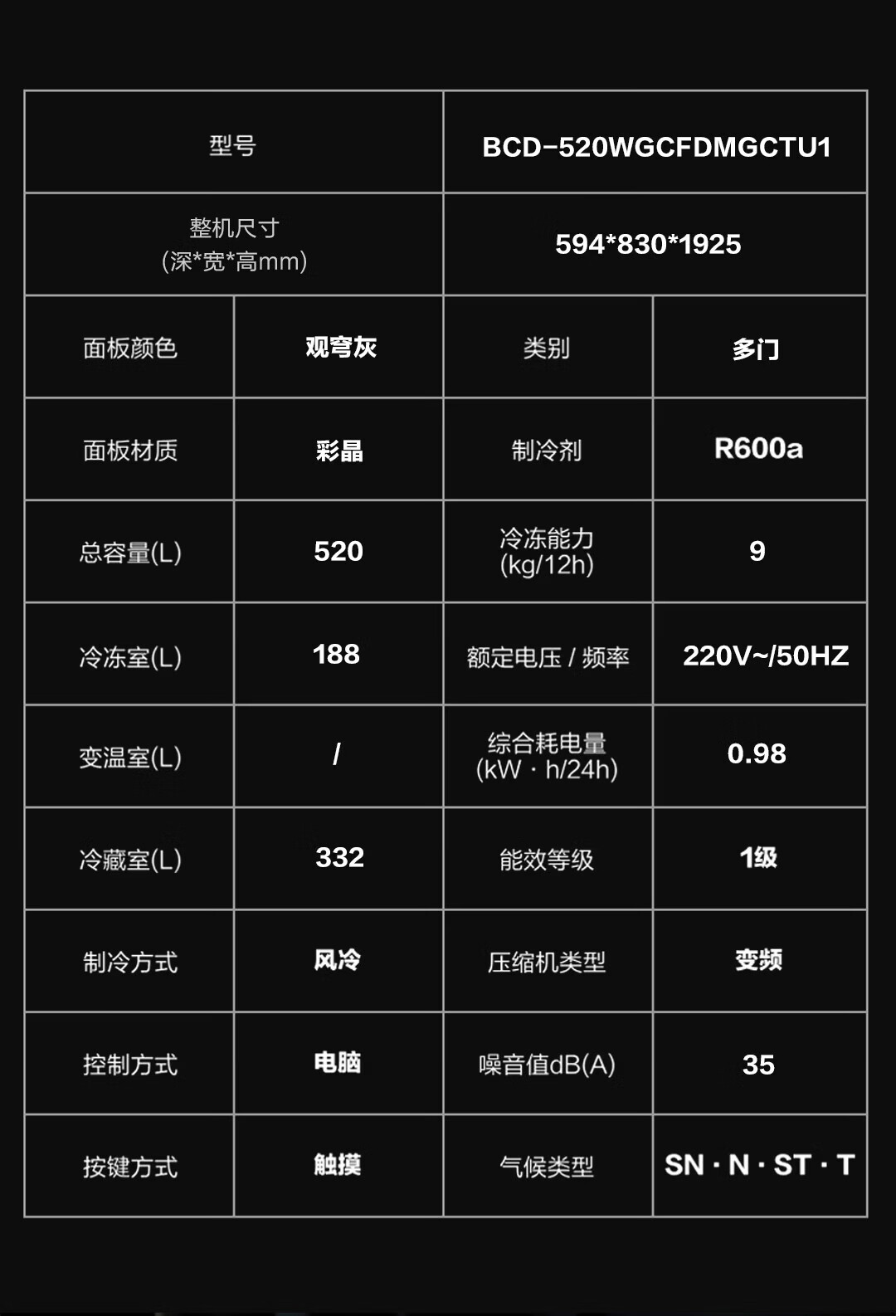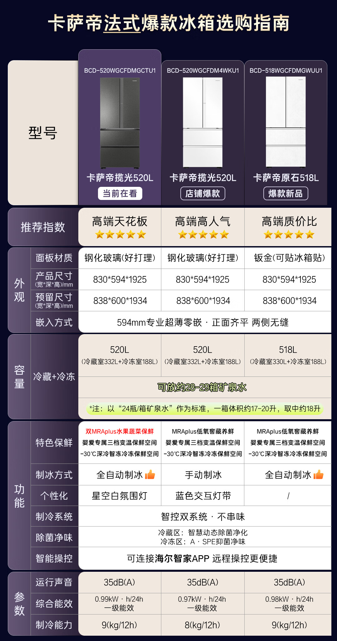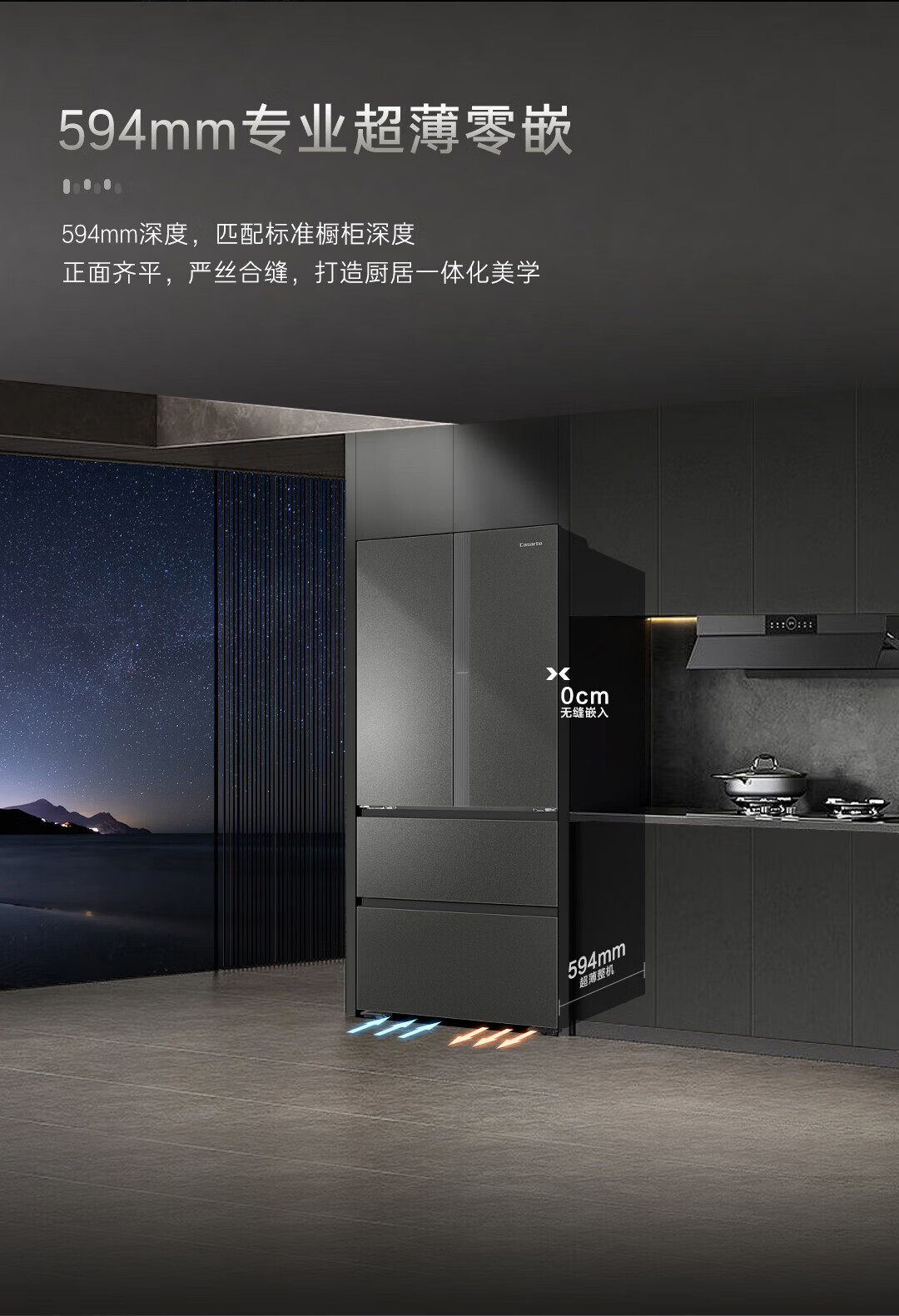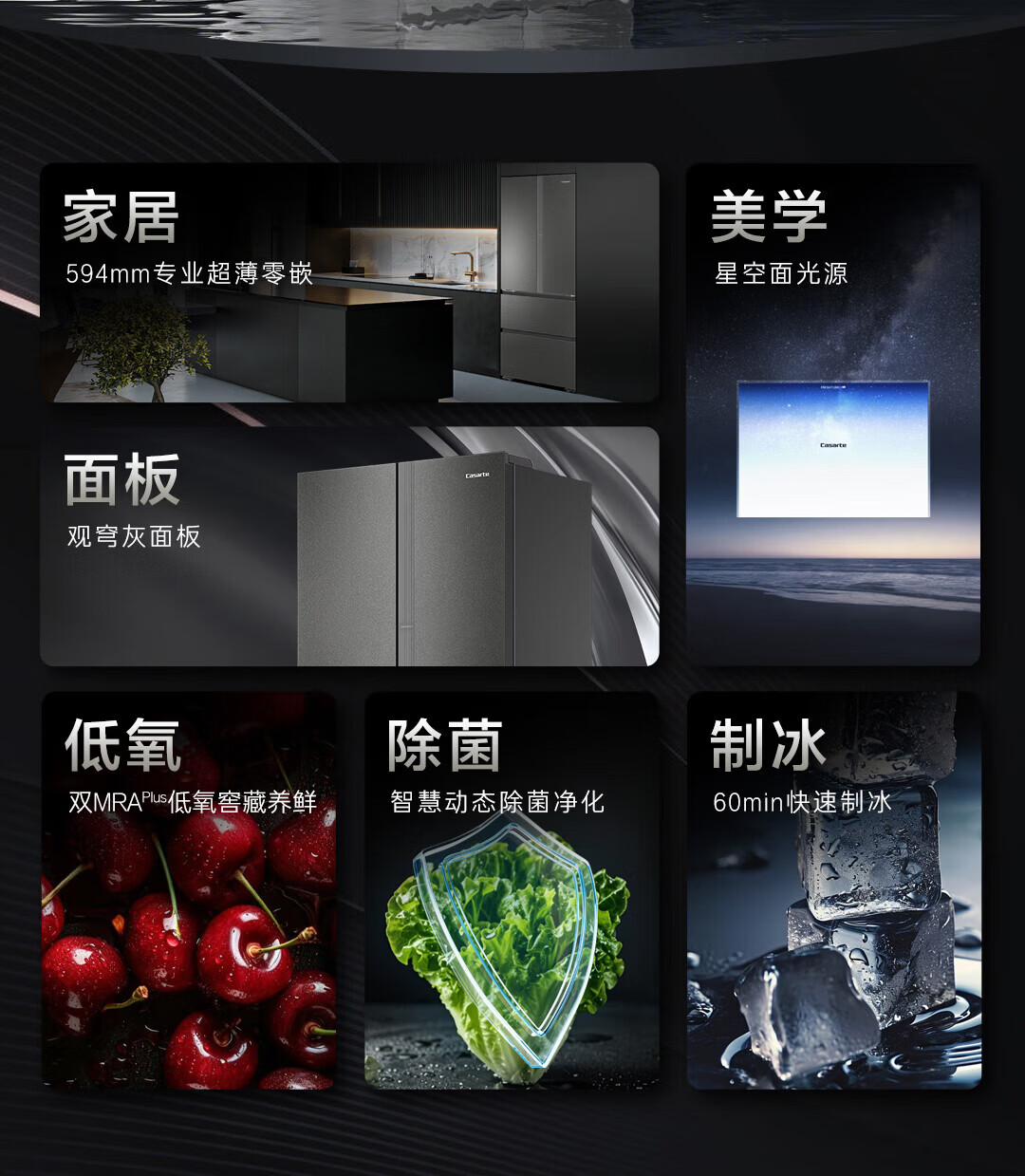 卡萨帝(Casarte)揽光520L法式多门冰箱594mm超薄零嵌入式全自动制冰双系统主动除菌BCD-520WGCFDMGCTU1国家补贴